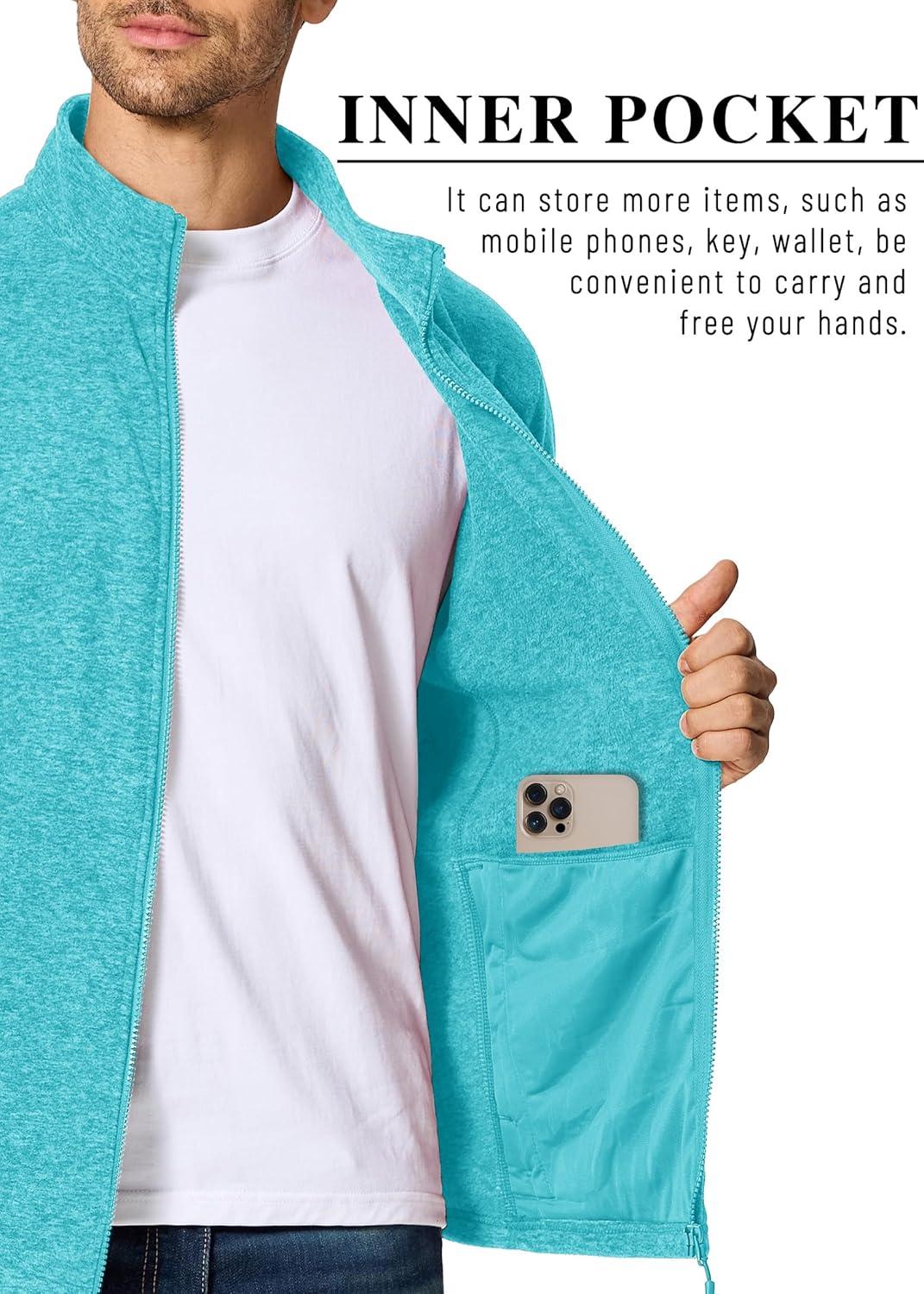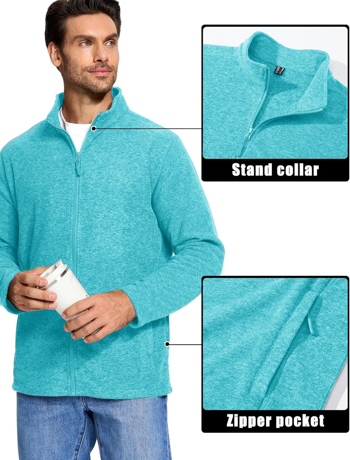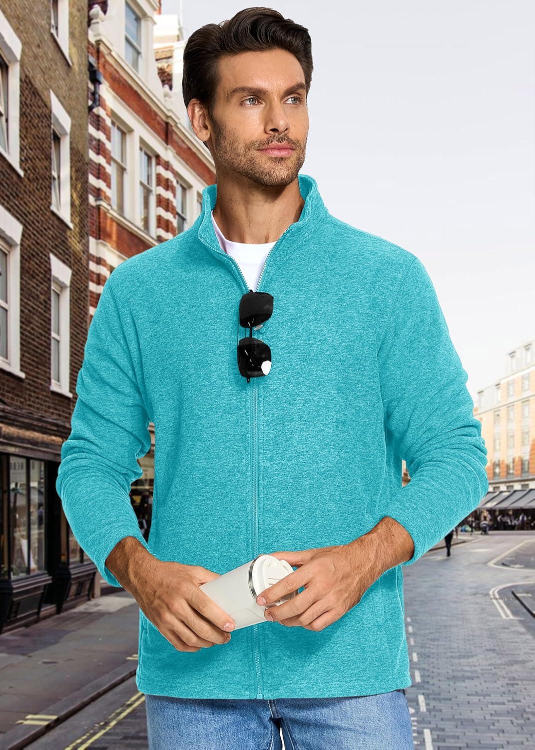 MAGCOMSEN Mens Zip Up Sweatshirt Casual Fleece Jacket with Zipper Pockets and Stand Collar(Water Blue)