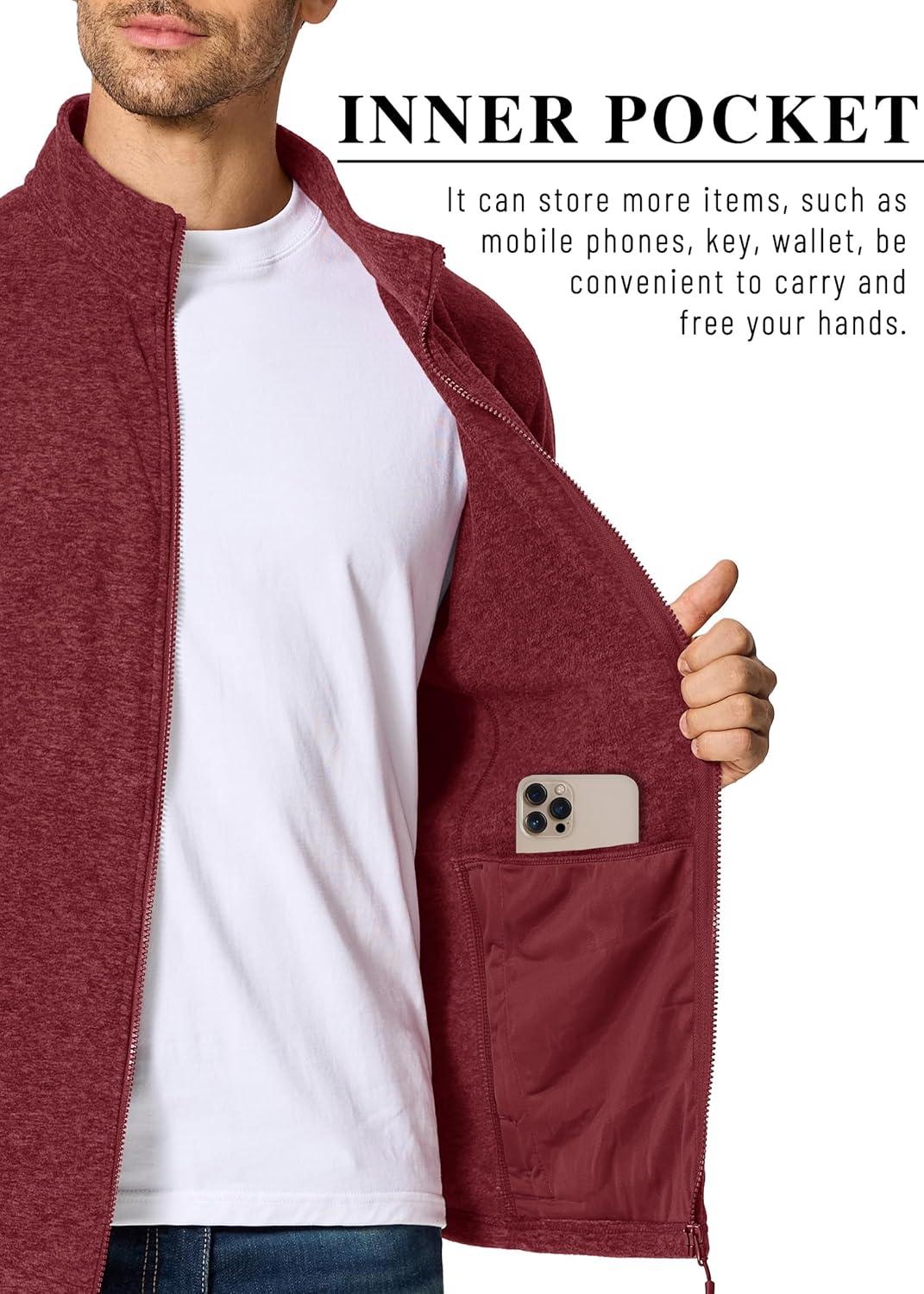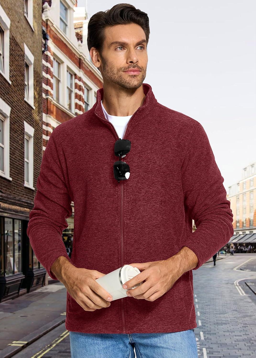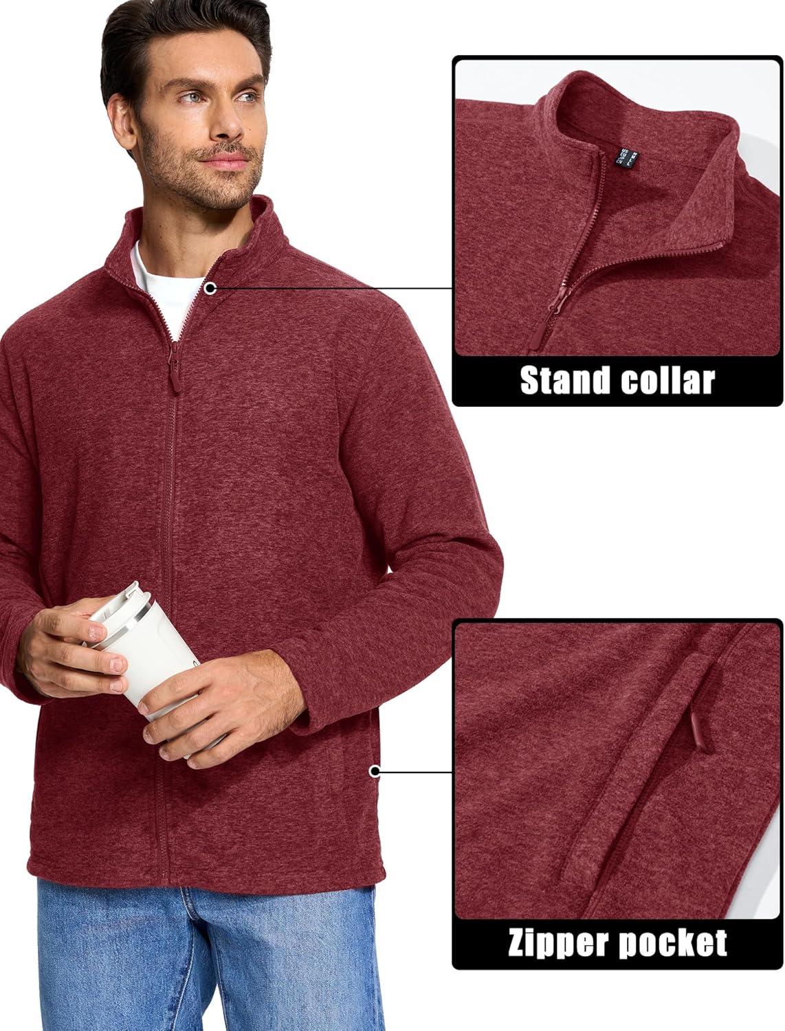 MAGCOMSEN Mens Zip Up Sweatshirt Casual Fleece Jacket with Zipper Pockets and Stand Collar(Wine Red)