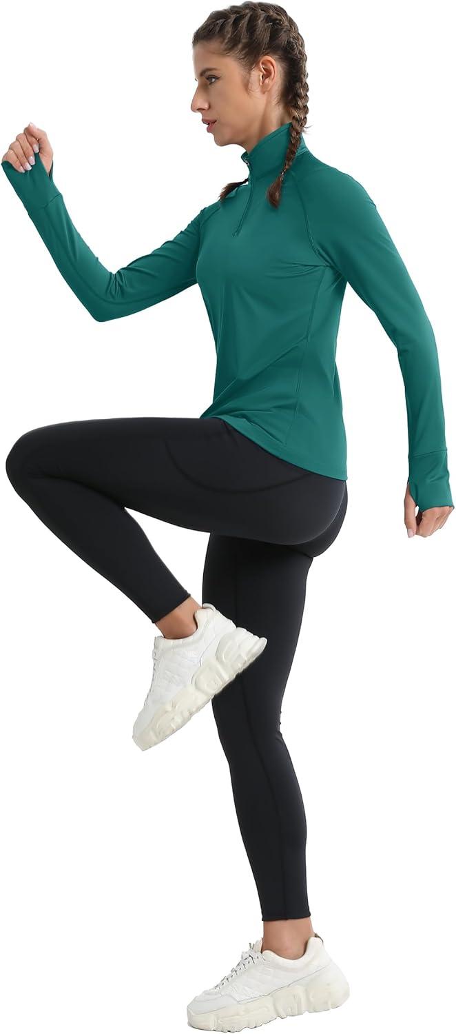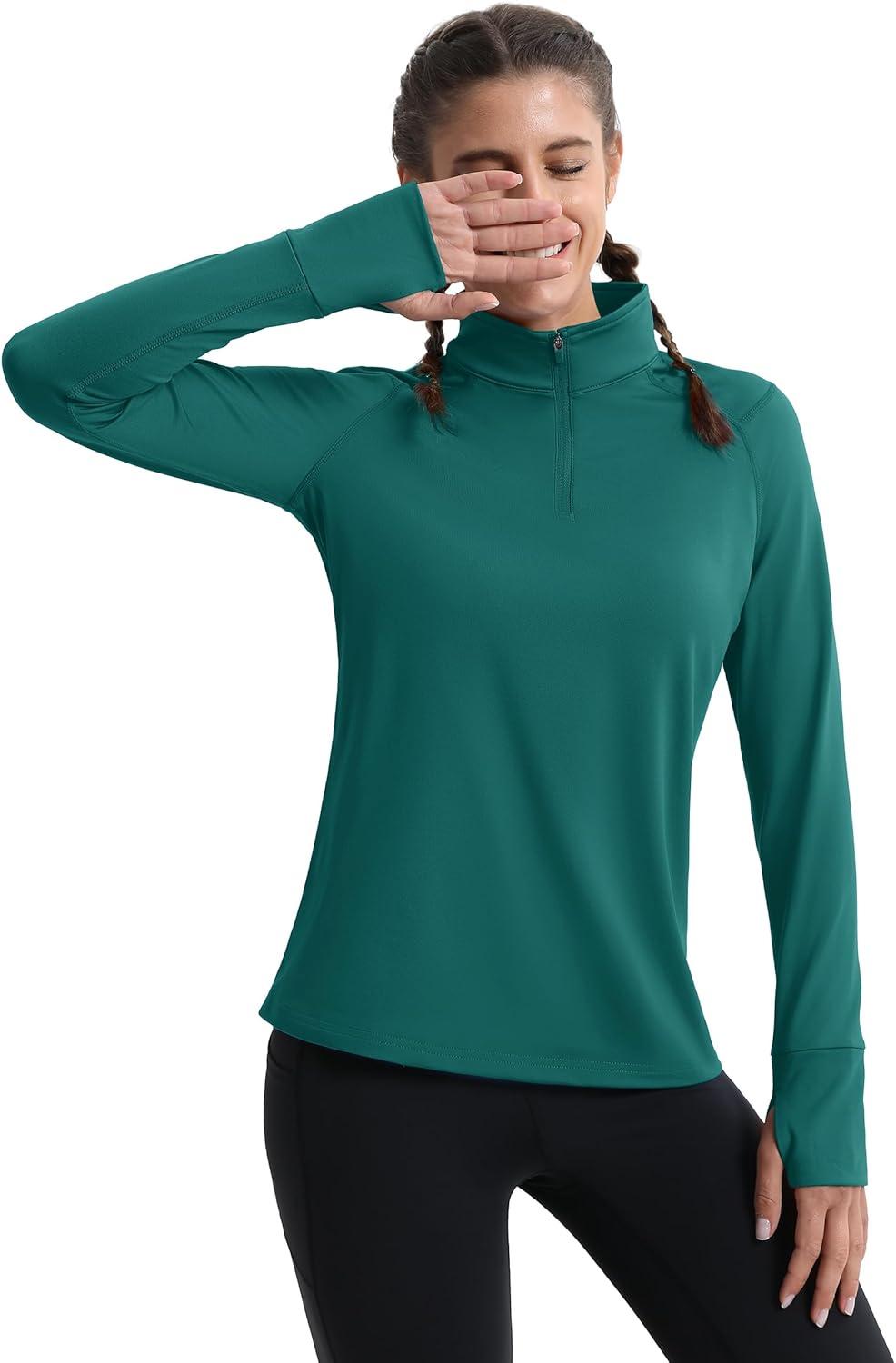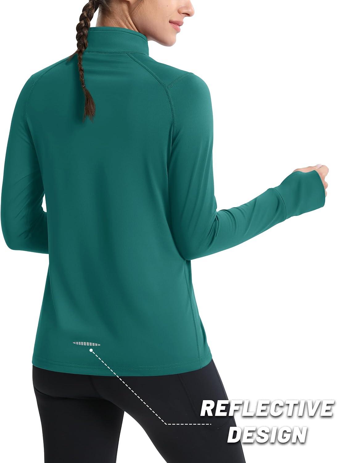MAGCOMSEN Quarter Zip Pullover Women Fleece Shirt Thermal Long Sleeve Athletic Running Tops Thumb Hole(Emerald Green)
