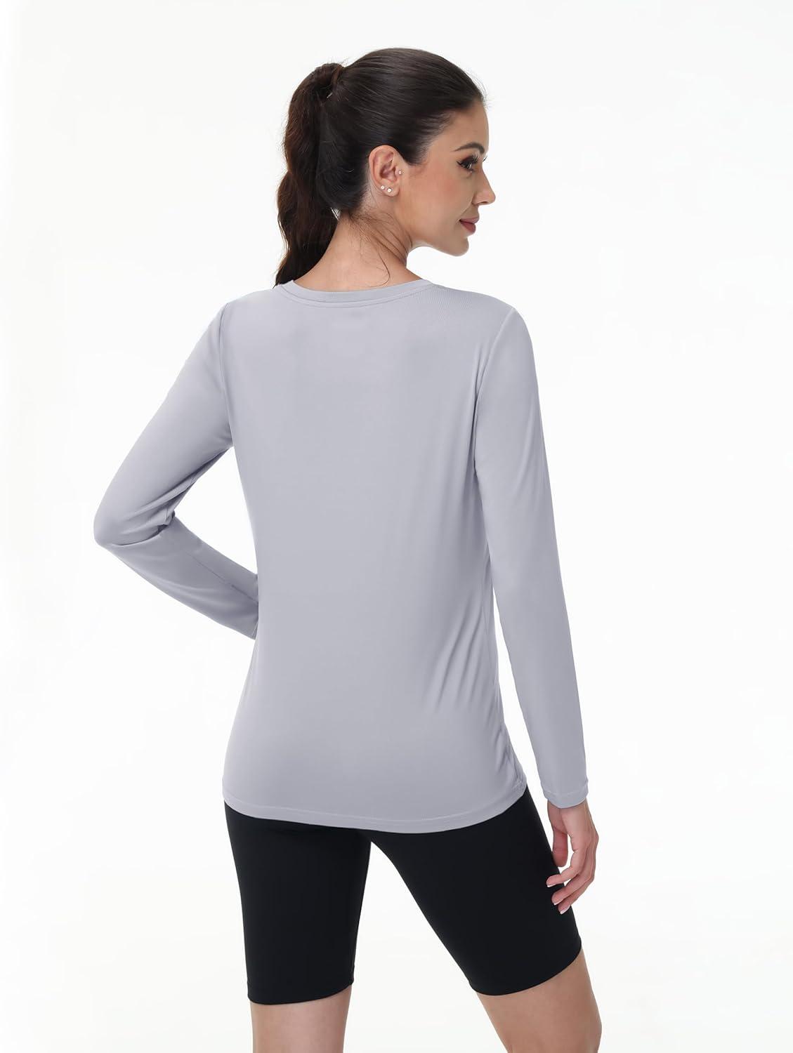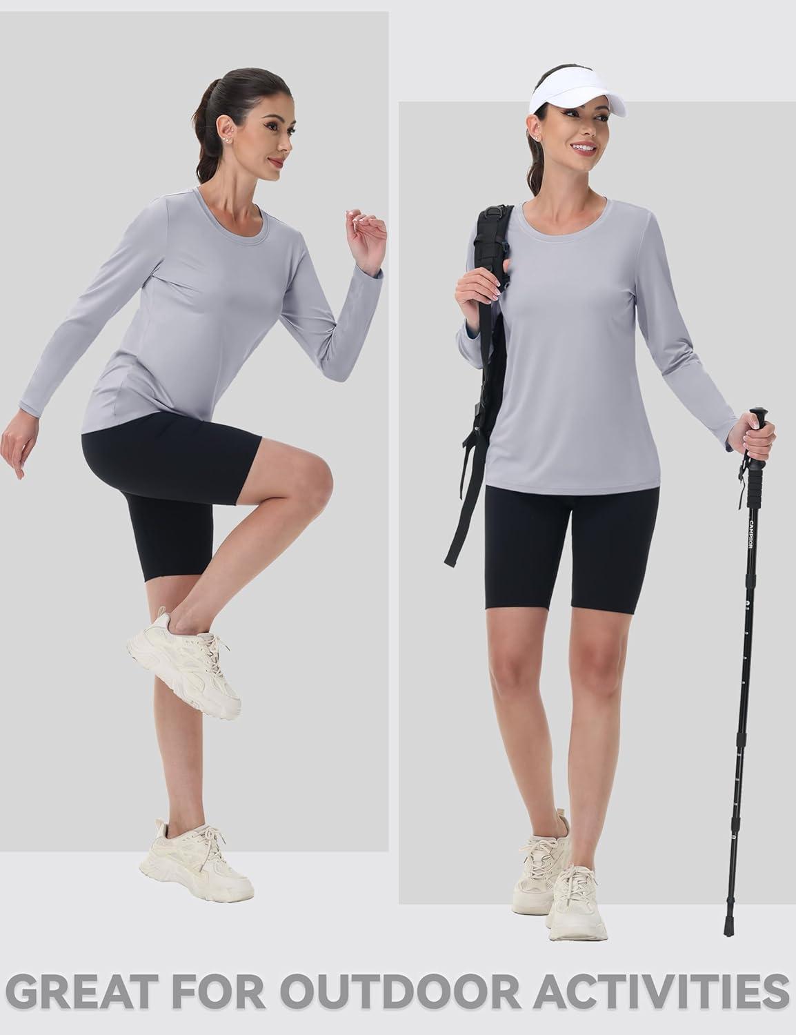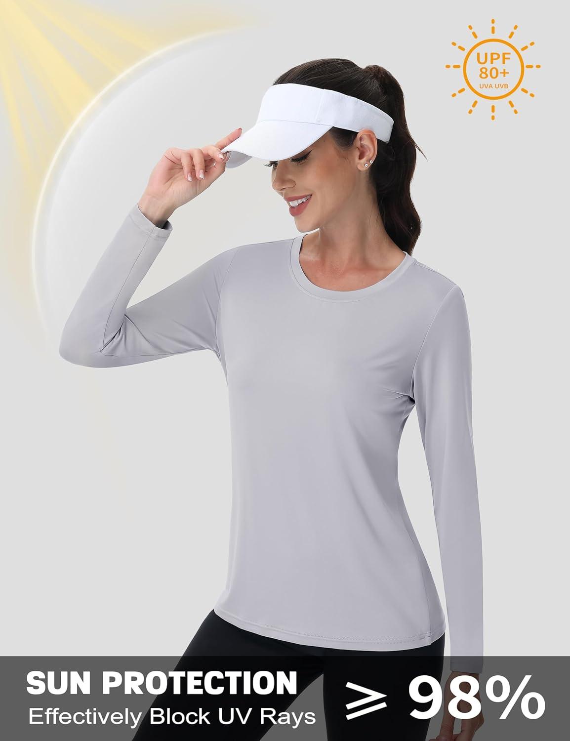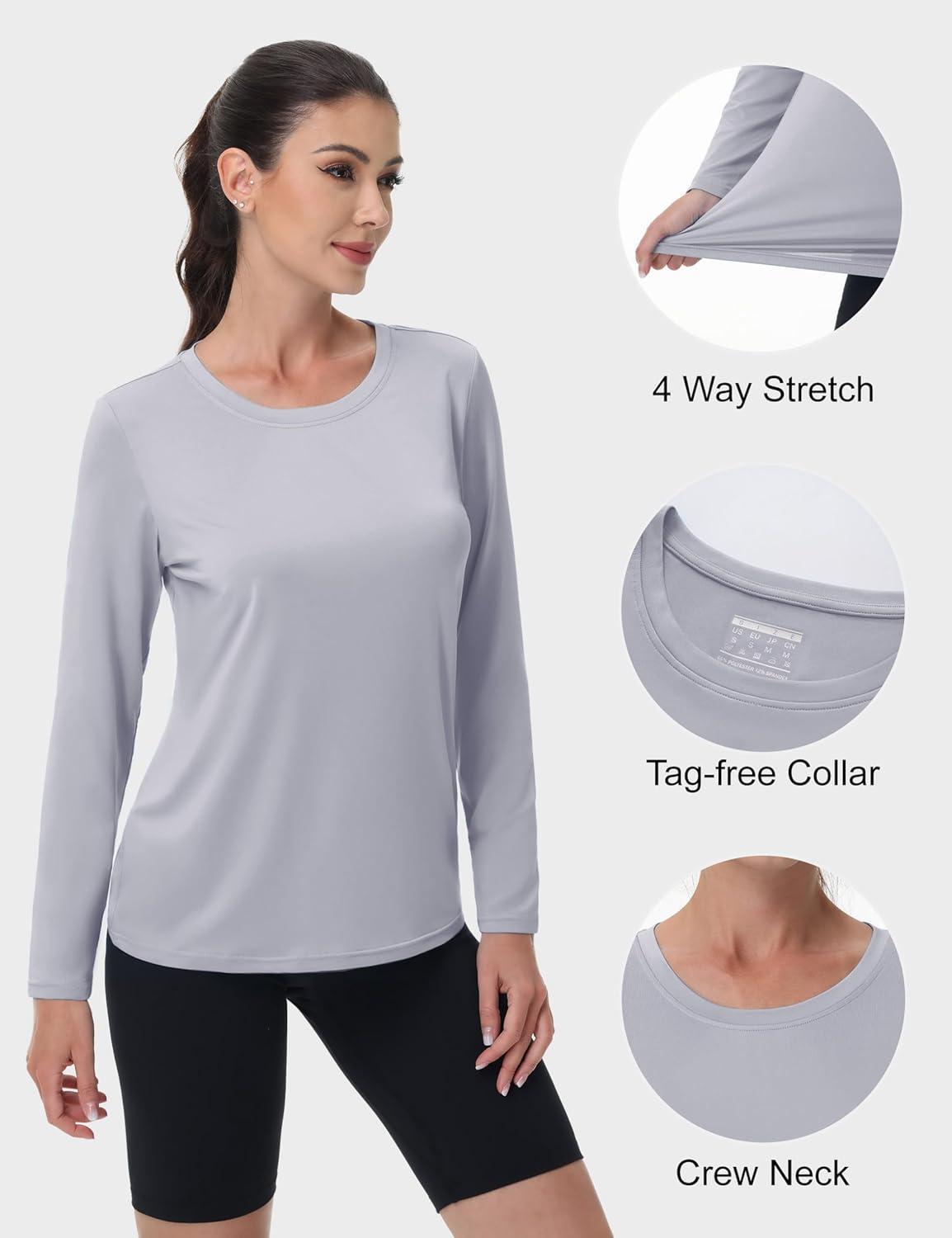 MAGCOMSEN SPF Shirts for Women Long Sleeve Quick Dry Lightweight T-Shirts Athletic Running Hiking Workout Tops(Light Grey)