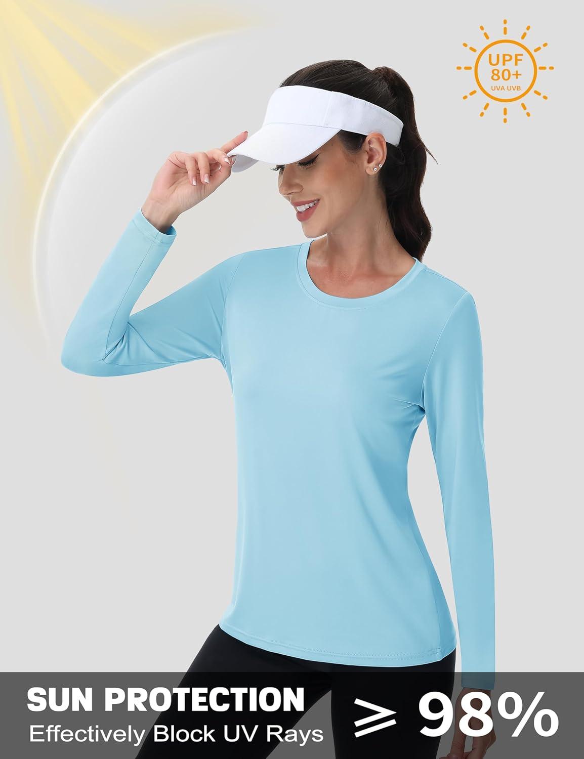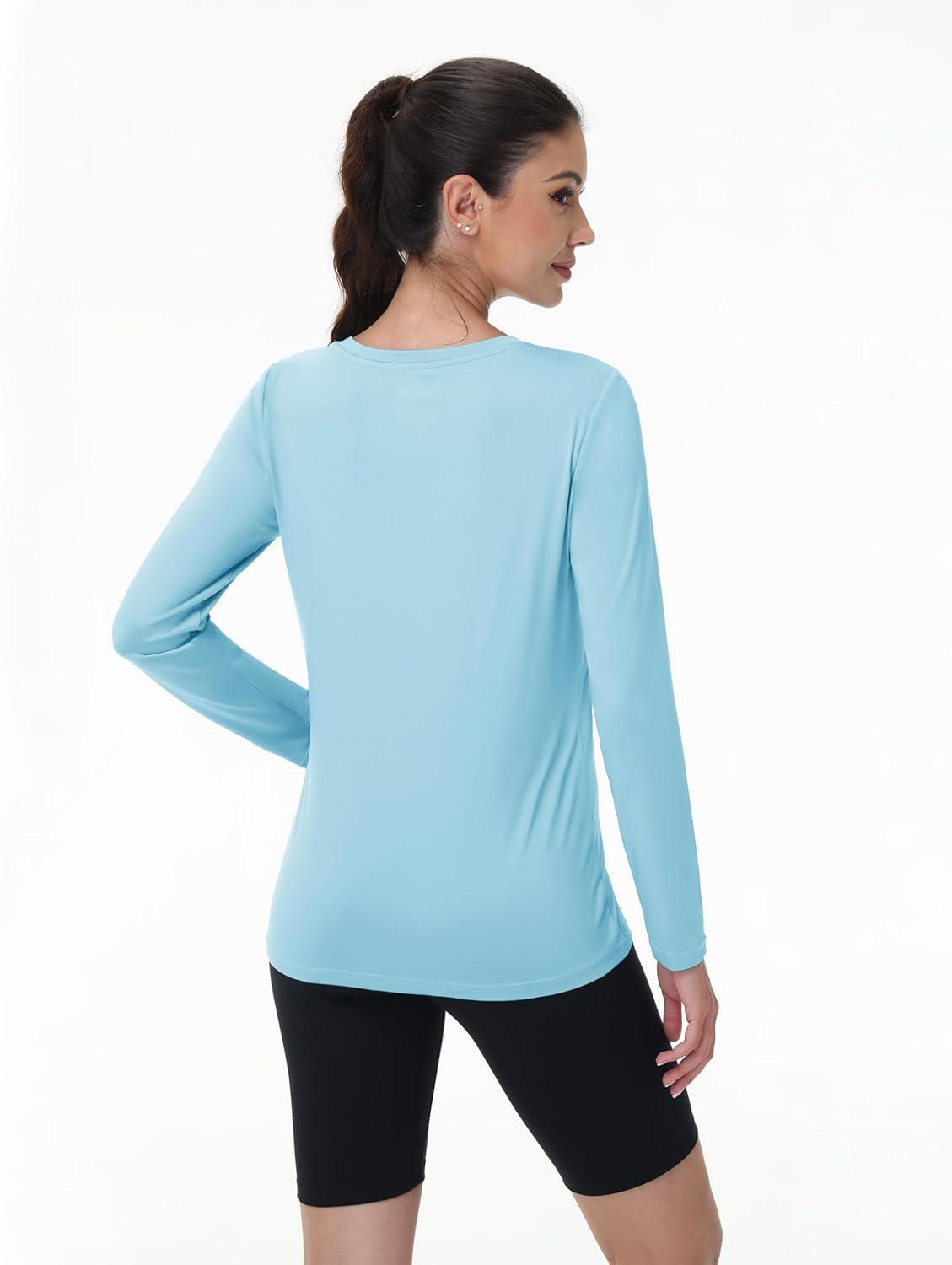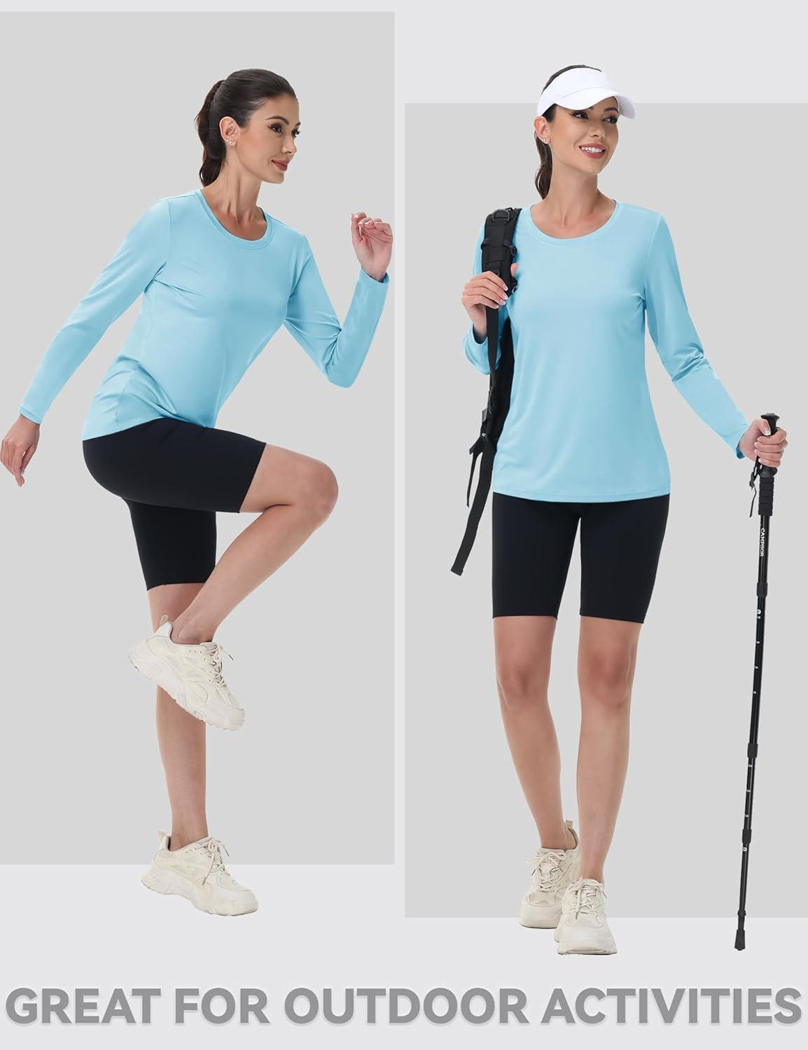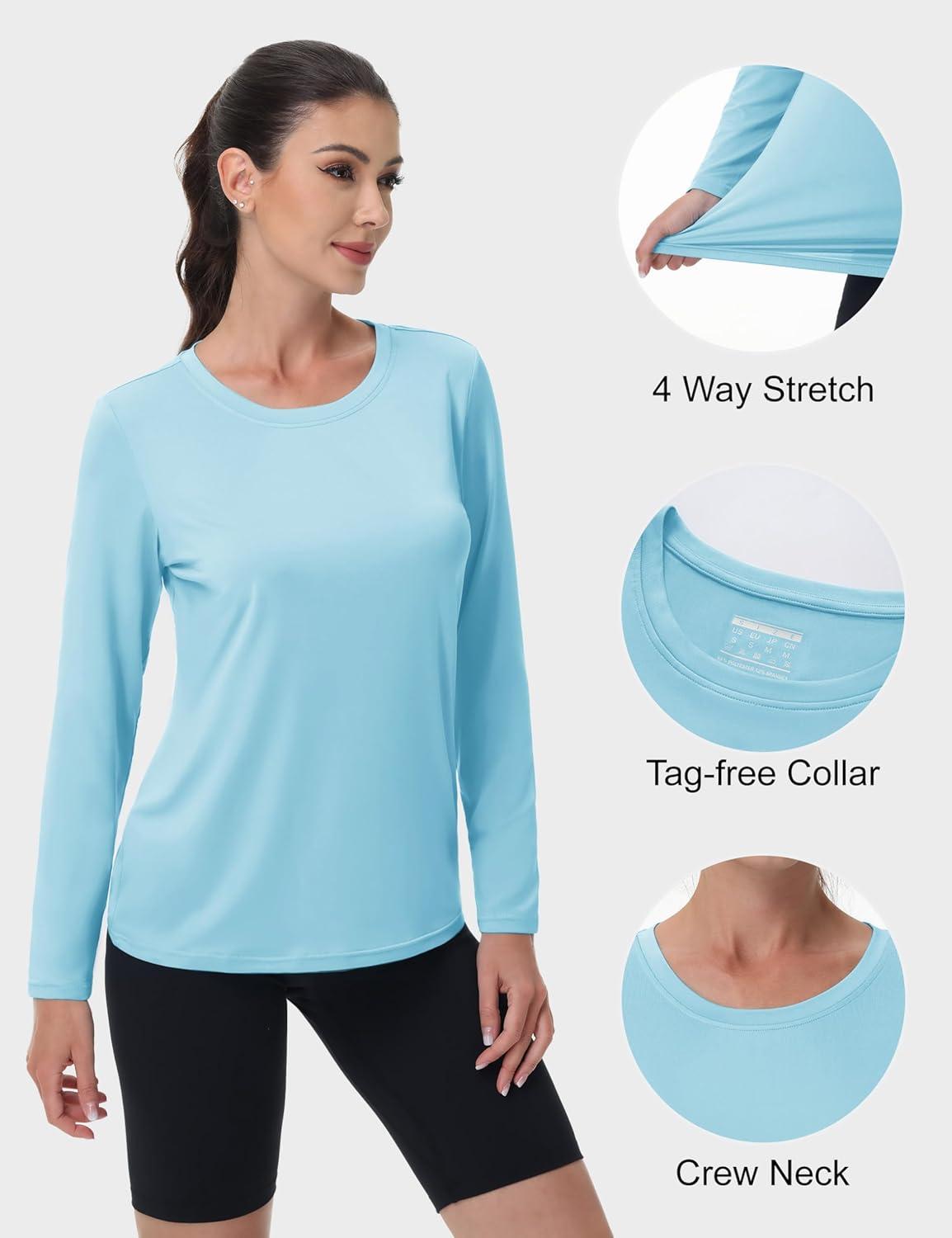 MAGCOMSEN SPF Shirts for Women Long Sleeve Quick Dry Lightweight T-Shirts Athletic Running Hiking Workout Tops(Light Lake Blue)