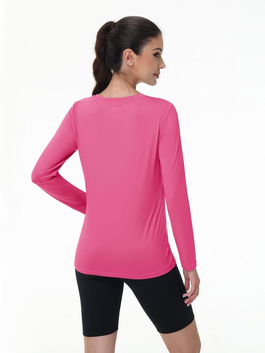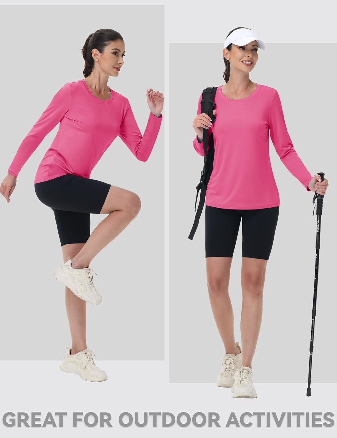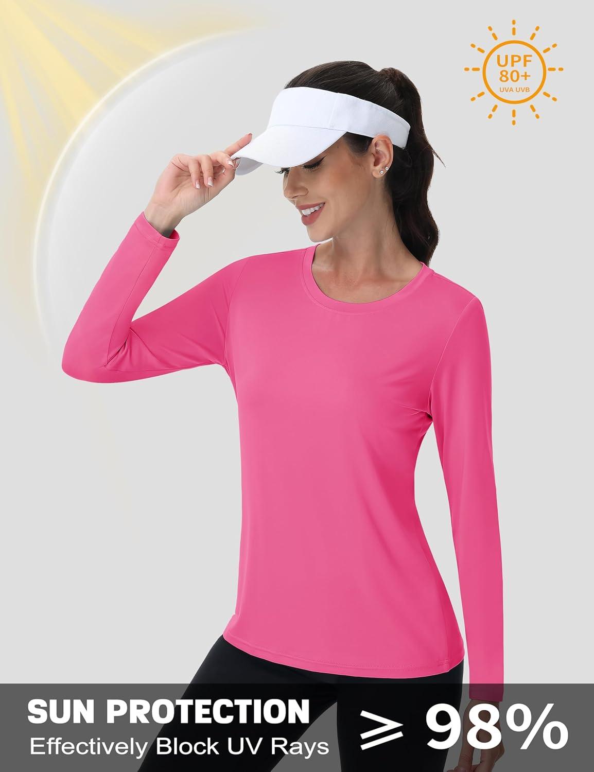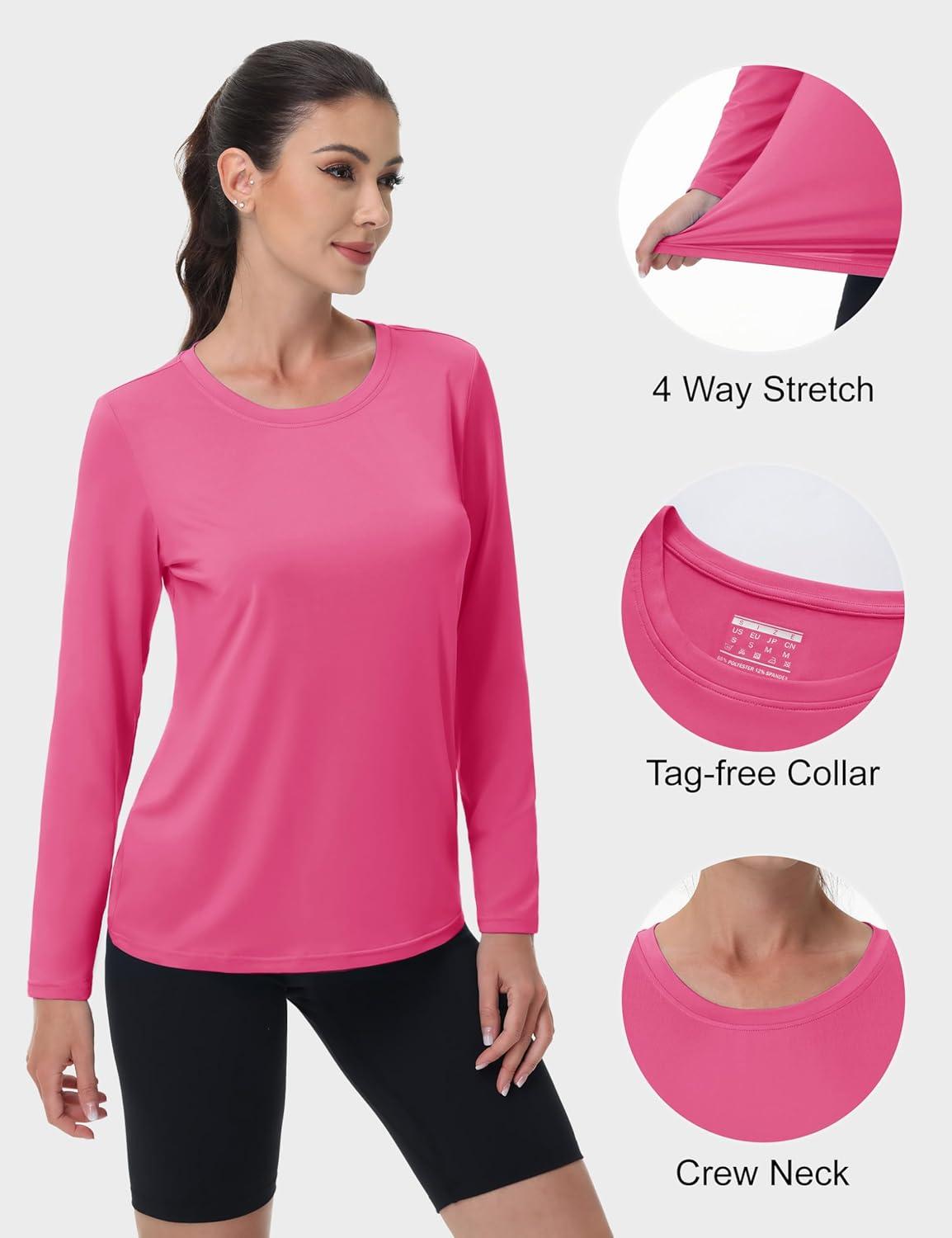 MAGCOMSEN SPF Shirts for Women Long Sleeve Quick Dry Lightweight T-Shirts Athletic Running Hiking Workout Tops(Rosy Red)