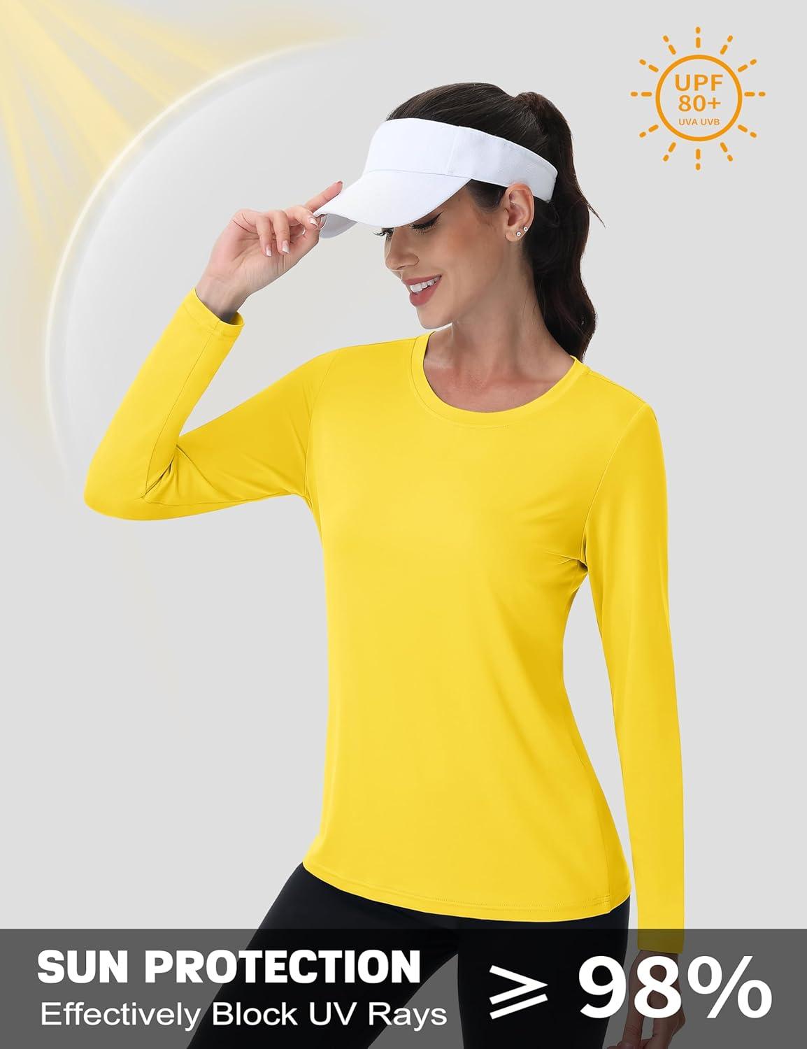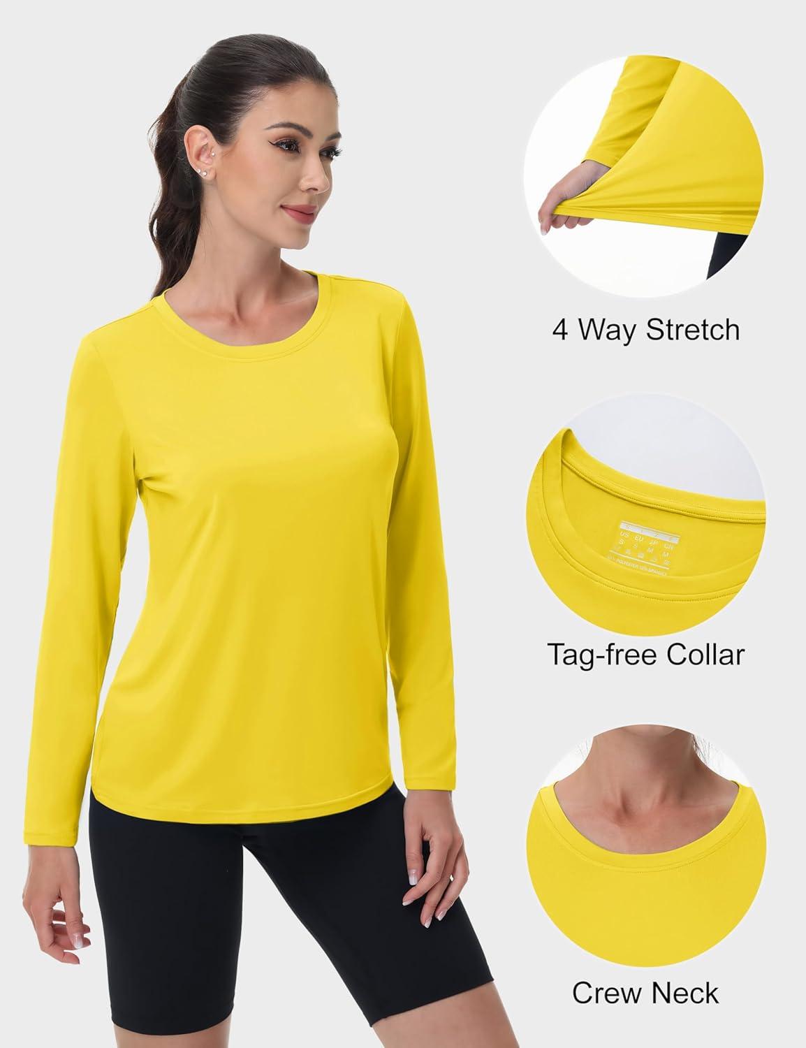 MAGCOMSEN SPF Shirts for Women Long Sleeve Quick Dry Lightweight T-Shirts Athletic Running Hiking Workout Tops(Yellow)
