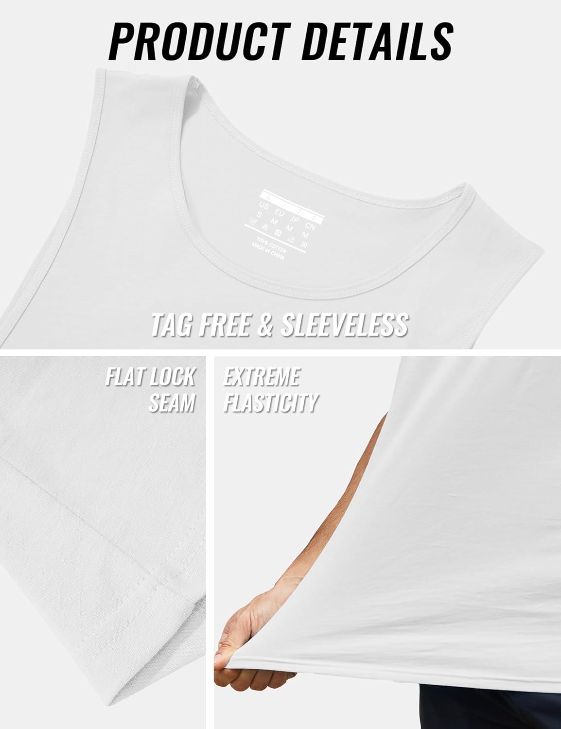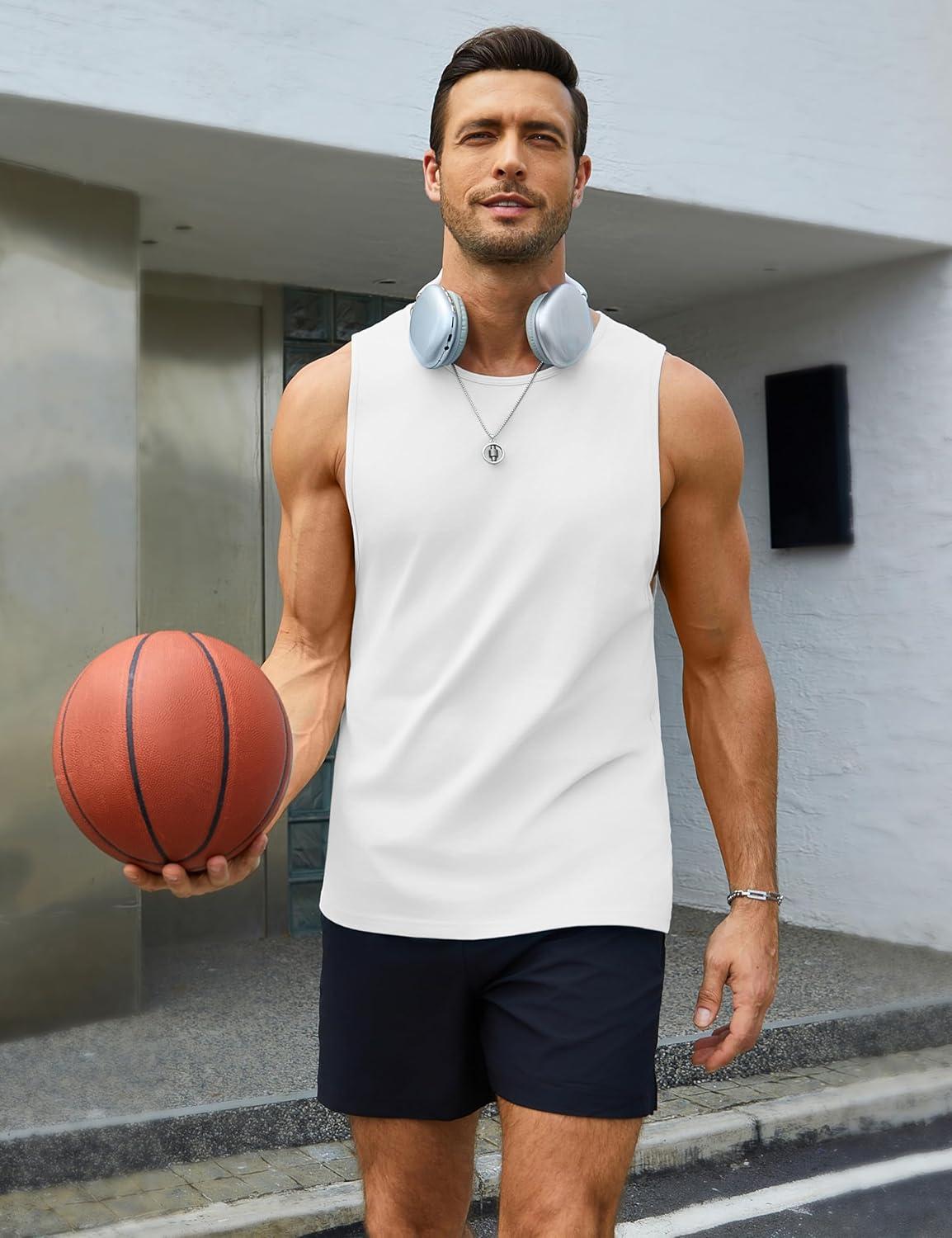 MAGCOMSEN White Tank Top Men Sleeveless Muscle Shirts Athletic Gym Workout Cut Off T Shirt Cotton Casual Summer Tank White XL