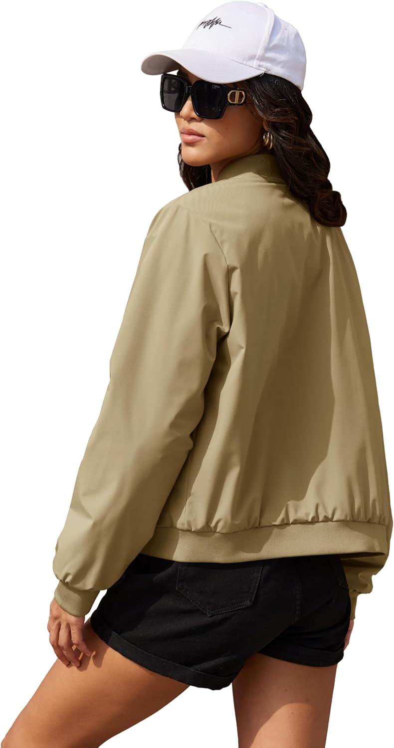 MAGCOMSEN Women’s Bomber Jacket Casual Quilted Lined Coat Zip Up Winter Fall Windbreaker Fashion Outerwear with Pockets(Khaki)