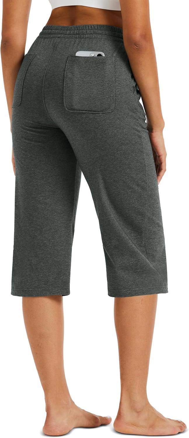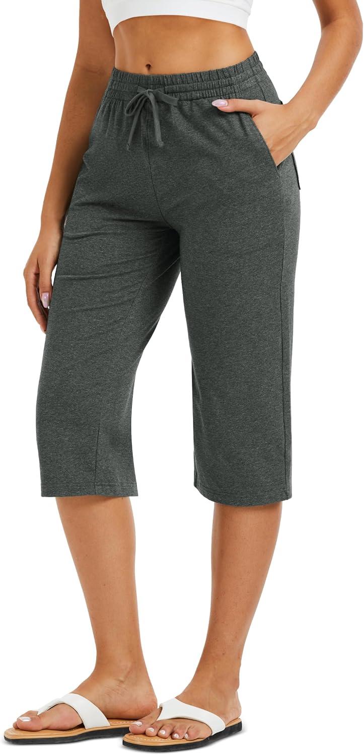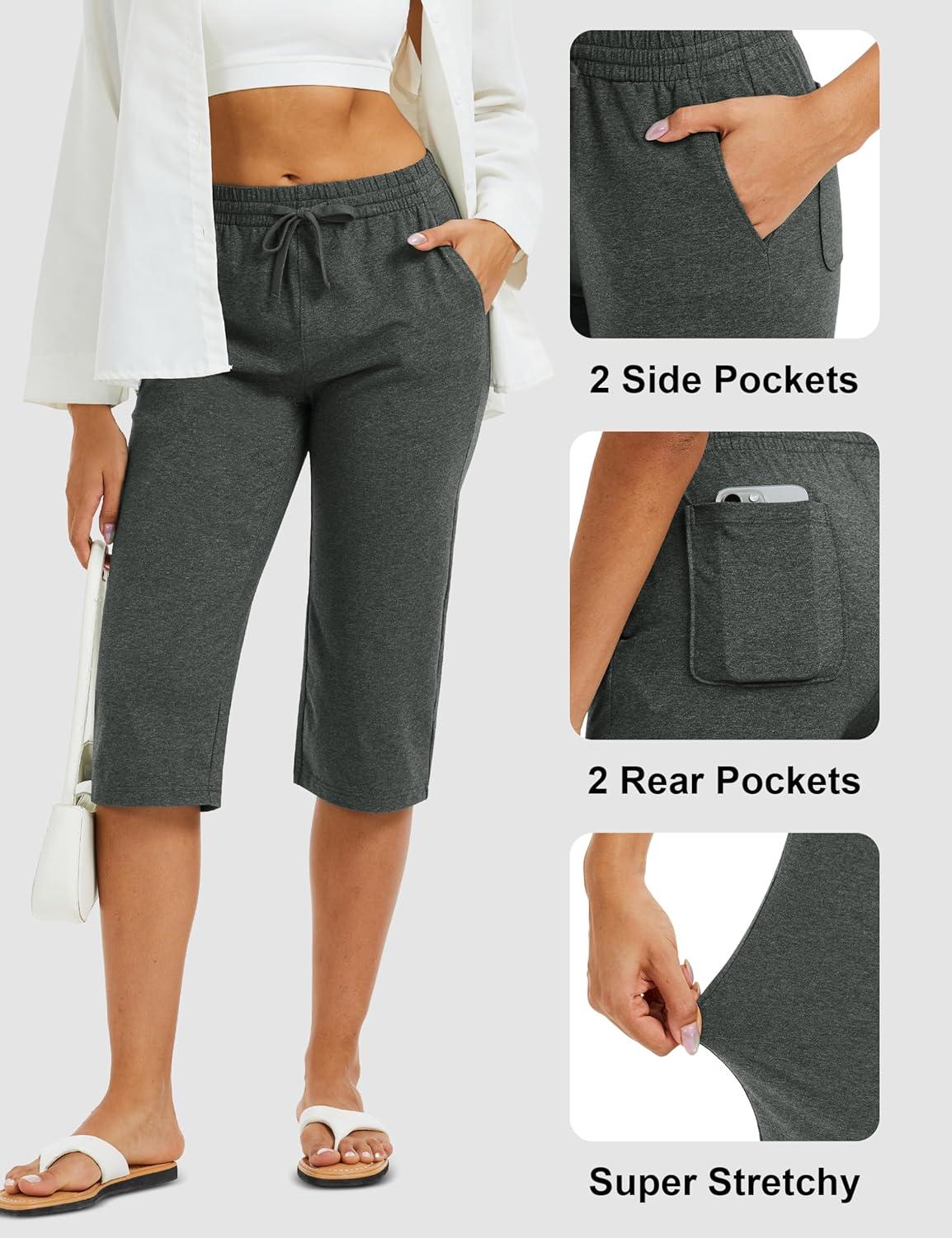 MAGCOMSEN Women’s Capri Pants Cotton Yoga Wide Leg Capris Loose Casual Lounge Workout Capri Sweatpants with 5 Pockets(Dark Grey)