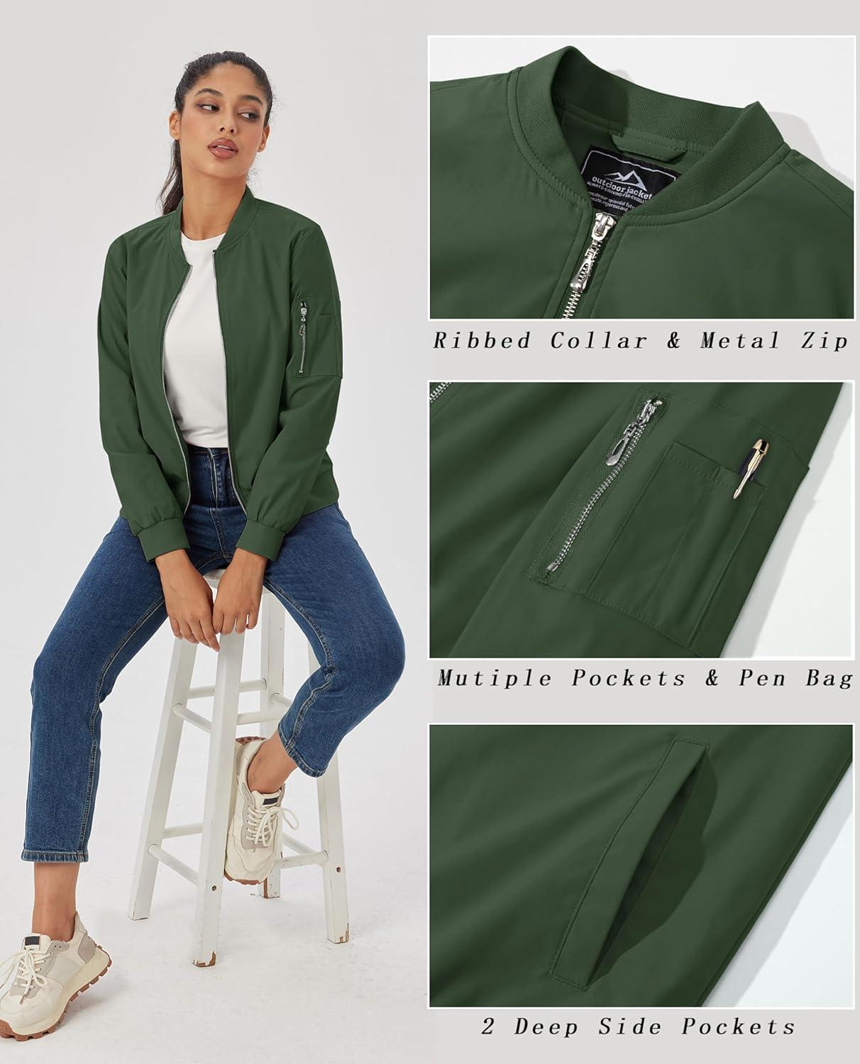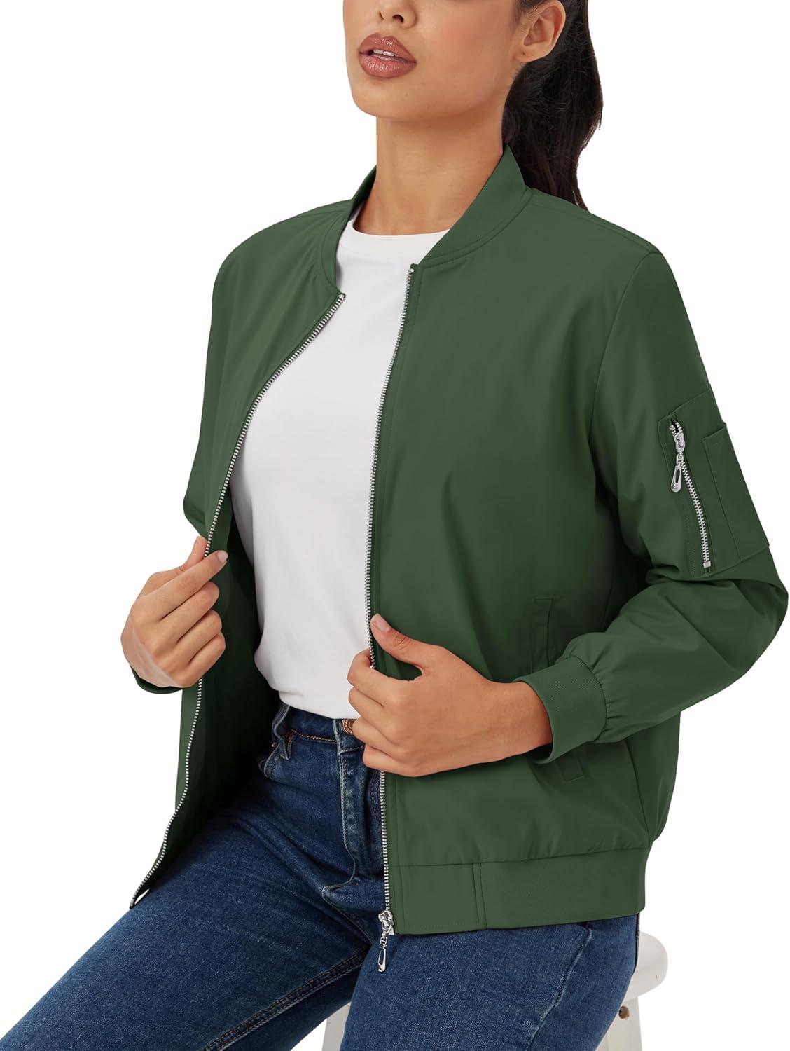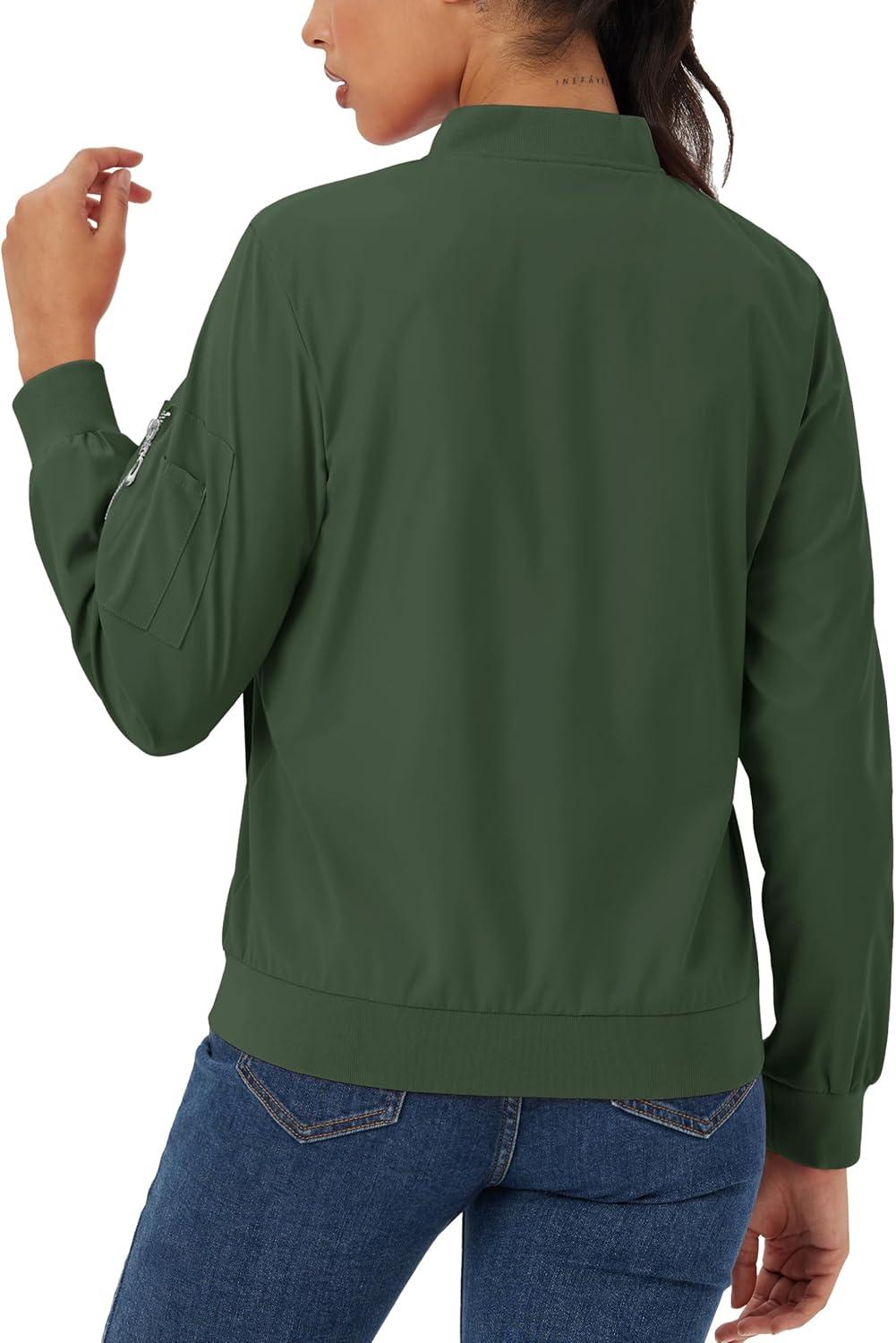 MAGCOMSEN Women’s Casual Jacket Lightweight Bomber Jackets 5 Pockets Windbreaker Zip-up Spring Fall Outerwear(Army Green)