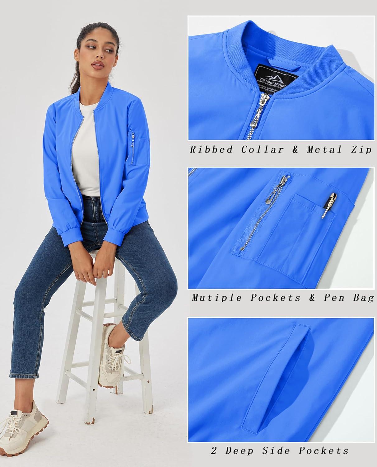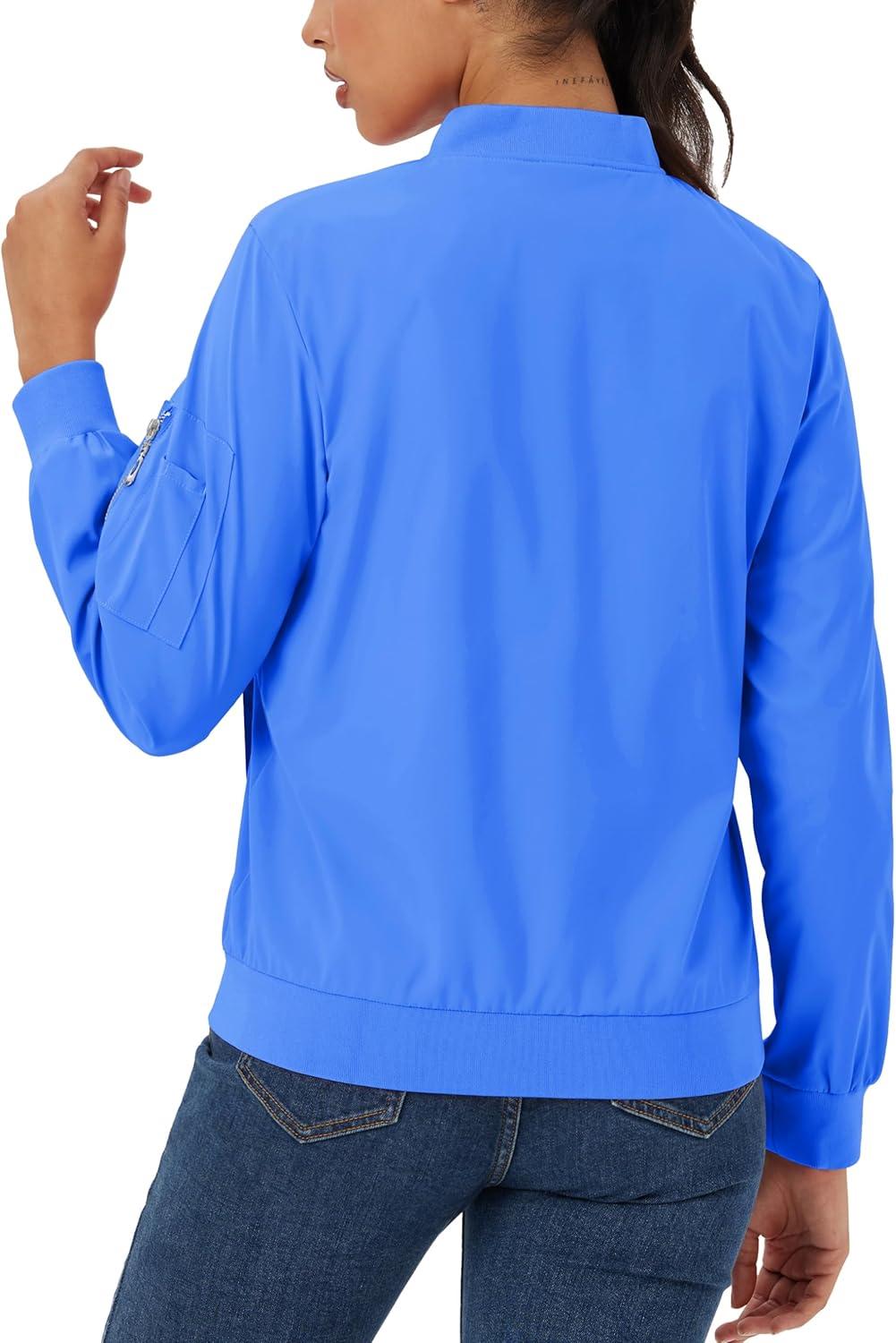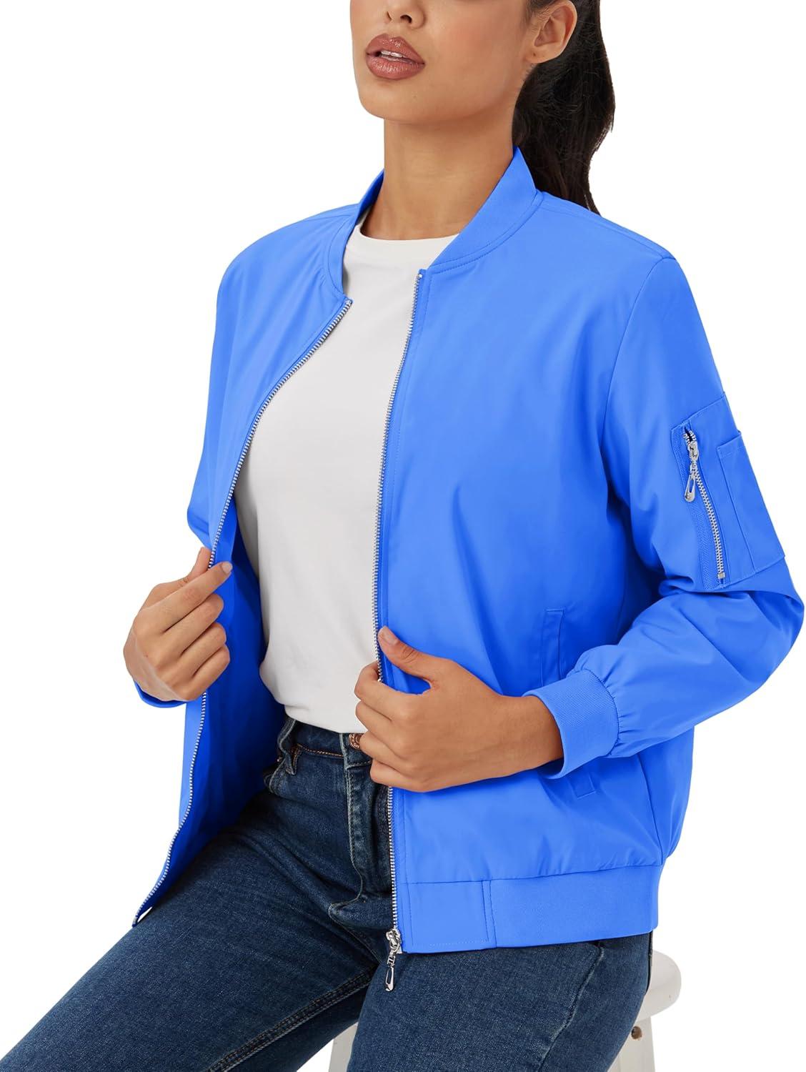 MAGCOMSEN Women’s Casual Jacket Lightweight Bomber Jackets 5 Pockets Windbreaker Zip-up Spring Fall Outerwear(Azure Blue)