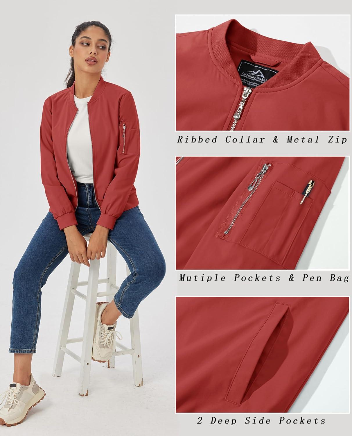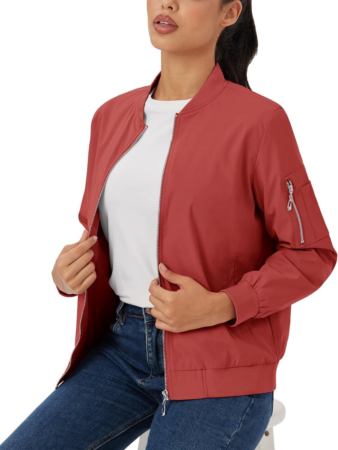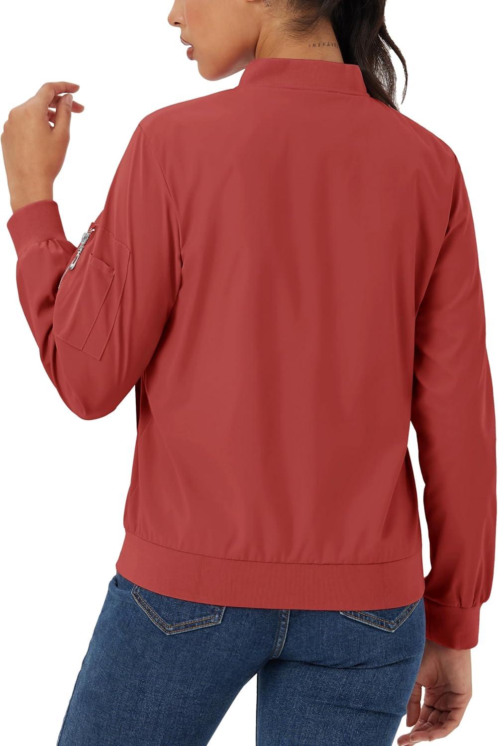 MAGCOMSEN Women’s Casual Jacket Lightweight Bomber Jackets 5 Pockets Windbreaker Zip-up Spring Fall Outerwear(Orange Red)