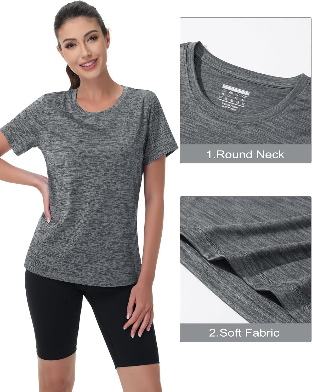 MAGCOMSEN Women’s Cotton T-Shirts Short-Sleeve Shirts Crew-Neck Tops Classic-Fit Breathable Casual Summer Tees(Dark Grey)