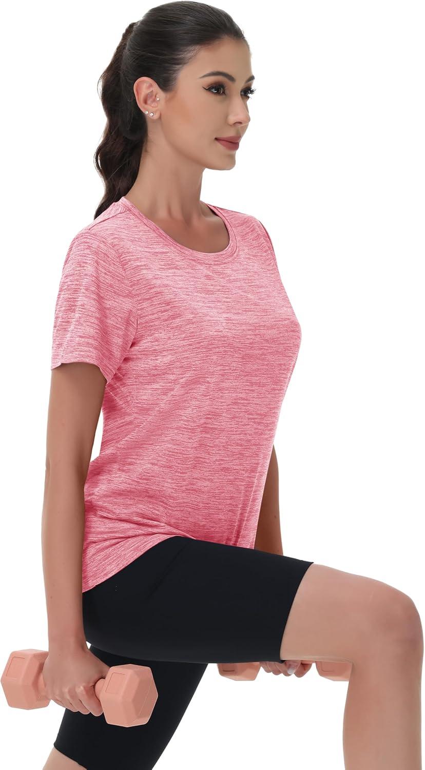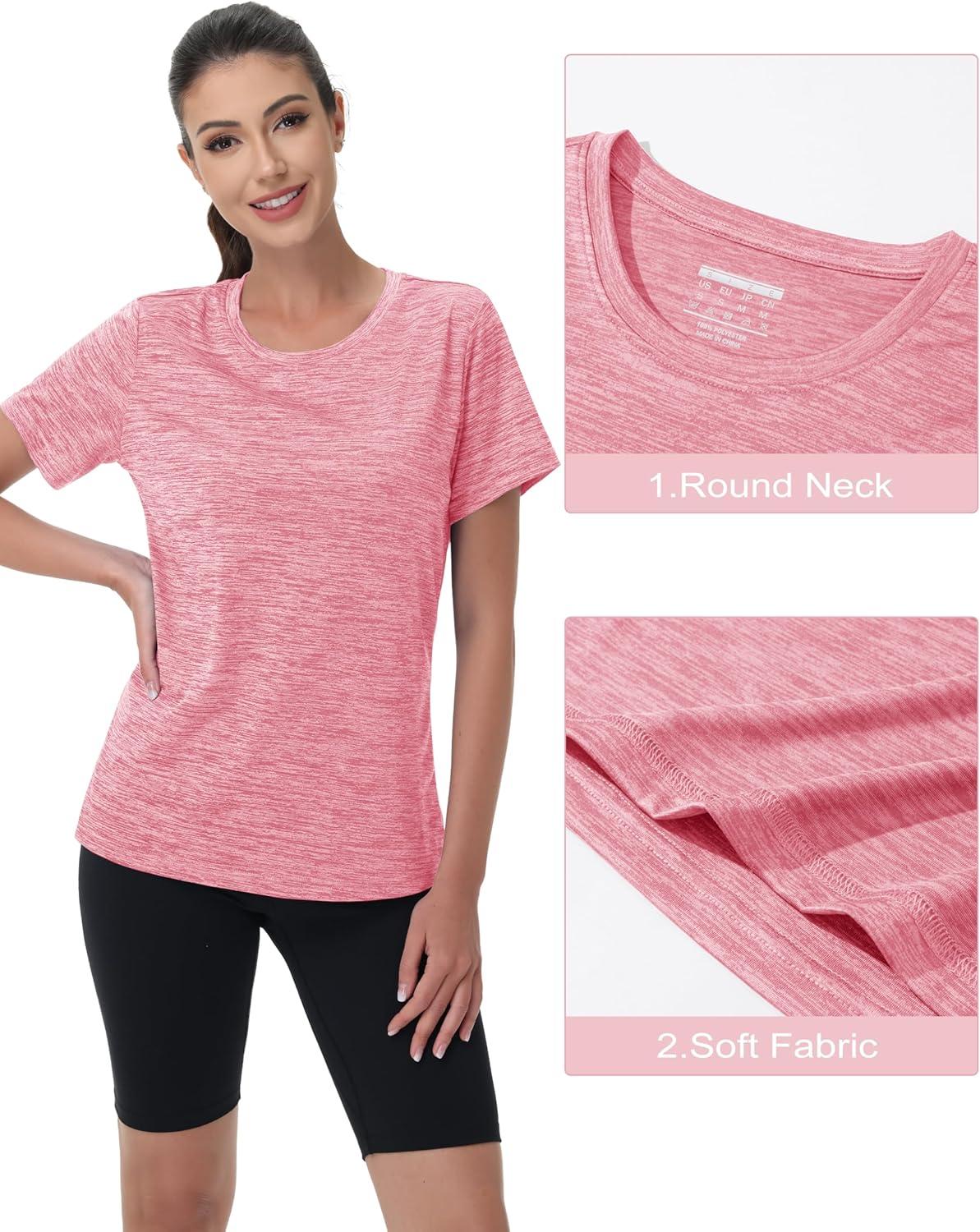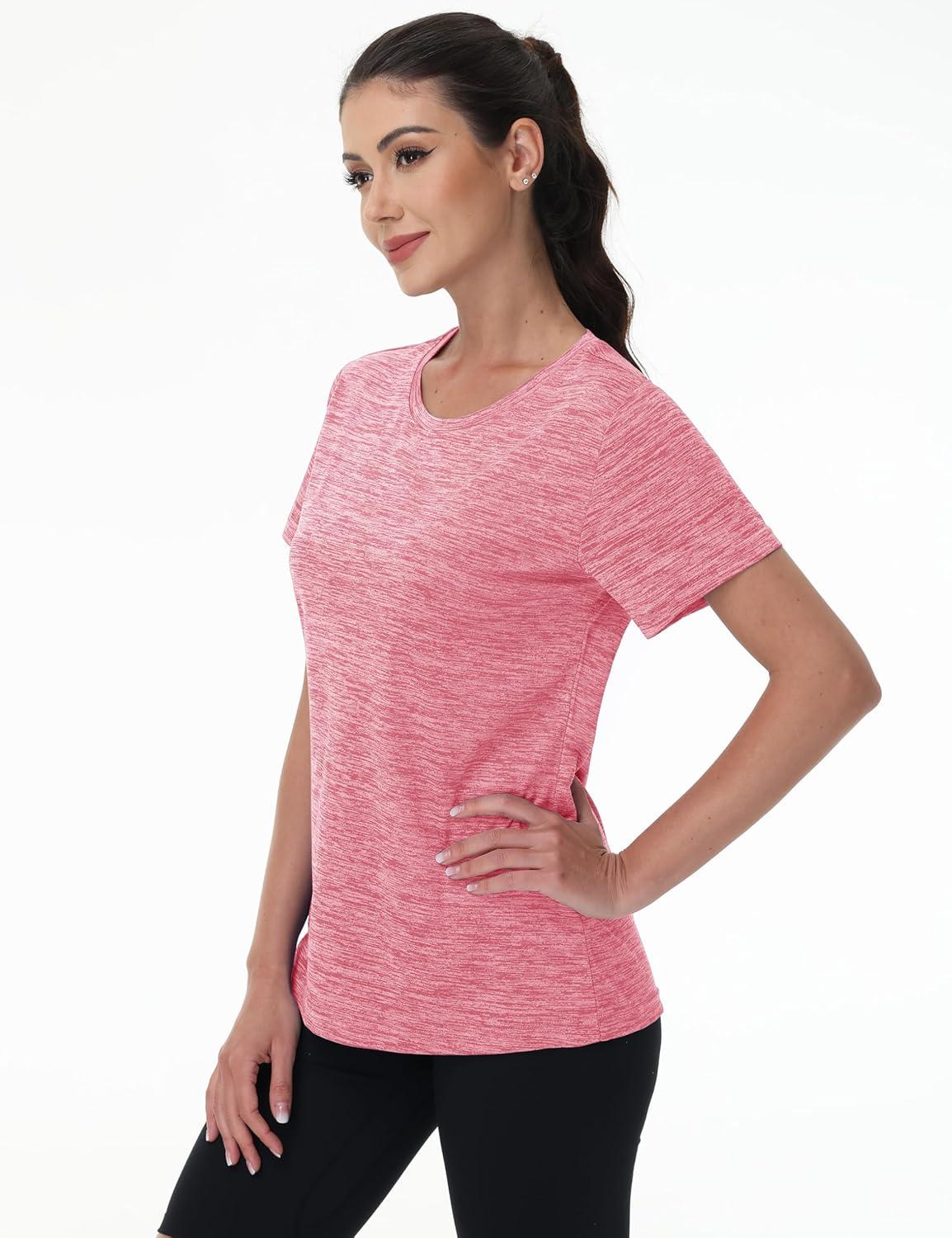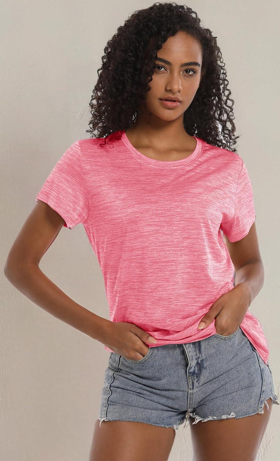 MAGCOMSEN Women’s Cotton T-Shirts Short-Sleeve Shirts Crew-Neck Tops Classic-Fit Breathable Casual Summer Tees(Pink)