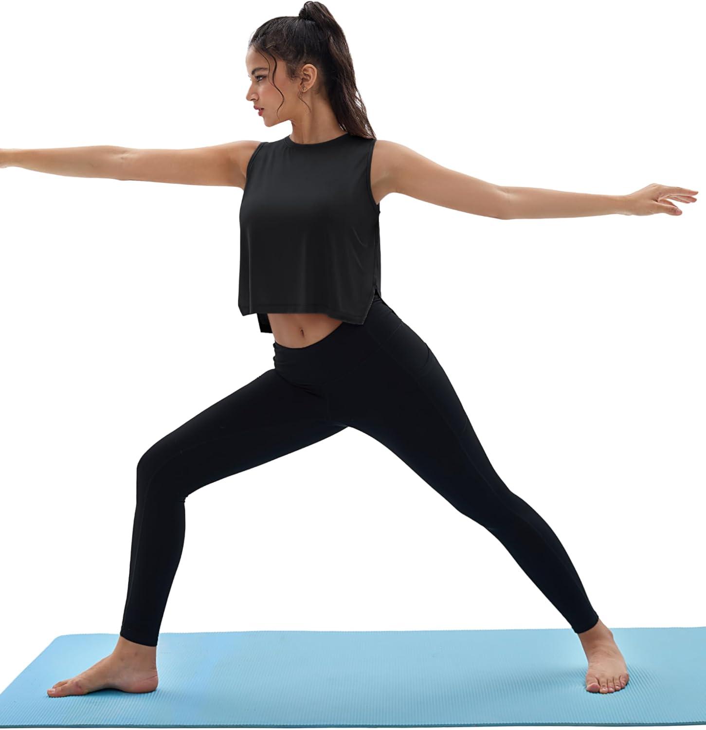 MAGCOMSEN Women’s Crop Tank Tops Workout Sleeveless Shirts Loose Fit Gym Yoga Top with Side Slits(Black)