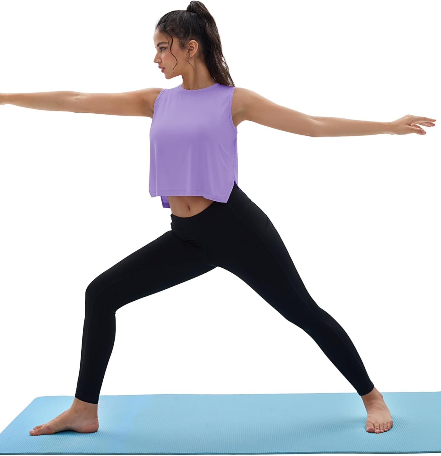 MAGCOMSEN Women’s Crop Tank Tops Workout Sleeveless Shirts Loose Fit Gym Yoga Top with Side Slits(Taro Purple)