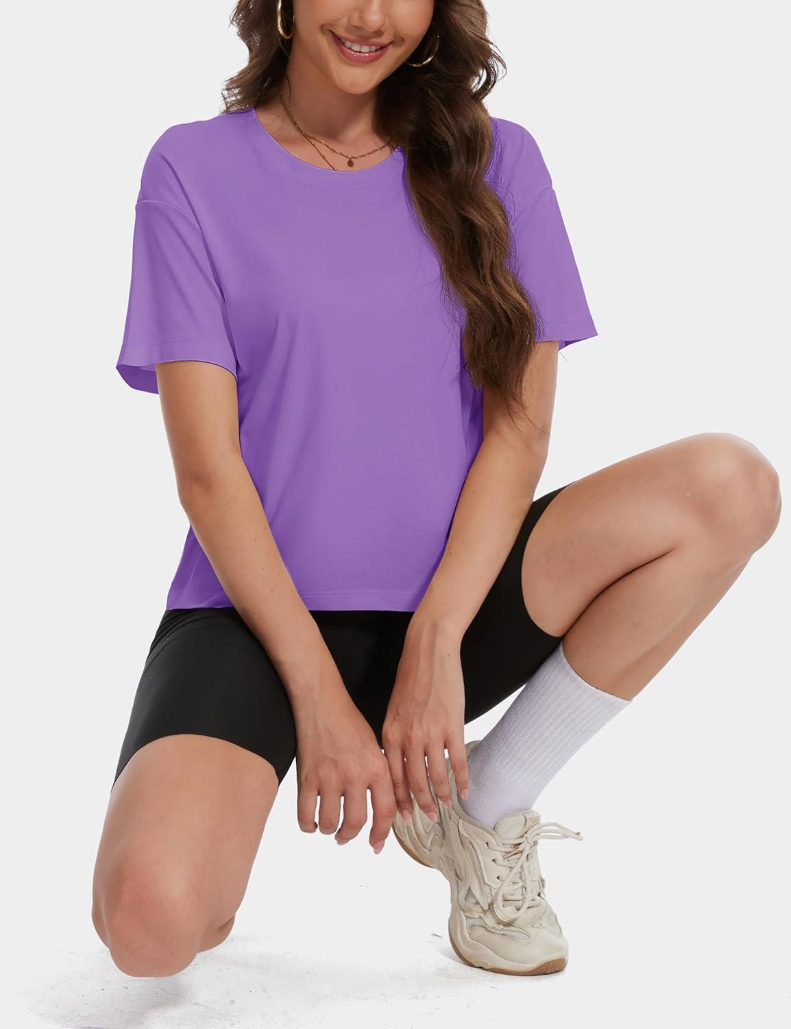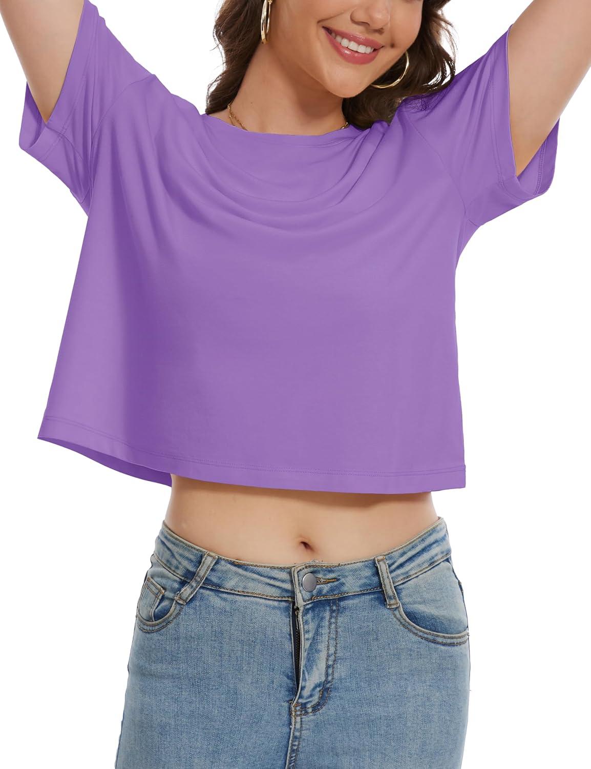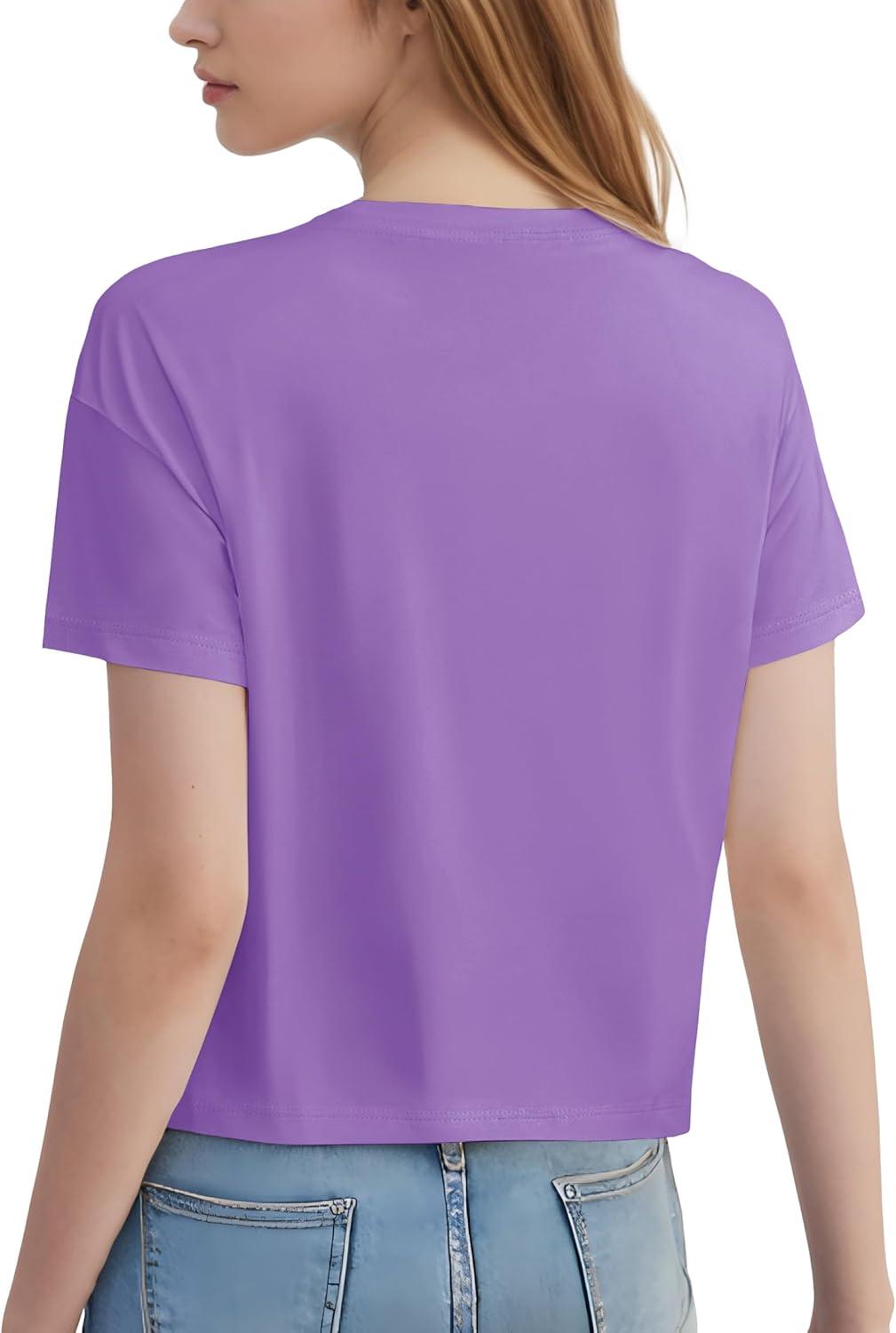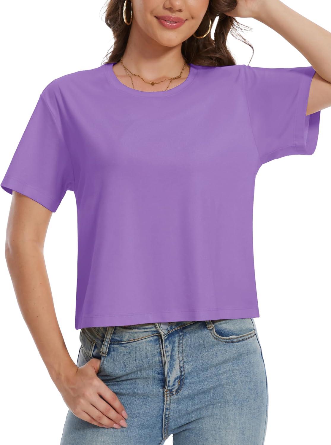 MAGCOMSEN Womens Crop Tops Basic Summer Cropped T-Shirts Loose Fit Cotton Short Sleeve UPF 50+ Boxy Tee Shirts(Light Purple)