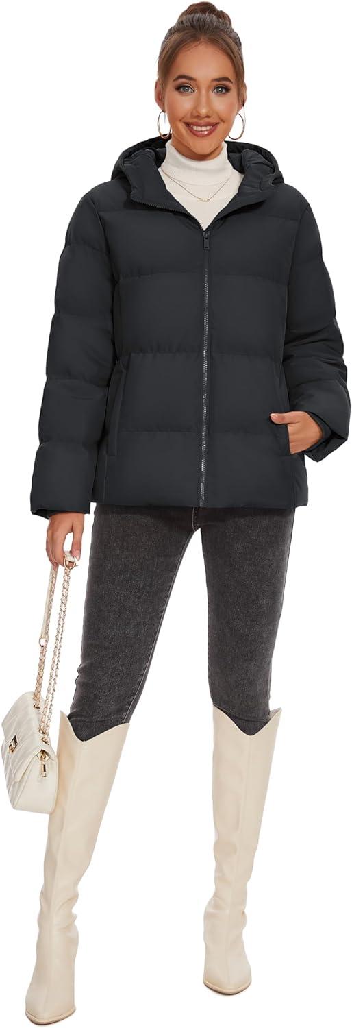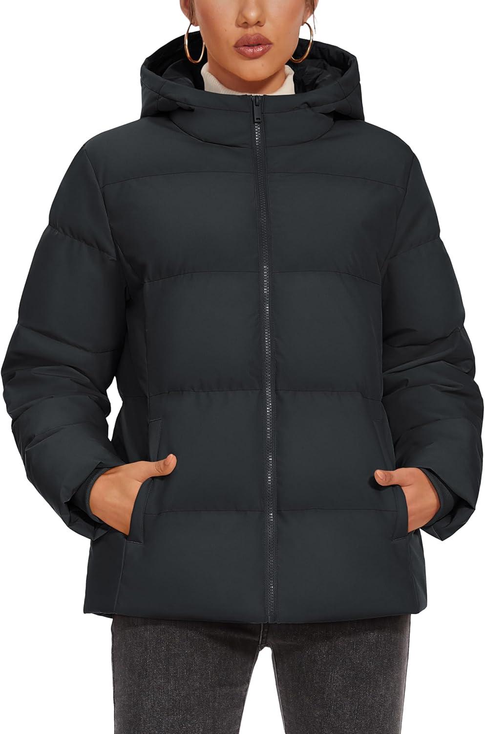MAGCOMSEN Women’s Down Puffer Jacket with Hood Lightweight Thermal Quilted Coat with Pockets Zip-up Winter Warm Jacket(Black)