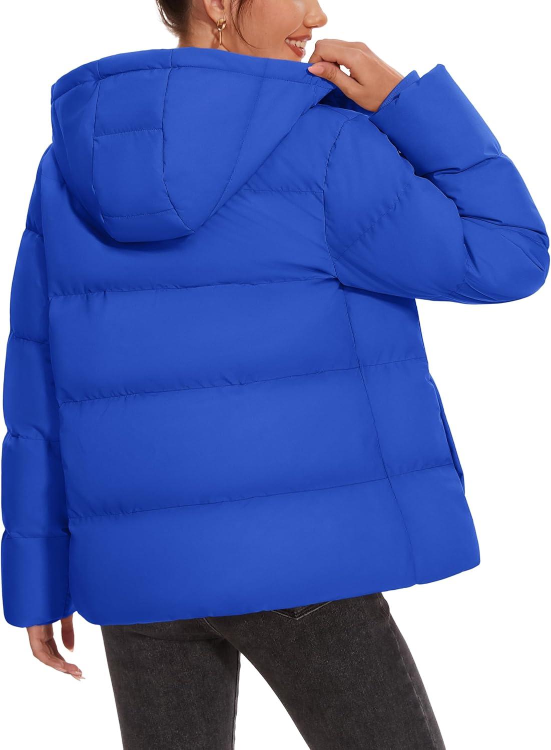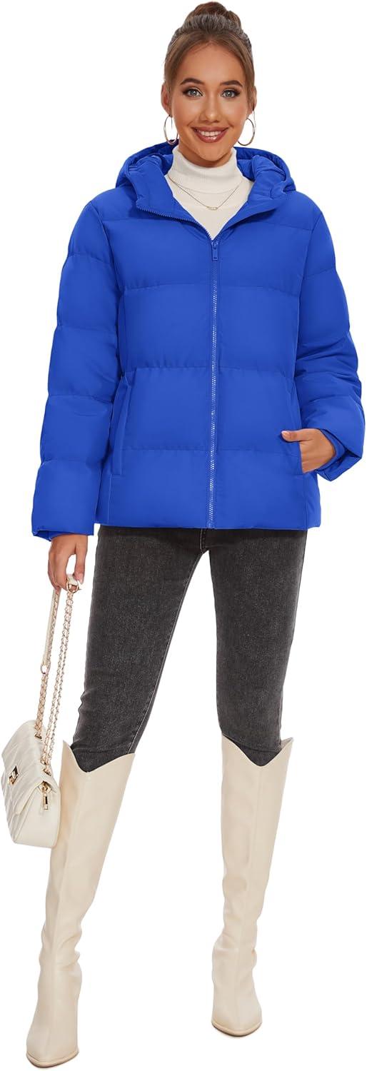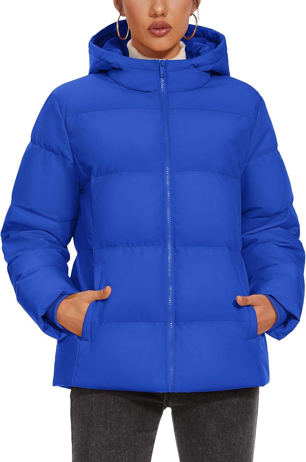 MAGCOMSEN Women’s Down Puffer Jacket with Hood Lightweight Thermal Quilted Coat with Pockets Zip-up Winter Warm Jacket(Blue)