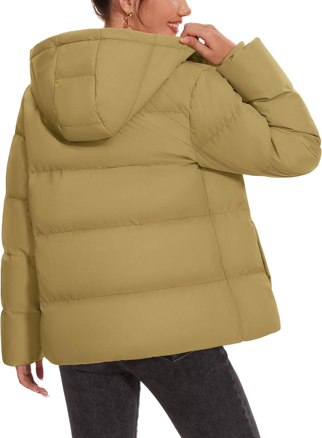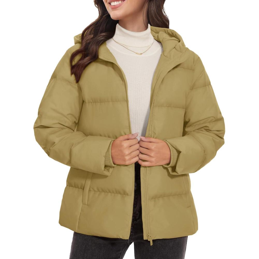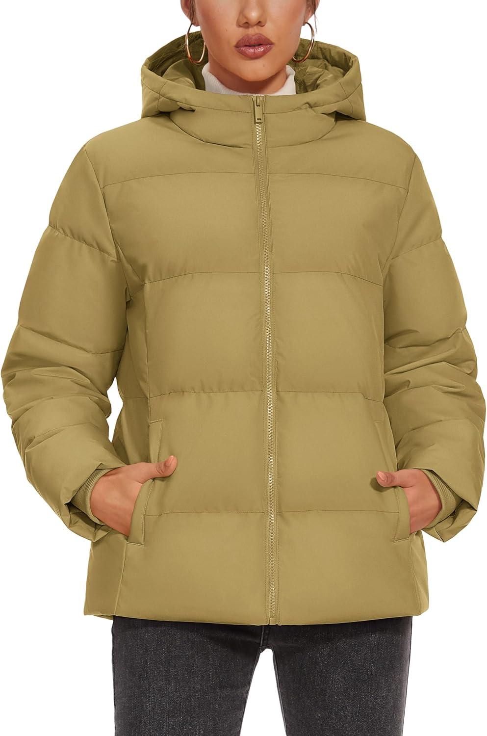 MAGCOMSEN Women’s Down Puffer Jacket with Hood Lightweight Thermal Quilted Coat with Pockets Zip-up Winter Warm Jacket(Khaki)