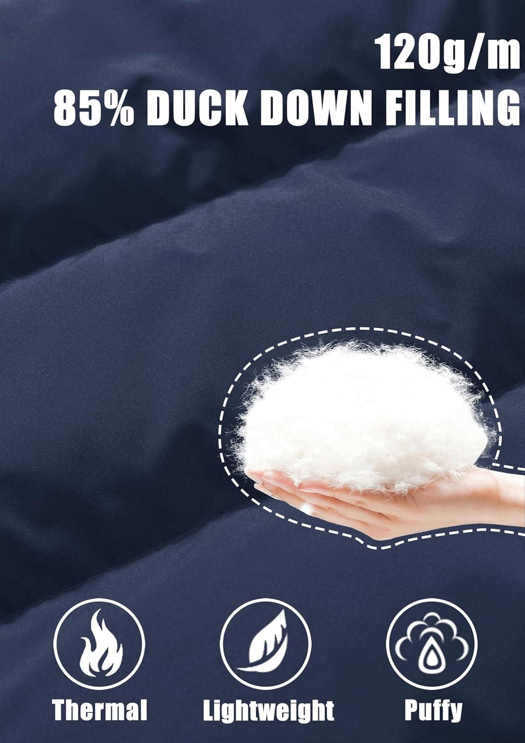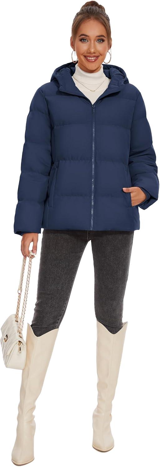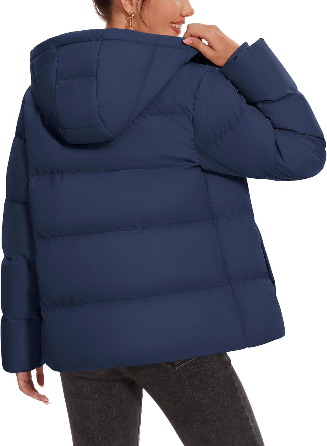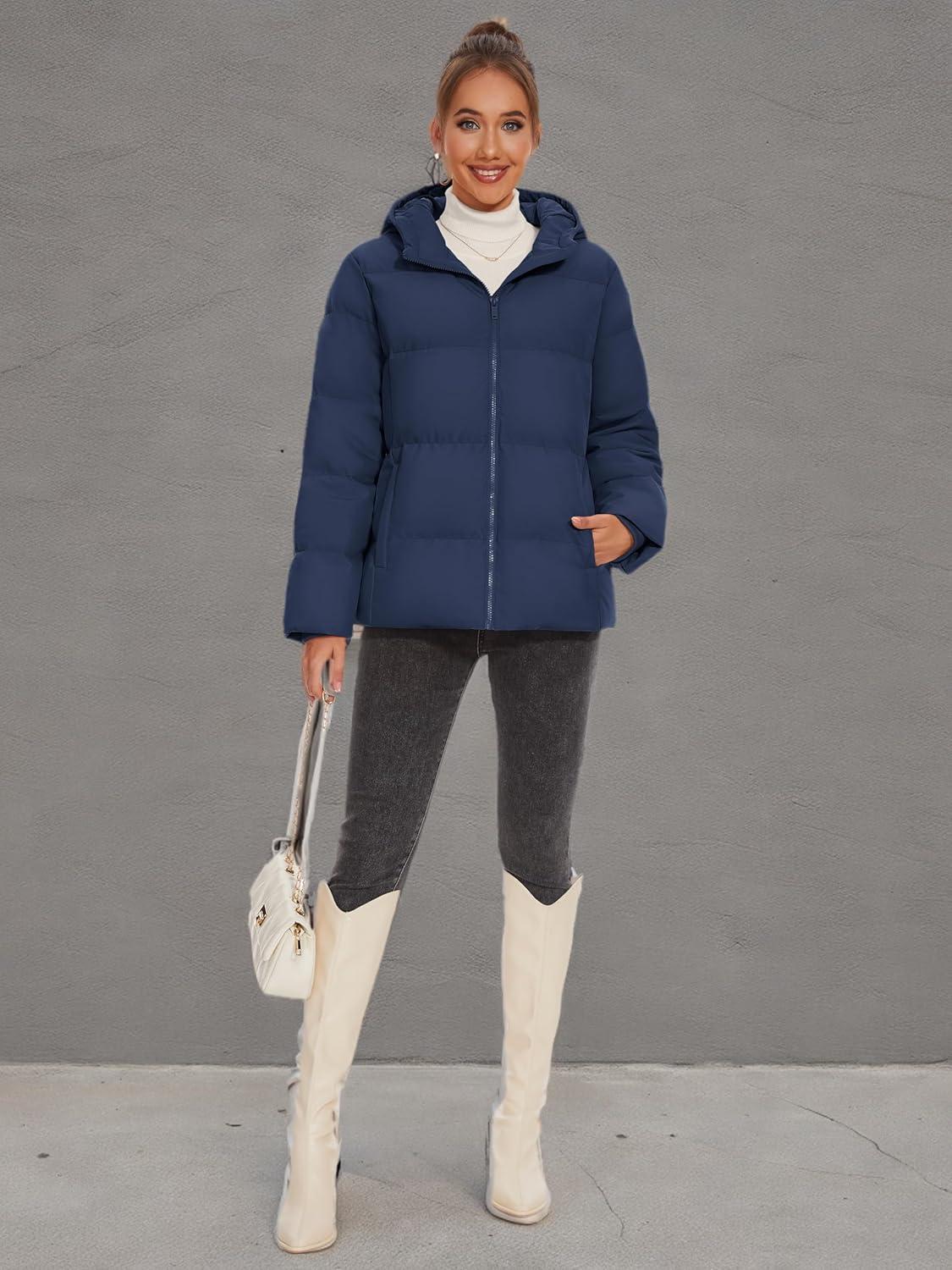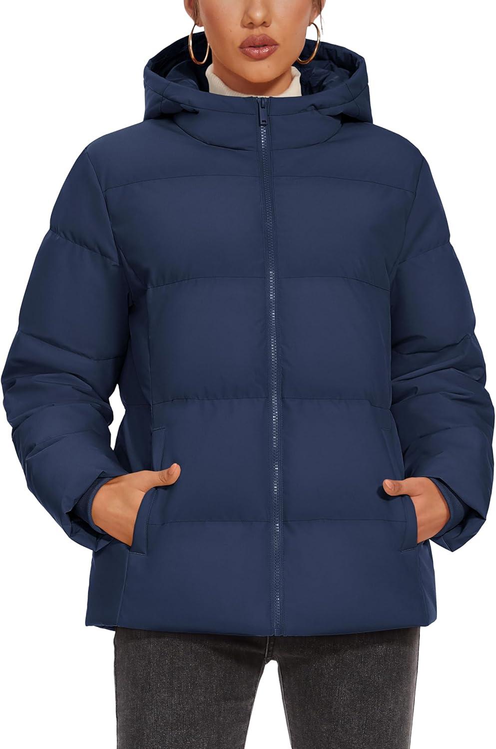 MAGCOMSEN Women’s Down Puffer Jacket with Hood Lightweight Thermal Quilted Coat with Pockets Zip-up Winter Warm Jacket(Navy)