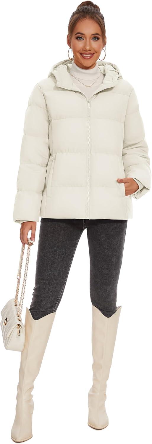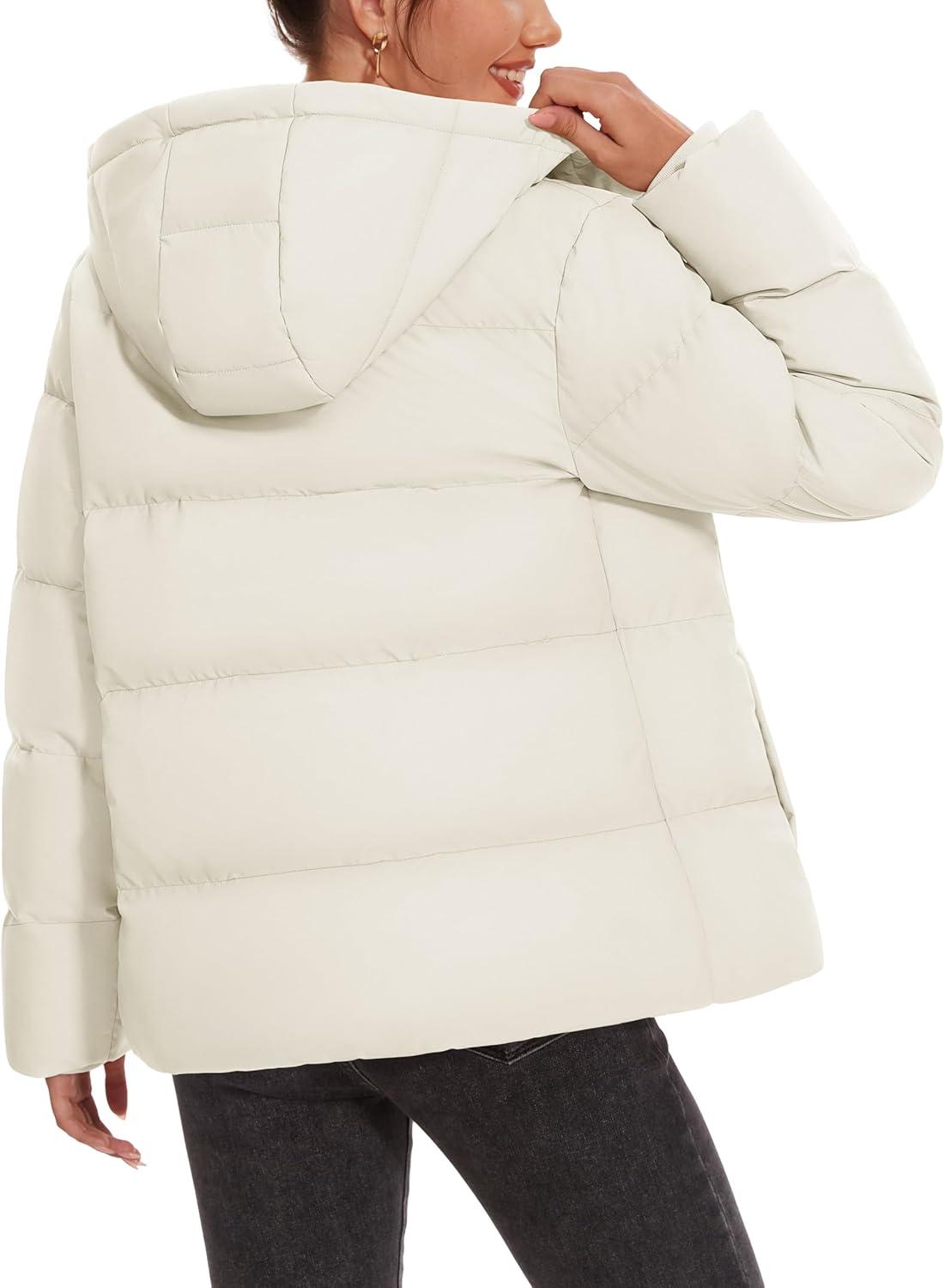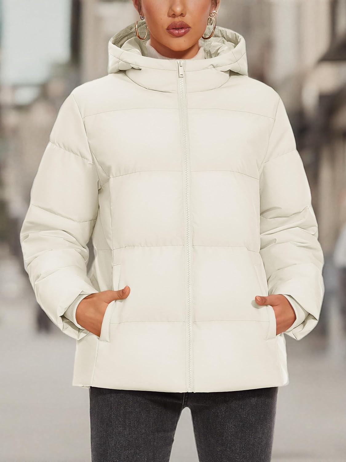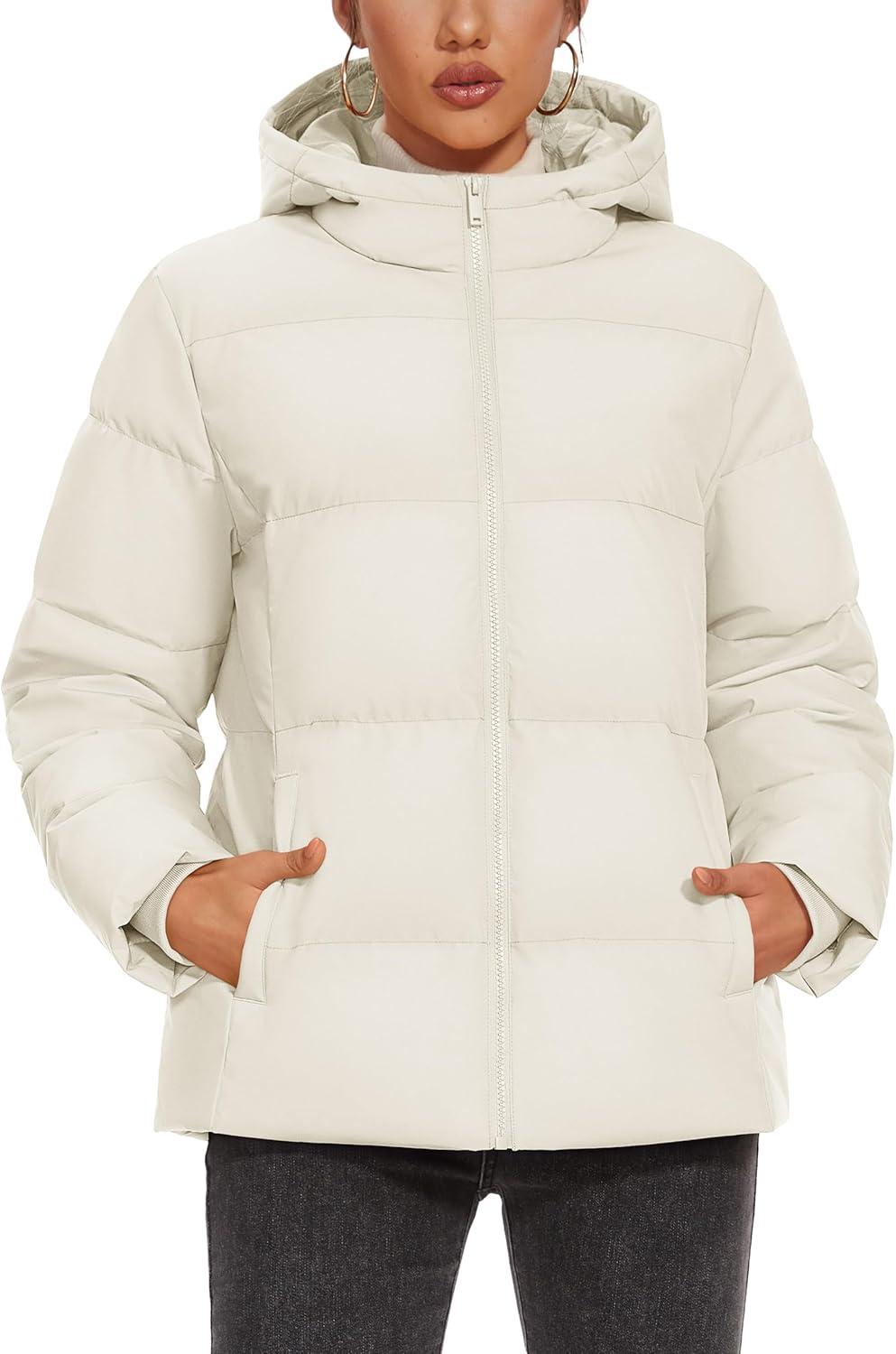 MAGCOMSEN Women’s Down Puffer Jacket with Hood Lightweight Thermal Quilted Coat with Pockets Zip-up Winter Warm Jacket(White)