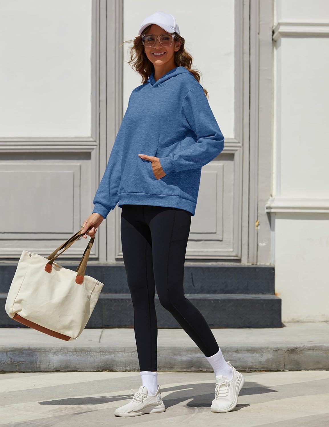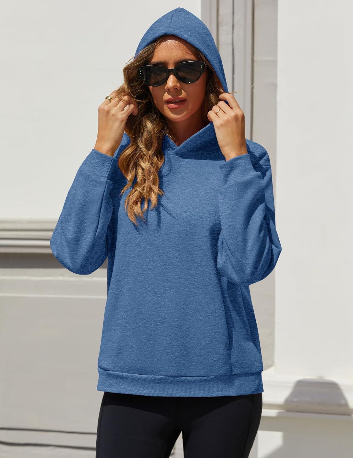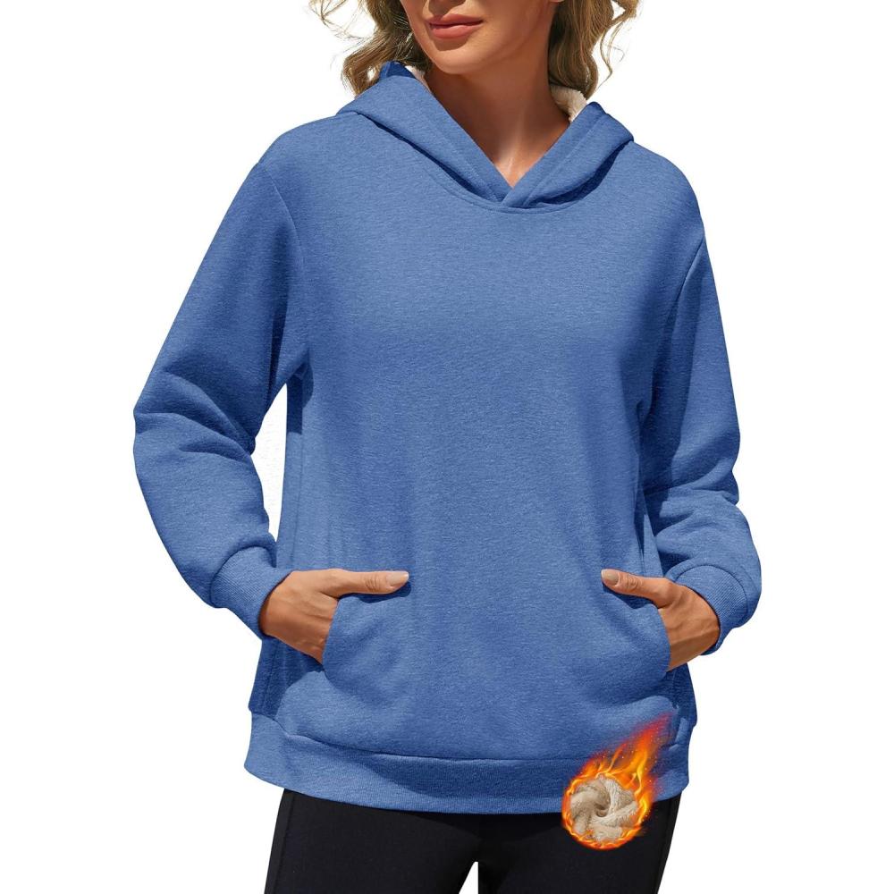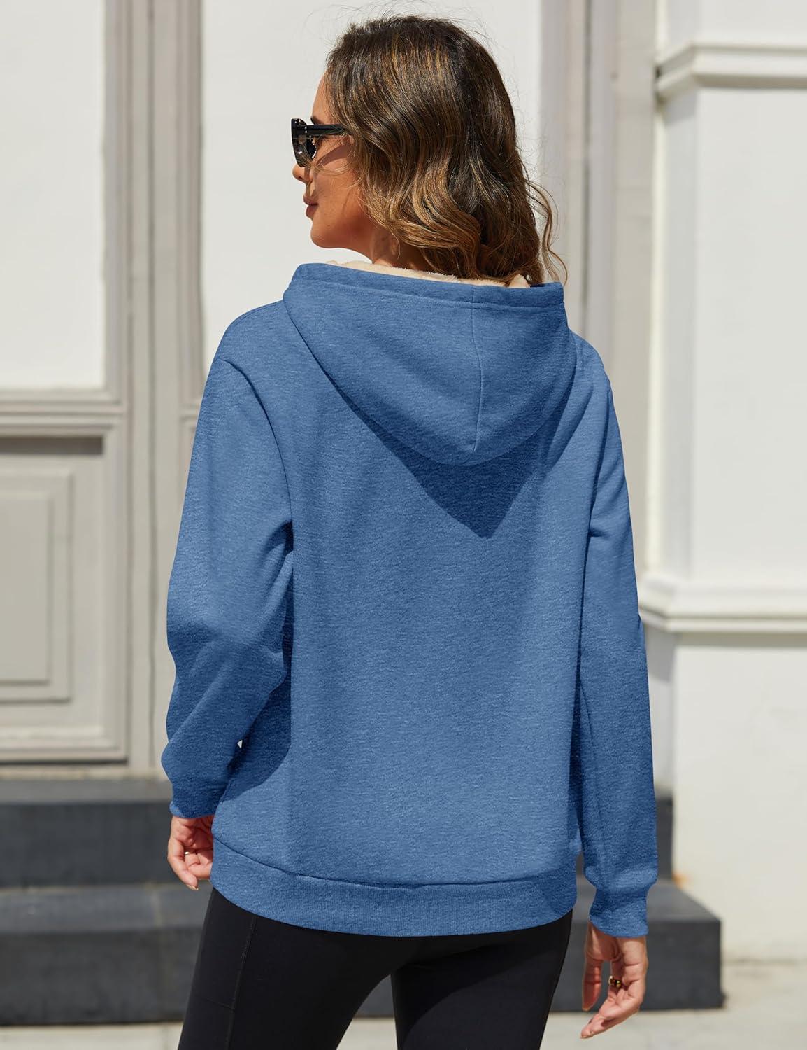 MAGCOMSEN Womens Fleece Hoodie Pullover Warm Long Sleeve Shirts Hooded Sweatshirt with Pockets Casual Loose Fit(Grey Blue)