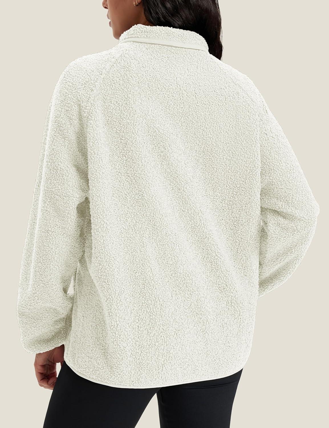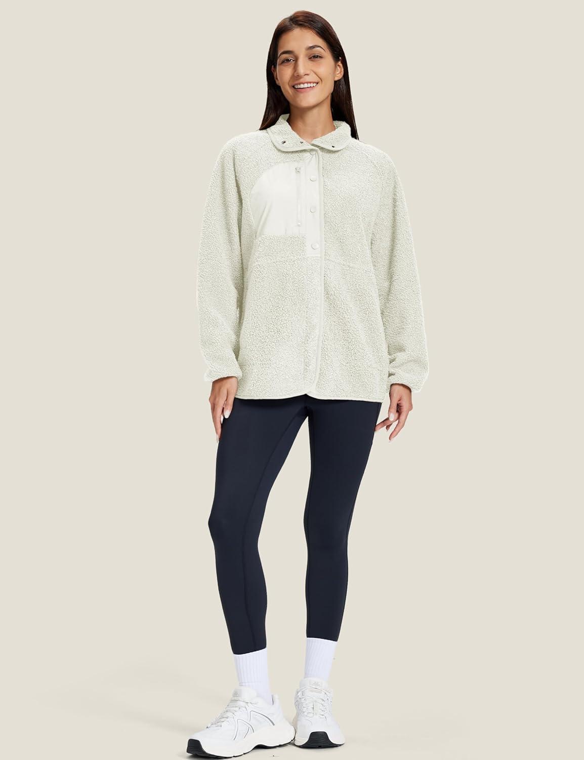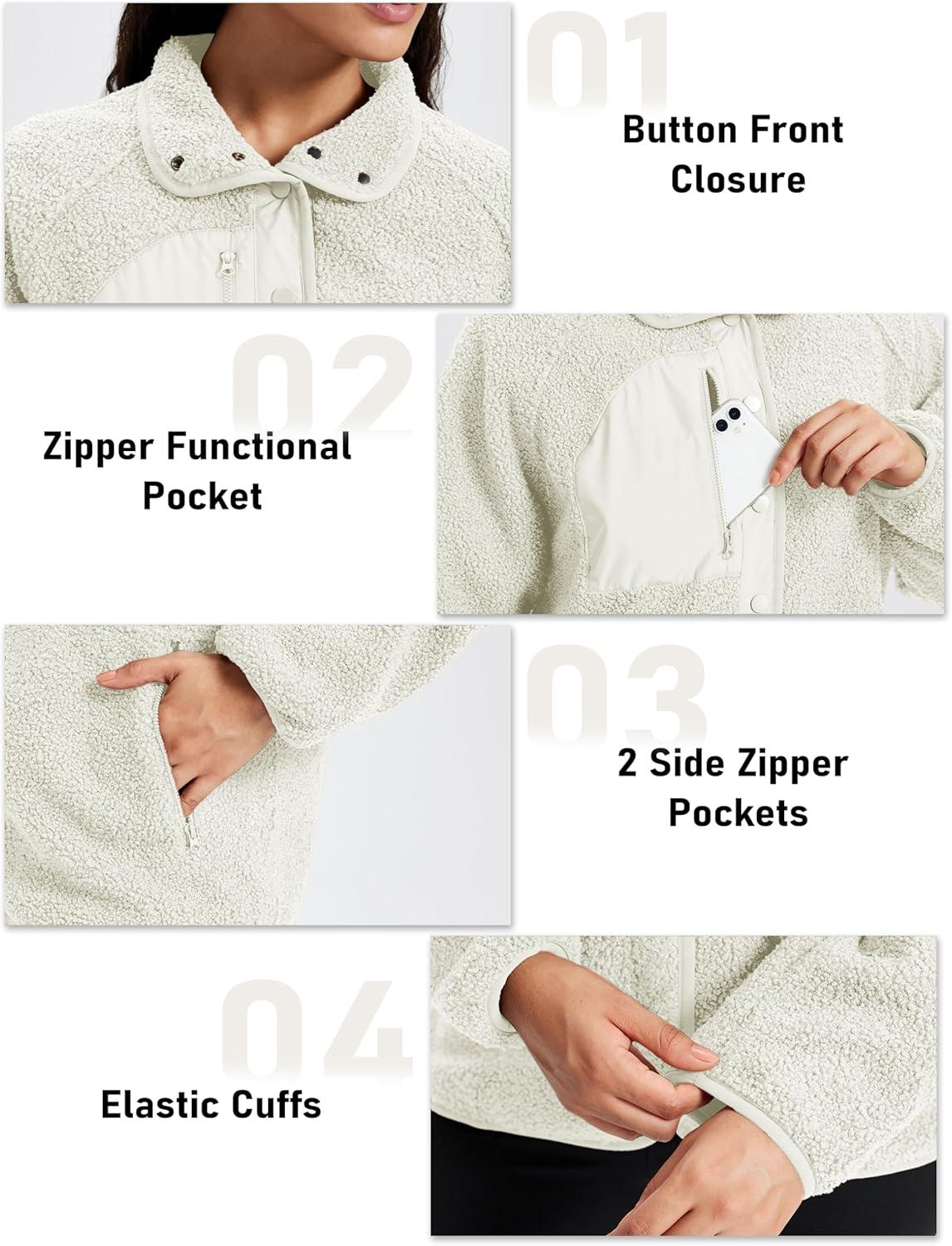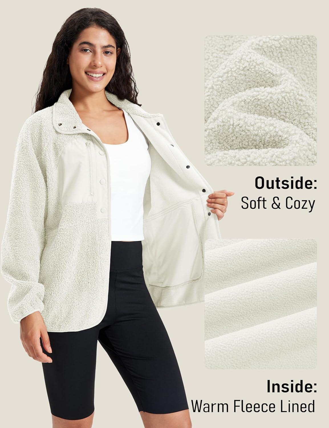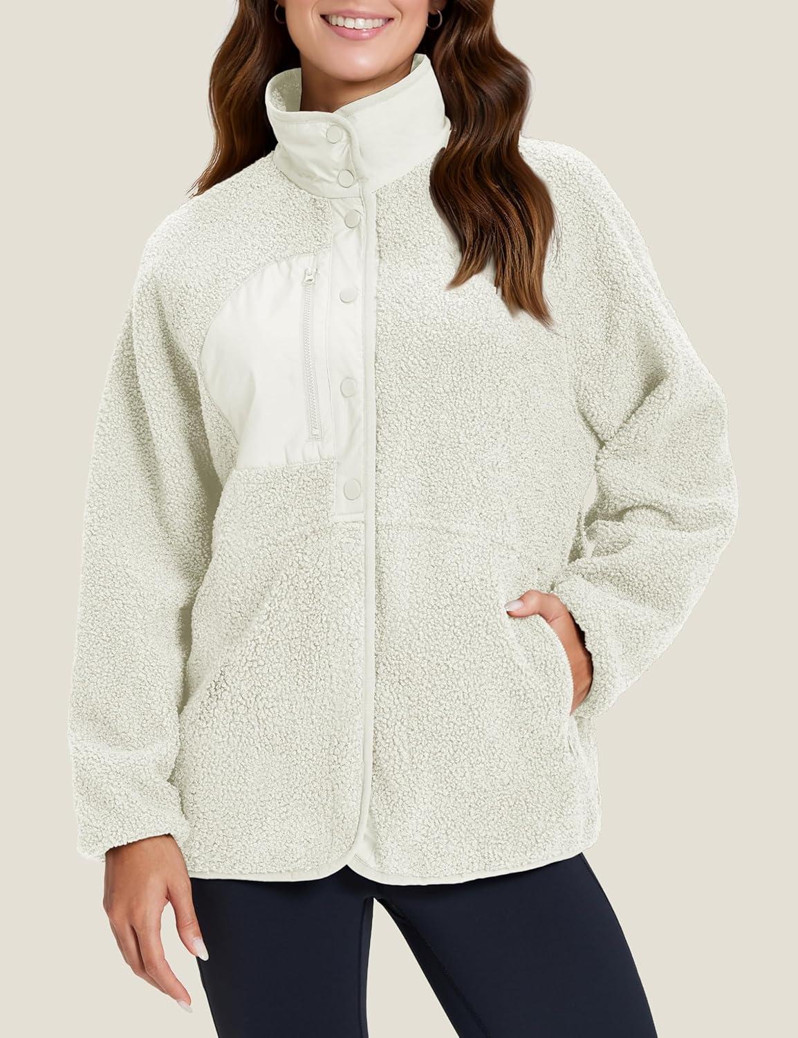 MAGCOMSEN Women’s Fleece Jackets Fuzzy Button Down Sherpa Jacket Winter Warm Coat Casual Outwear with Pockets(Beige)