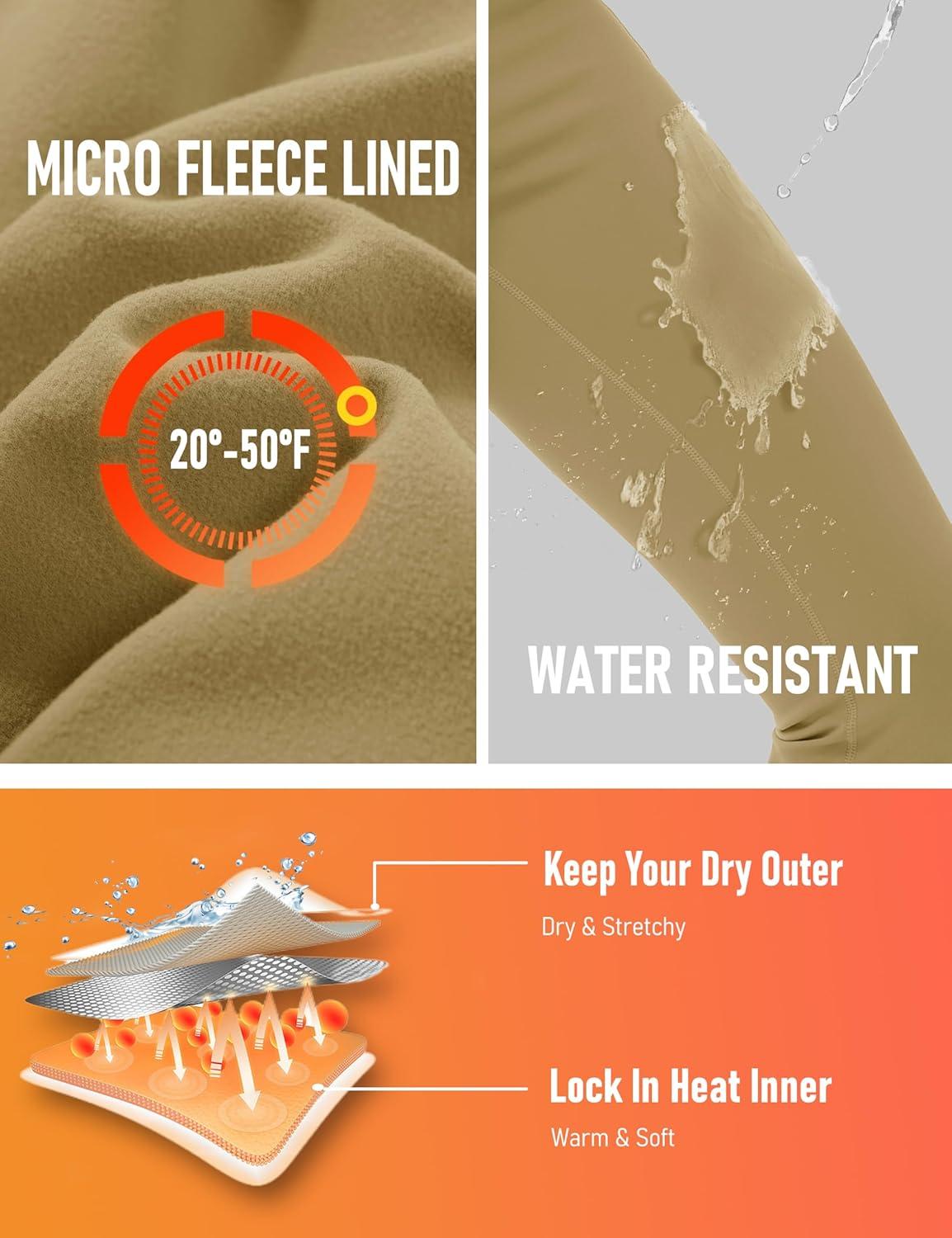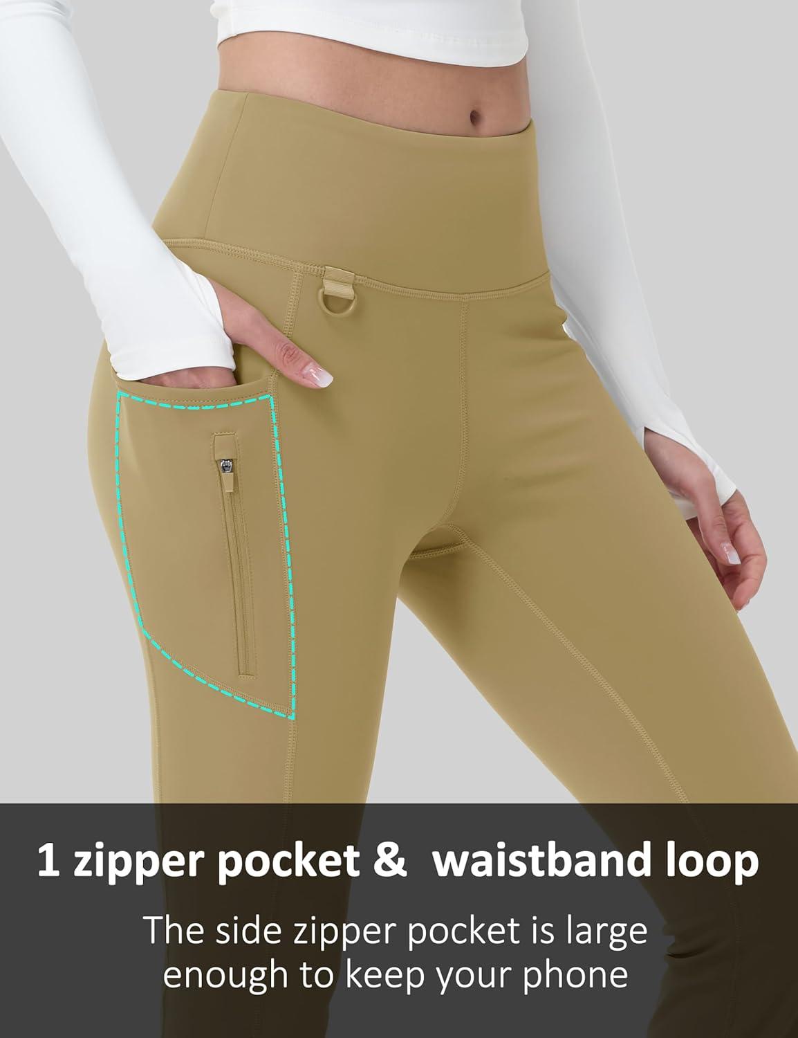 MAGCOMSEN Women’s Fleece Lined Flare Leggings Waterproof Insulated Winter Pants Warm Snow Yoga Hiking Bootcut 3 Pcokets(Light Brown)