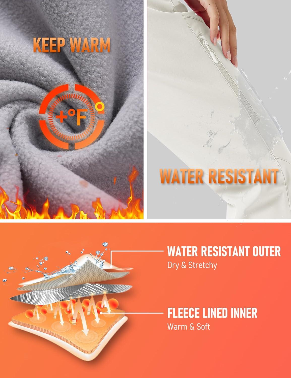 MAGCOMSEN Women’s Fleece Lined Winter Hiking Pants Waterproof Insulated Ski Snow Pants Outdoor Hunting Softshell Pants(Army Green)