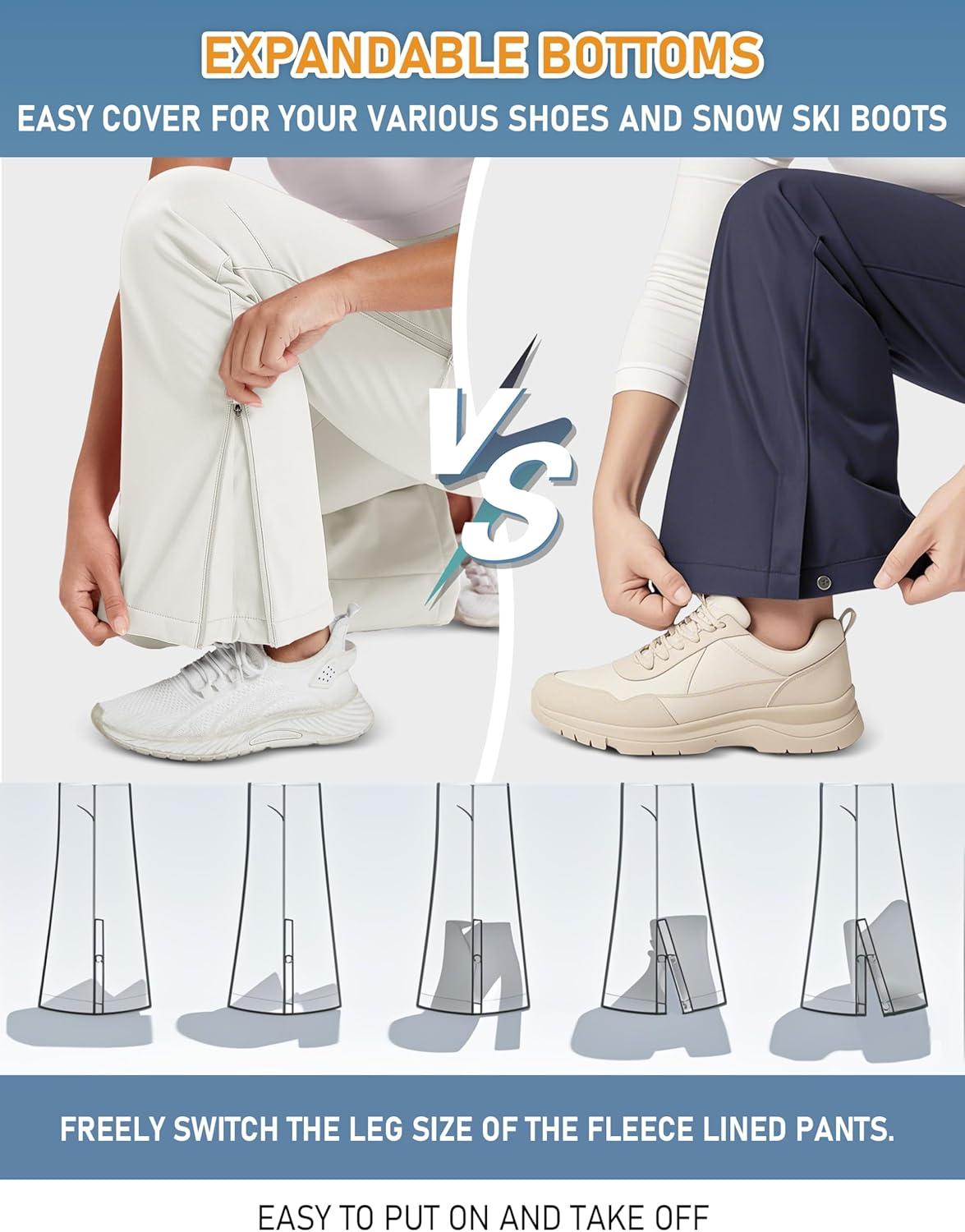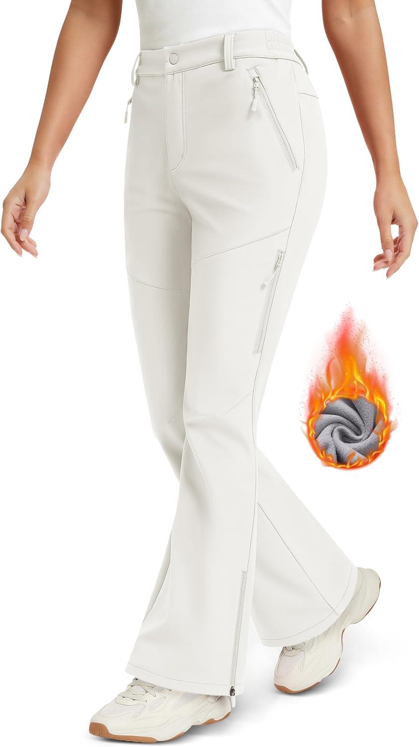 MAGCOMSEN Women’s Fleece Lined Flare Pants Waterproof Insulated Snow Ski Pants Warm Outdoor Winter Hiking Softshell(White)