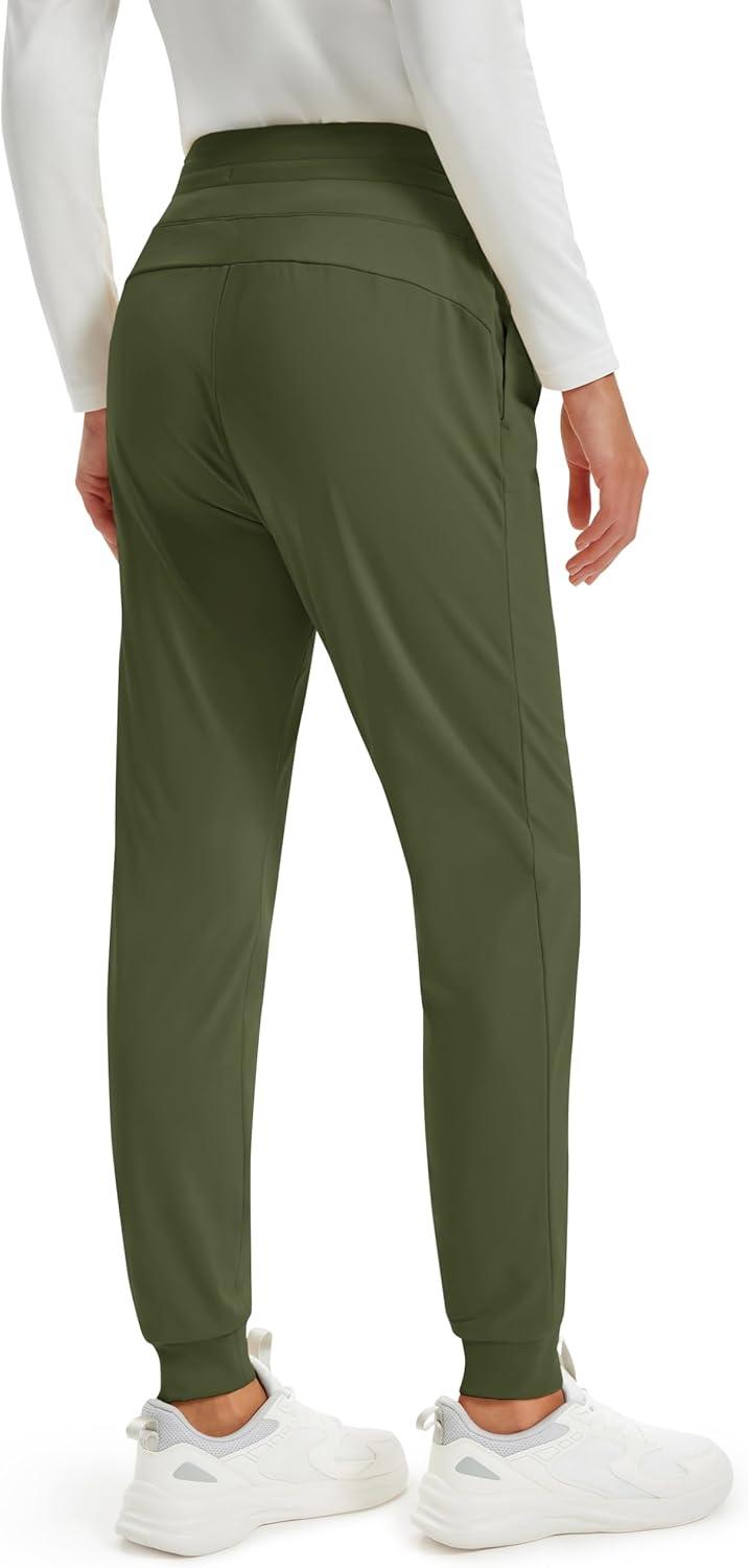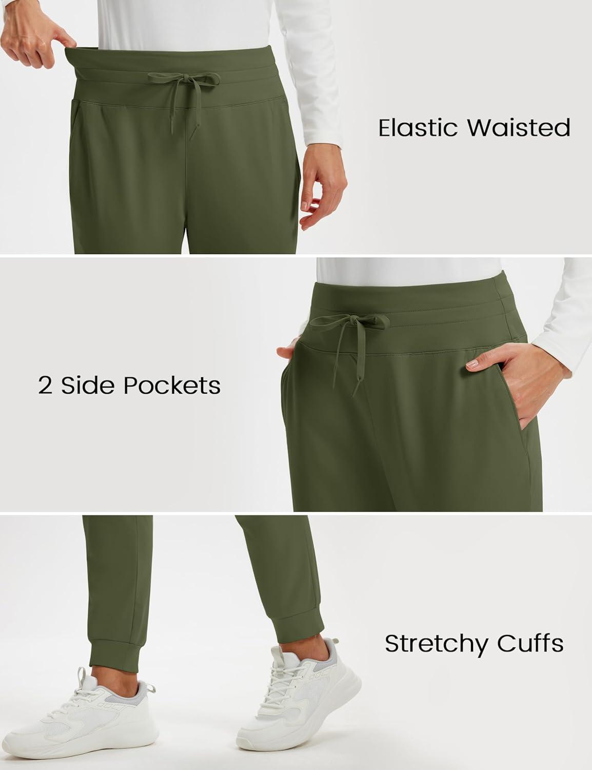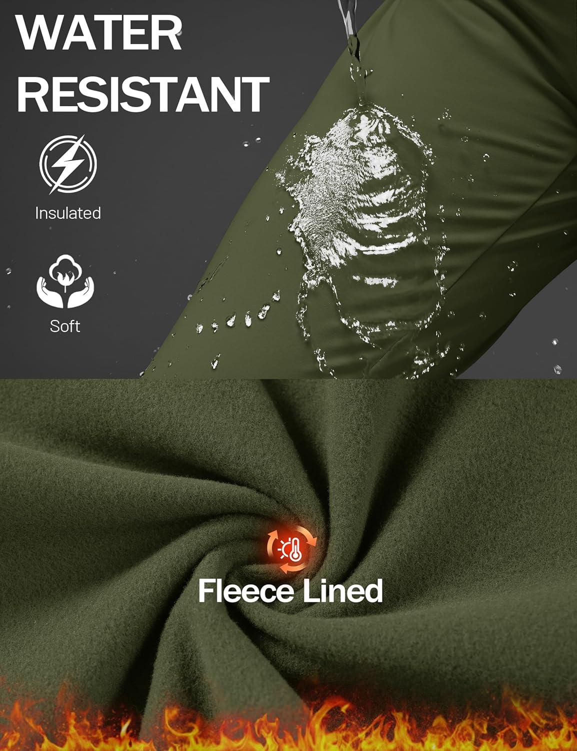 MAGCOMSEN Women’s Fleece Lined Joggers High Waisted Water Resistant Thermal Winter Hiking Running Sweatpants with Pockets(Army Green)