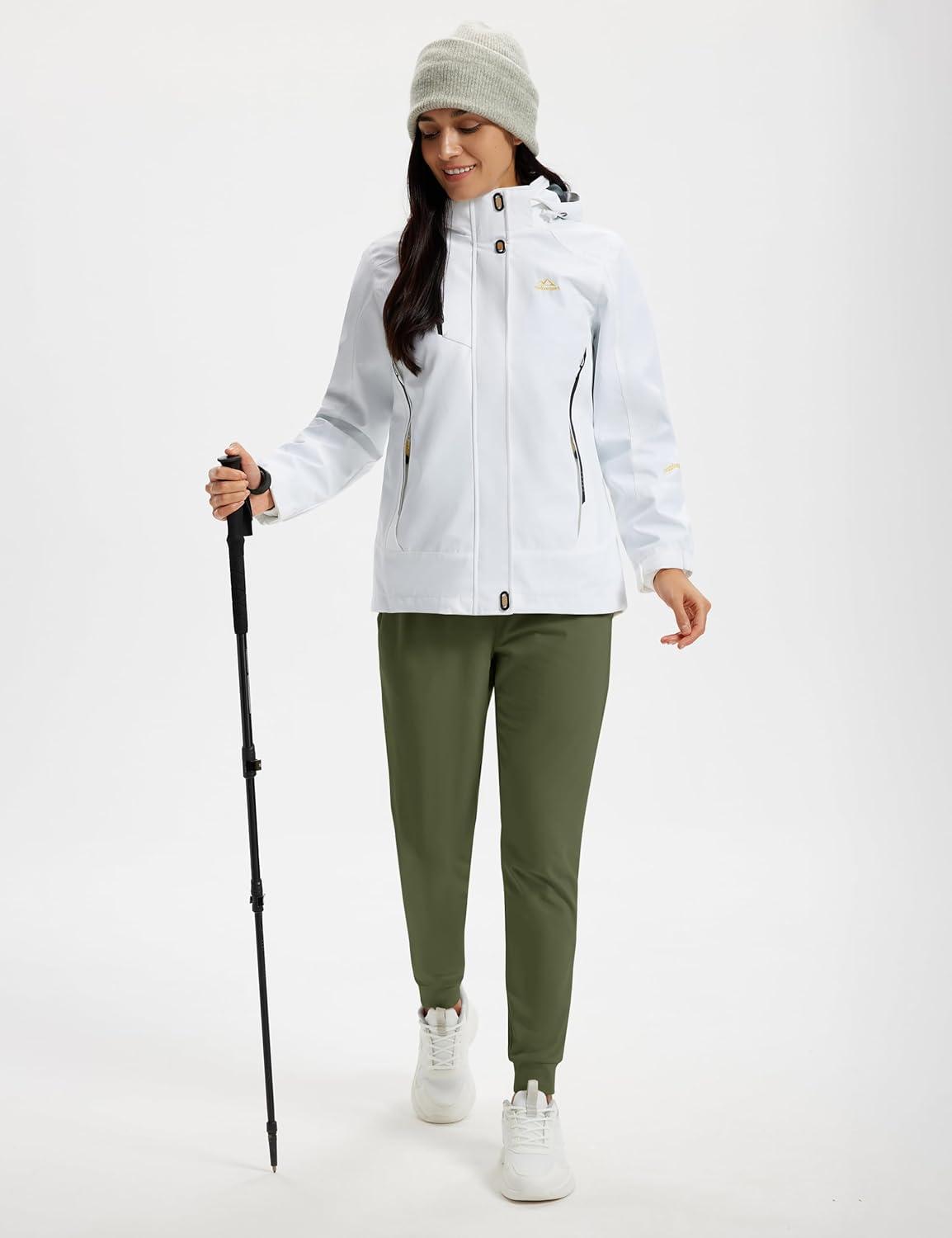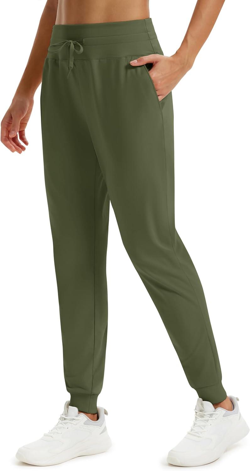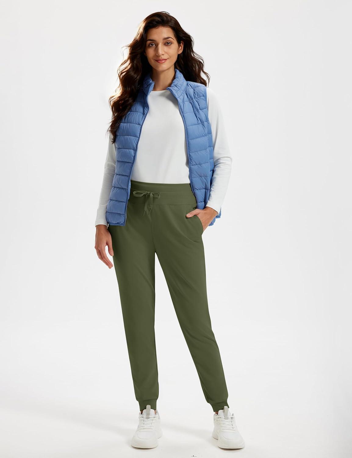 MAGCOMSEN Women’s Fleece Lined Joggers High Waisted Water Resistant Thermal Winter Hiking Running Sweatpants with Pockets(Army Green)