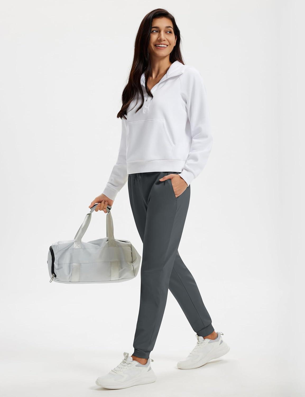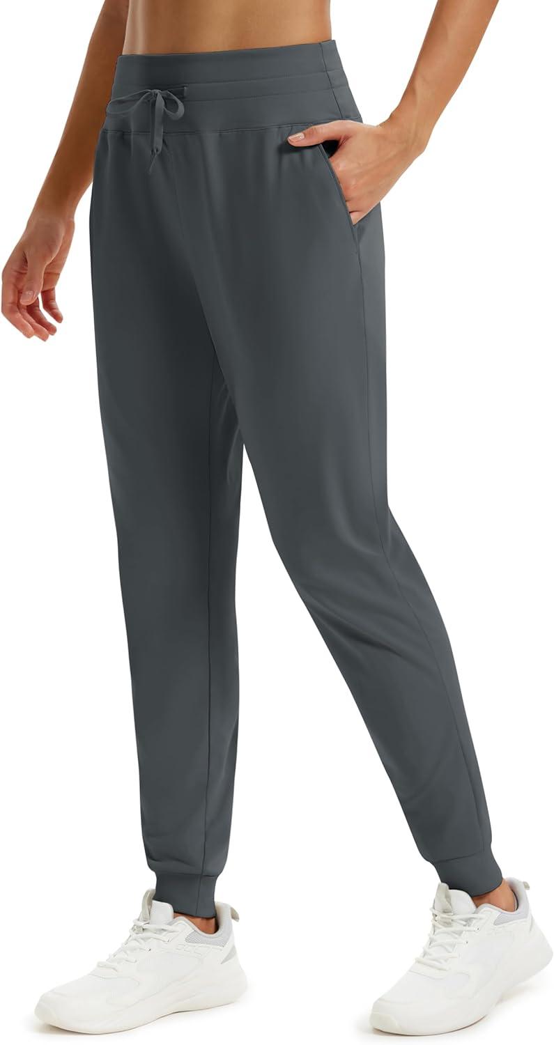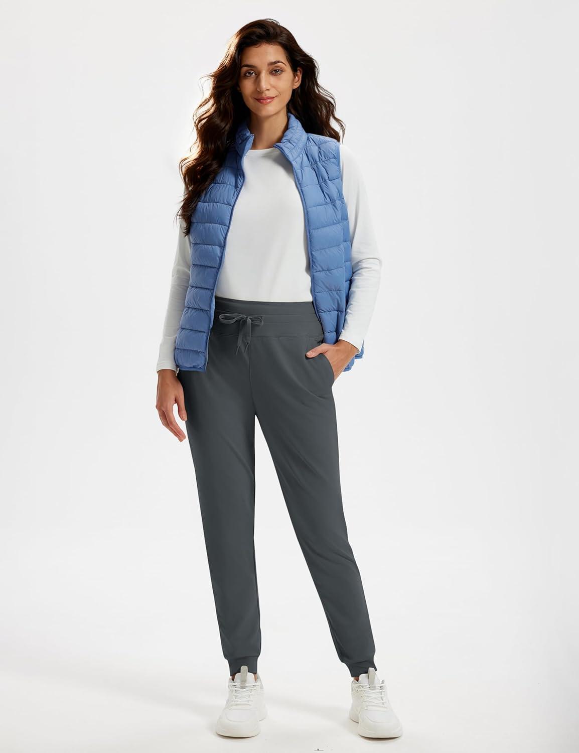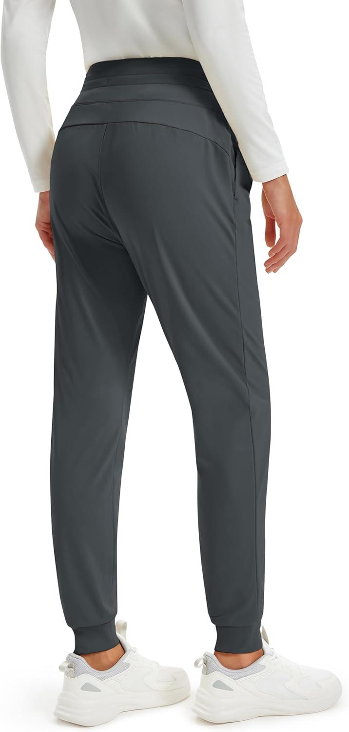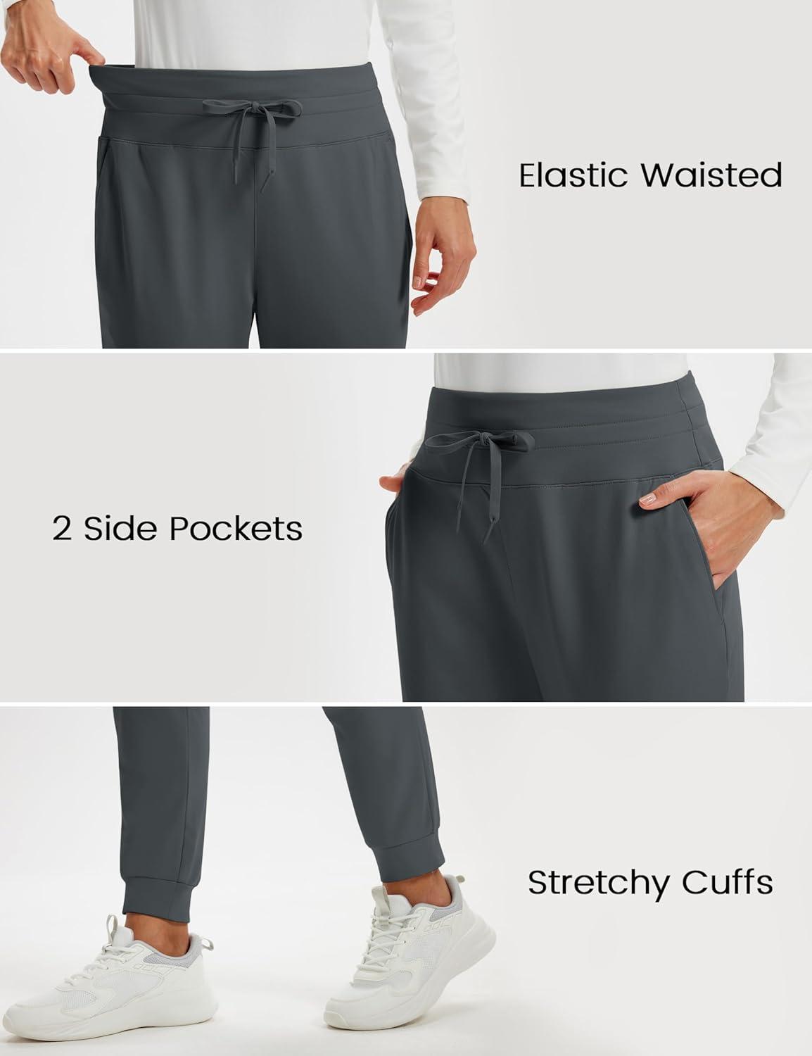 MAGCOMSEN Women’s Fleece Lined Joggers High Waisted Water Resistant Thermal Winter Hiking Running Sweatpants with Pockets(Dark Grey)
