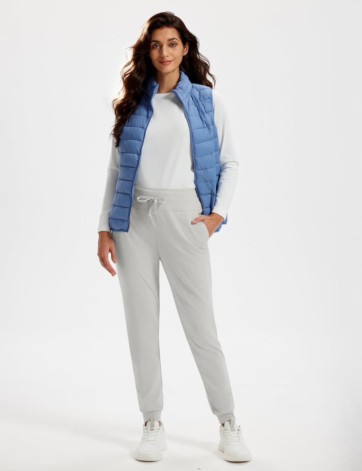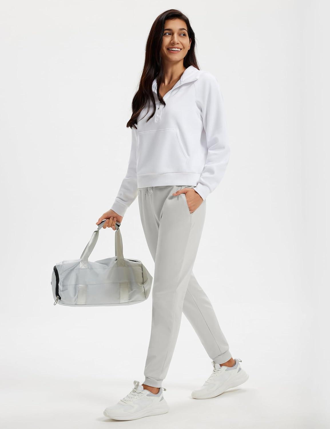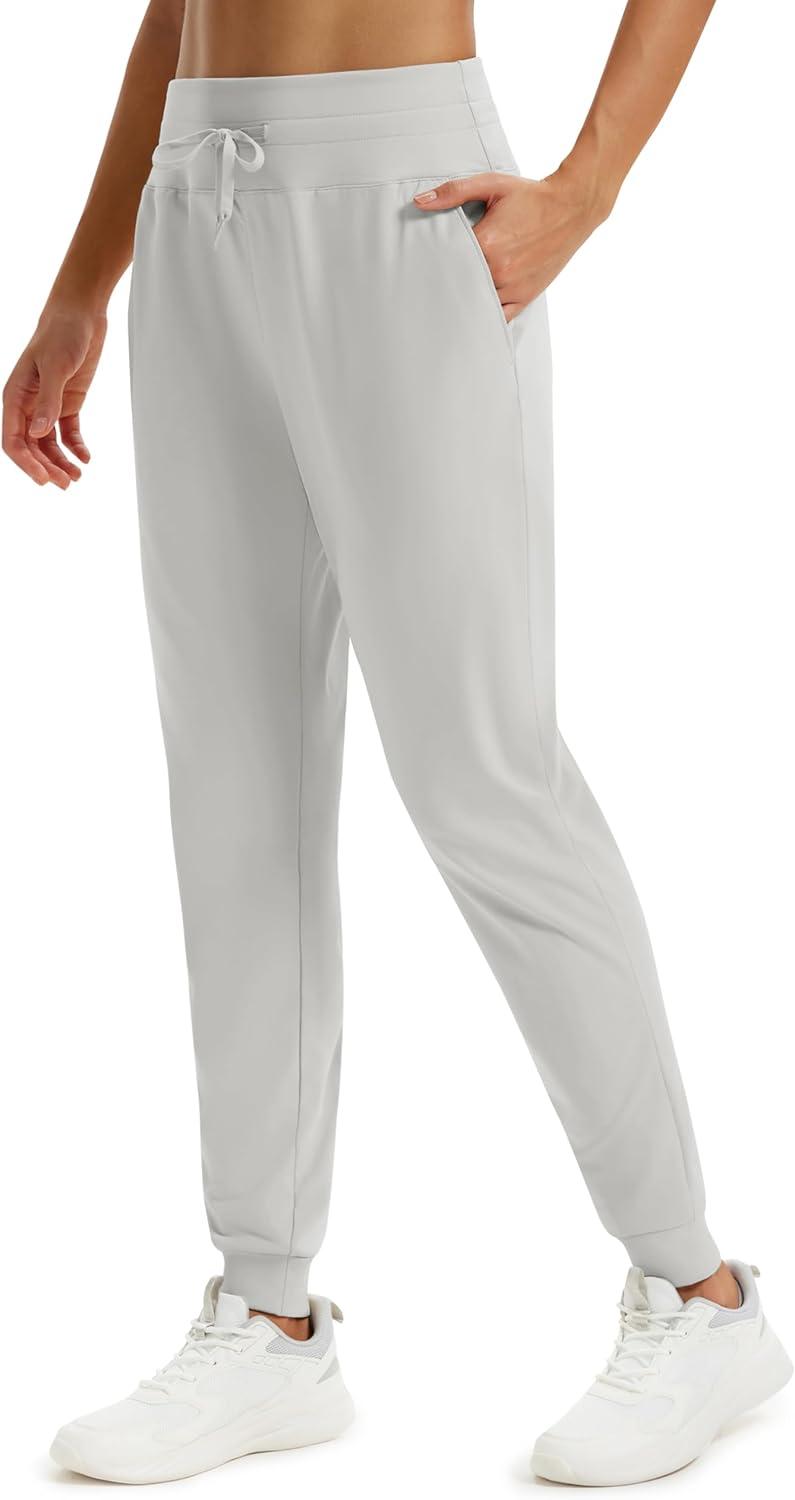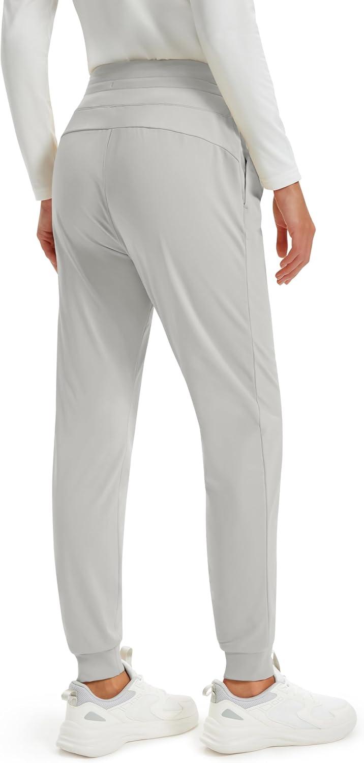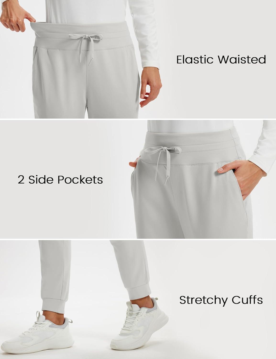 MAGCOMSEN Women’s Fleece Lined Joggers High Waisted Water Resistant Thermal Winter Hiking Running Sweatpants with Pockets(Light Grey)