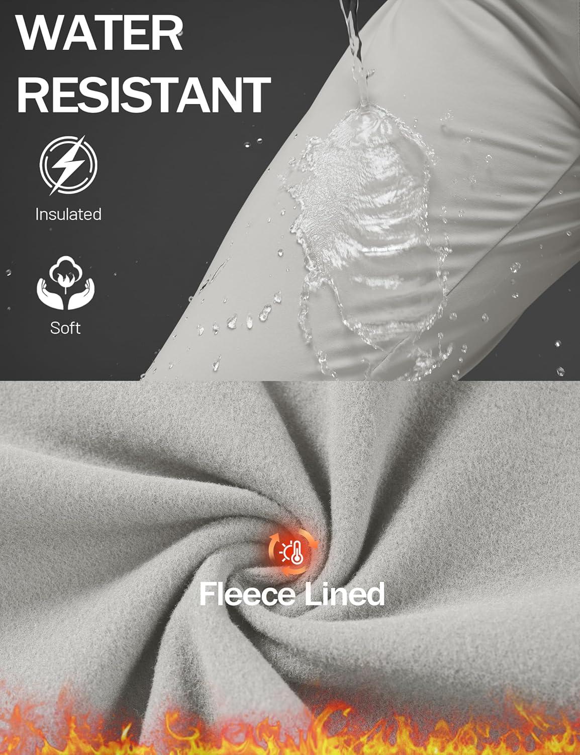 MAGCOMSEN Women’s Fleece Lined Joggers High Waisted Water Resistant Thermal Winter Hiking Running Sweatpants with Pockets(Light Khaki)
