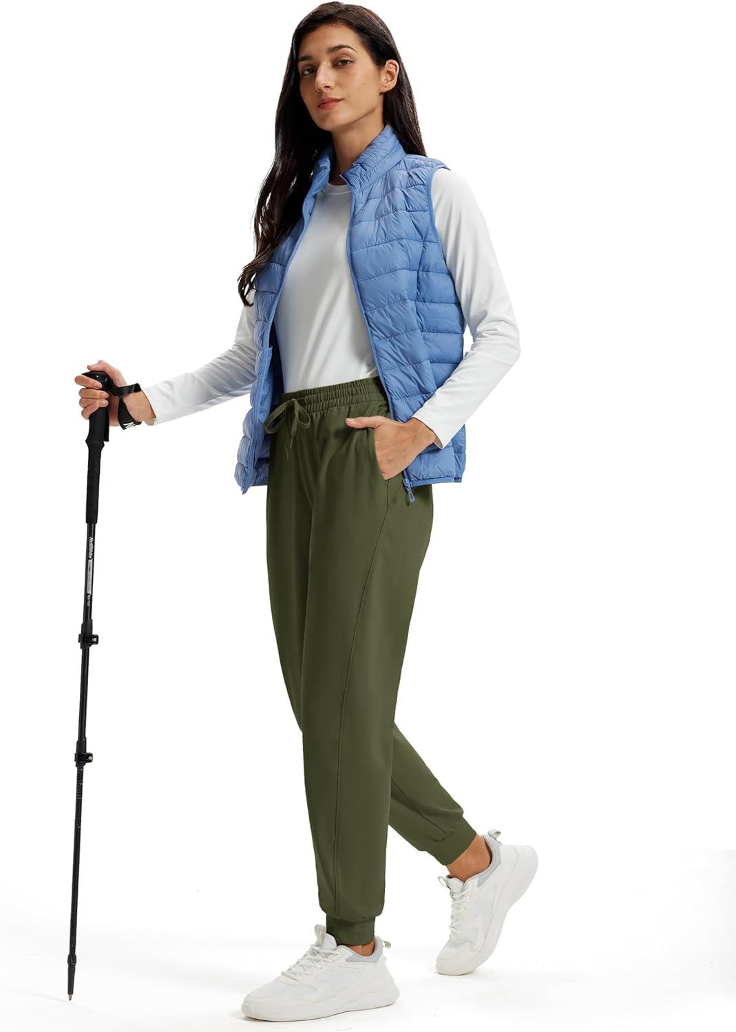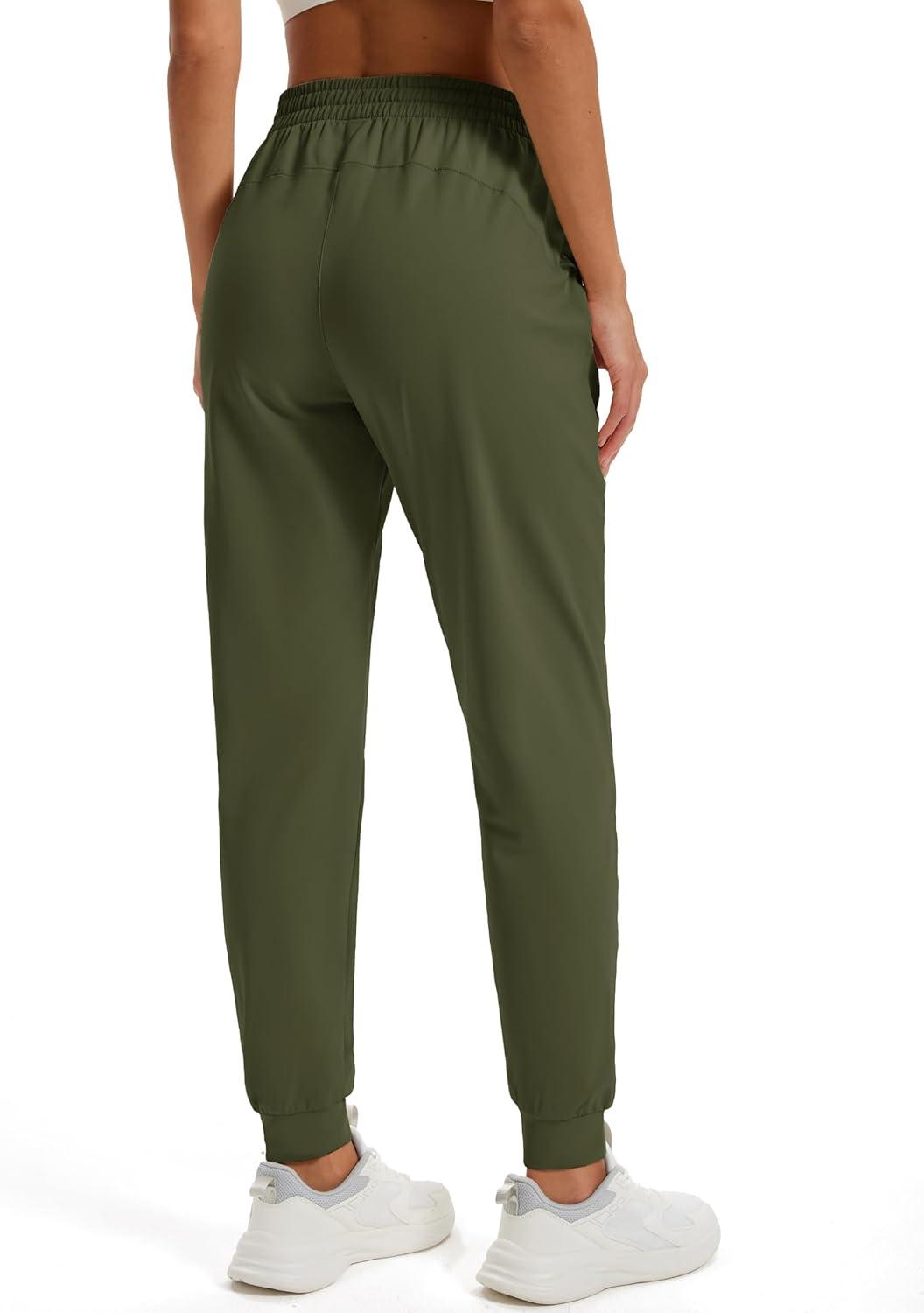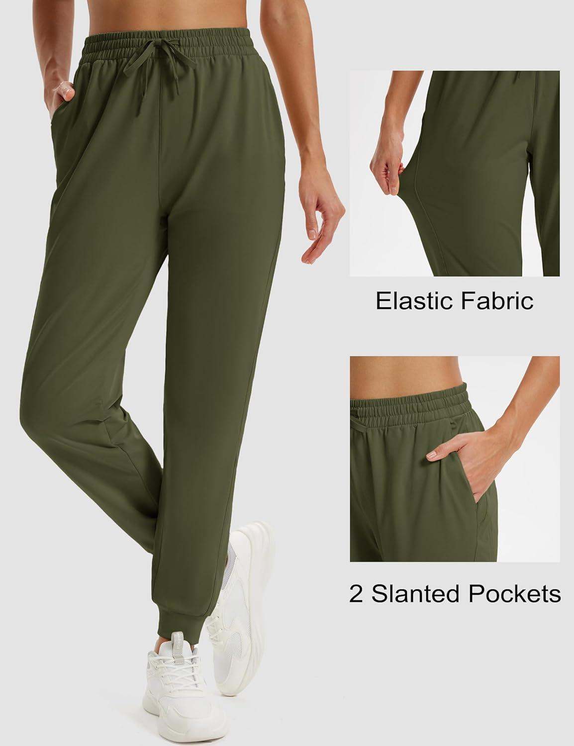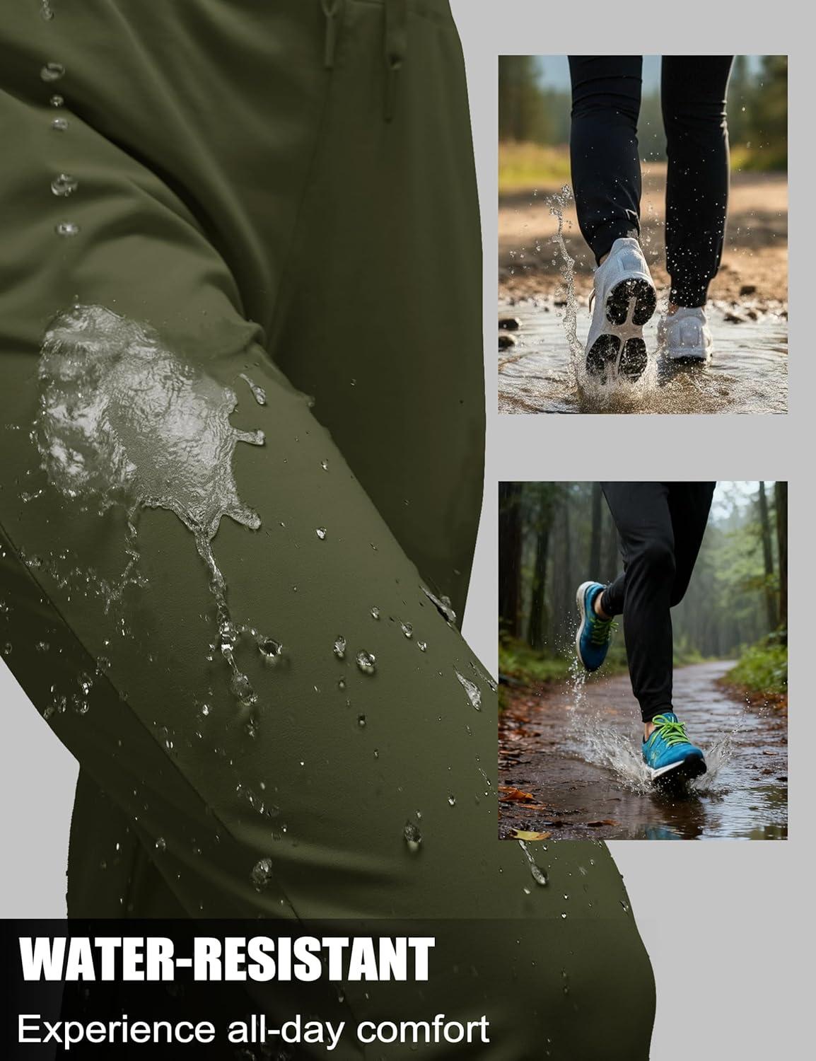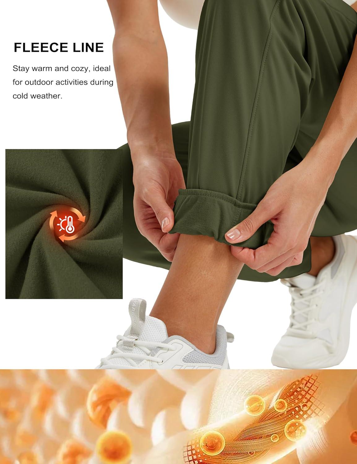 MAGCOMSEN Women’s Fleece Lined Joggers Waterproof Thermal Winter Sweatpants Insulated Hiking Running Snow Pants Pockets(Armygreen)