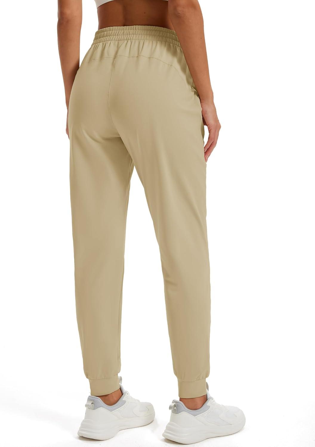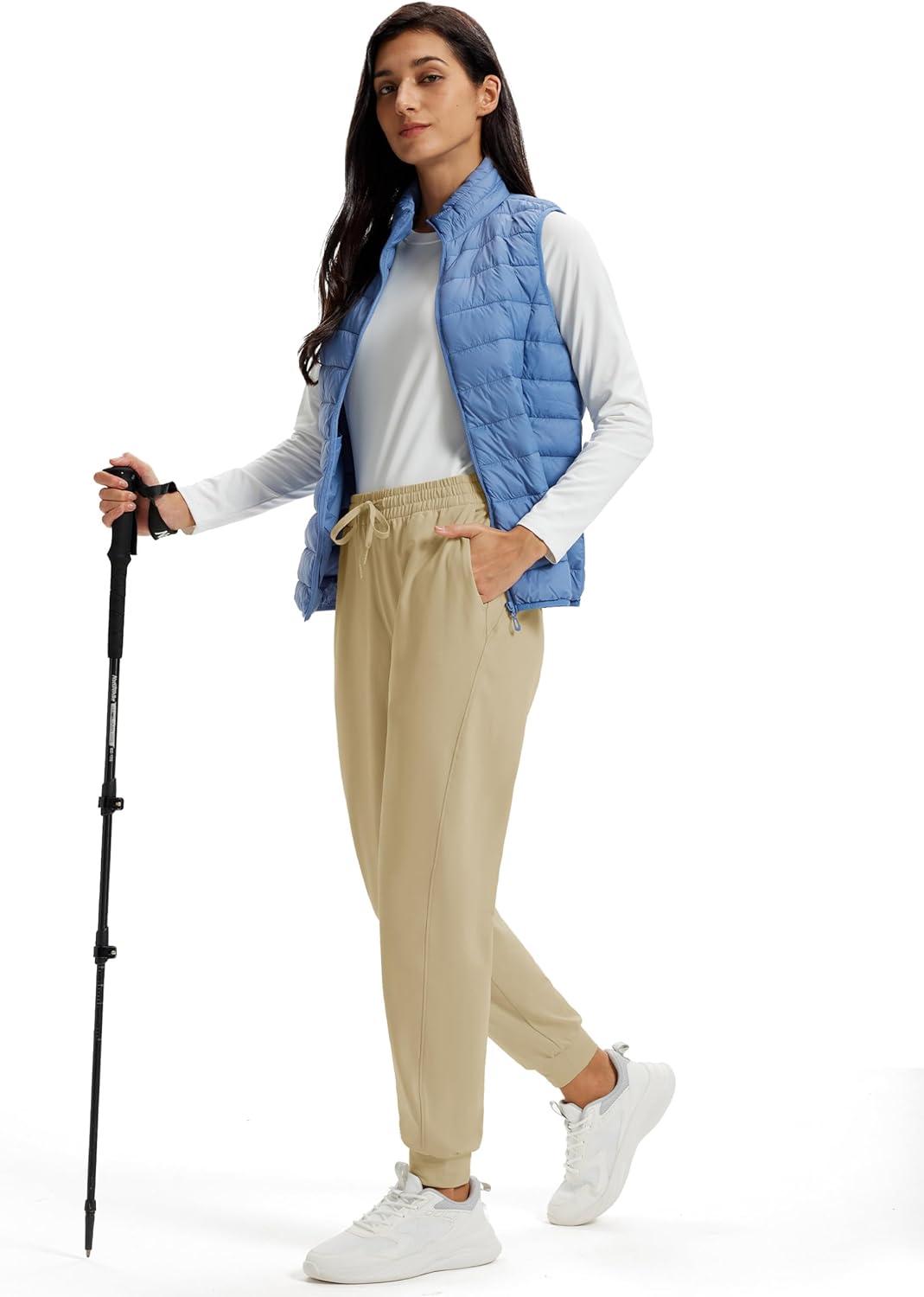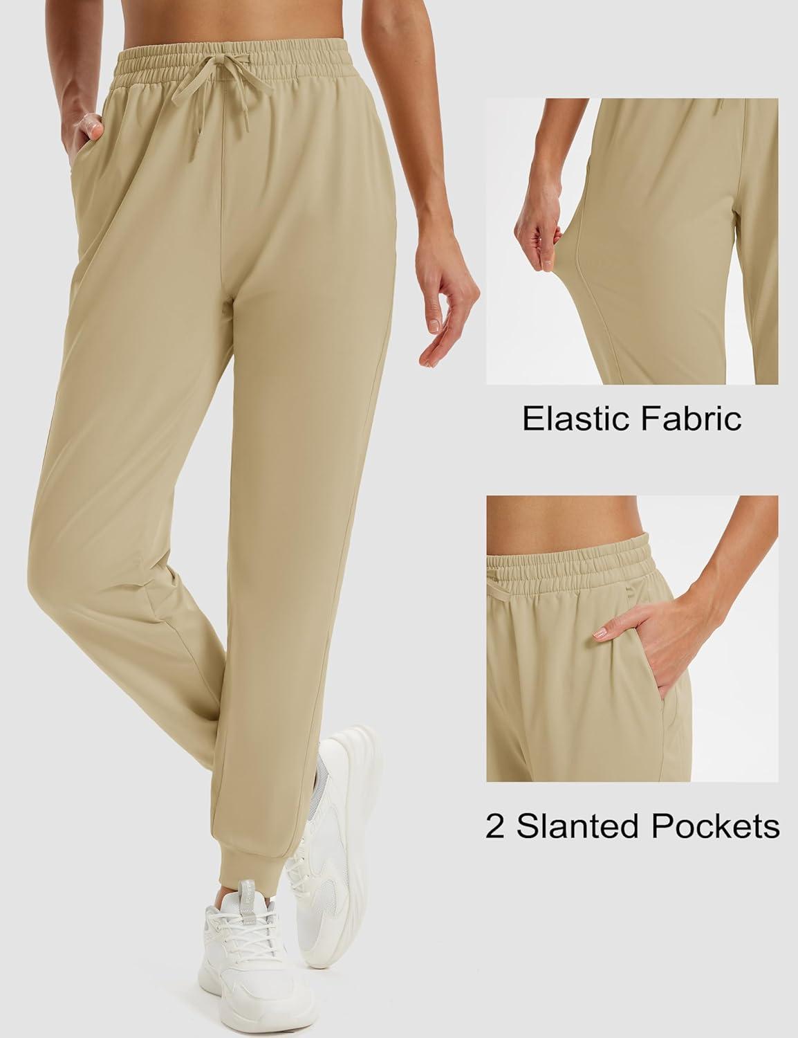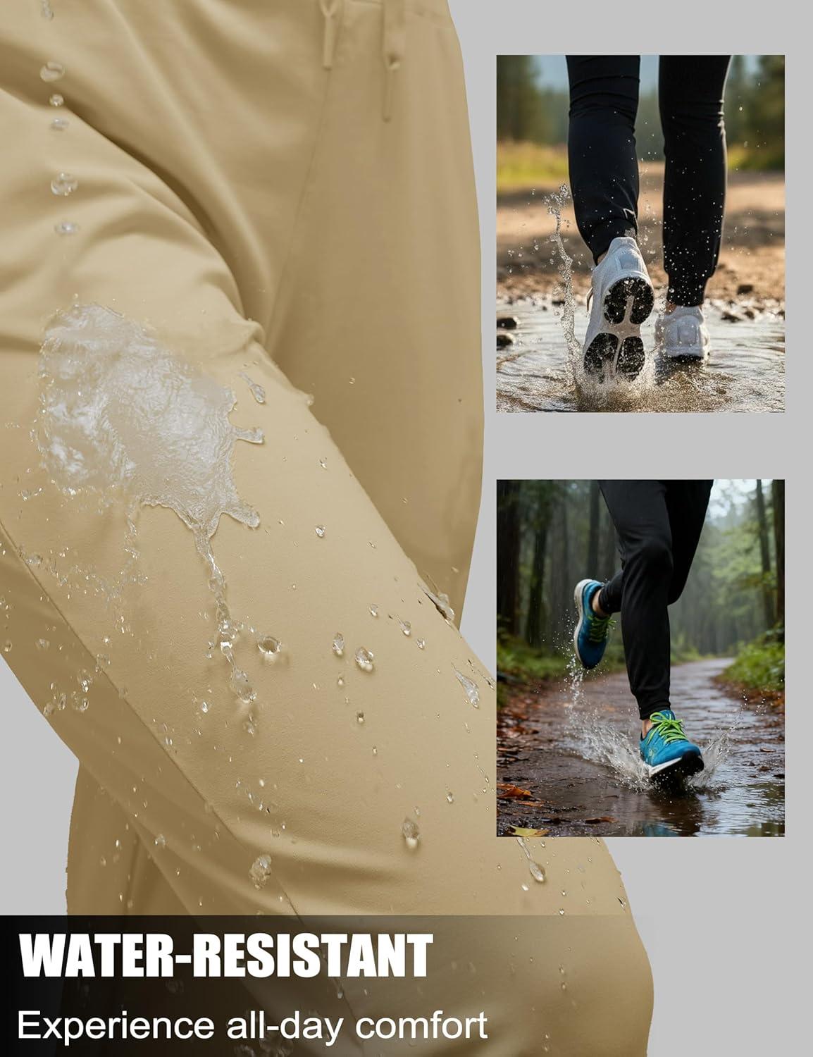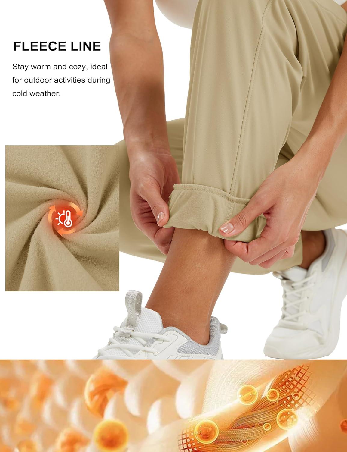 MAGCOMSEN Women’s Fleece Lined Joggers Waterproof Thermal Winter Sweatpants Insulated Hiking Running Snow Pants Pockets(Light Khaki)