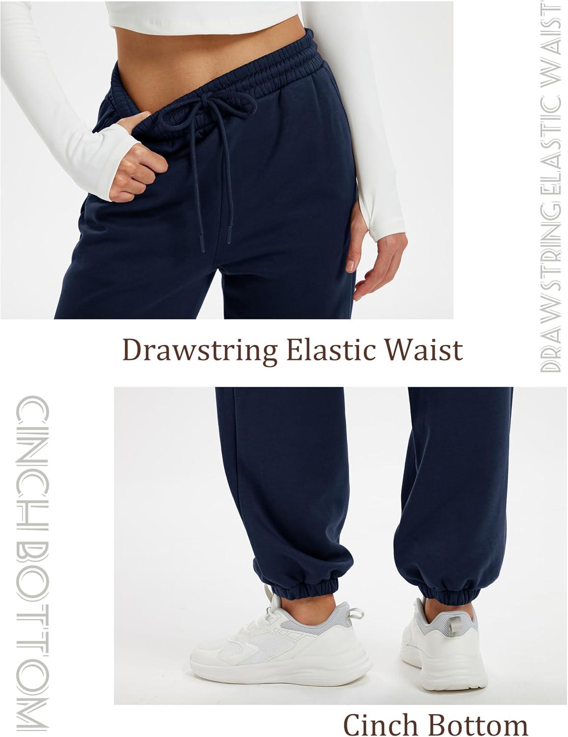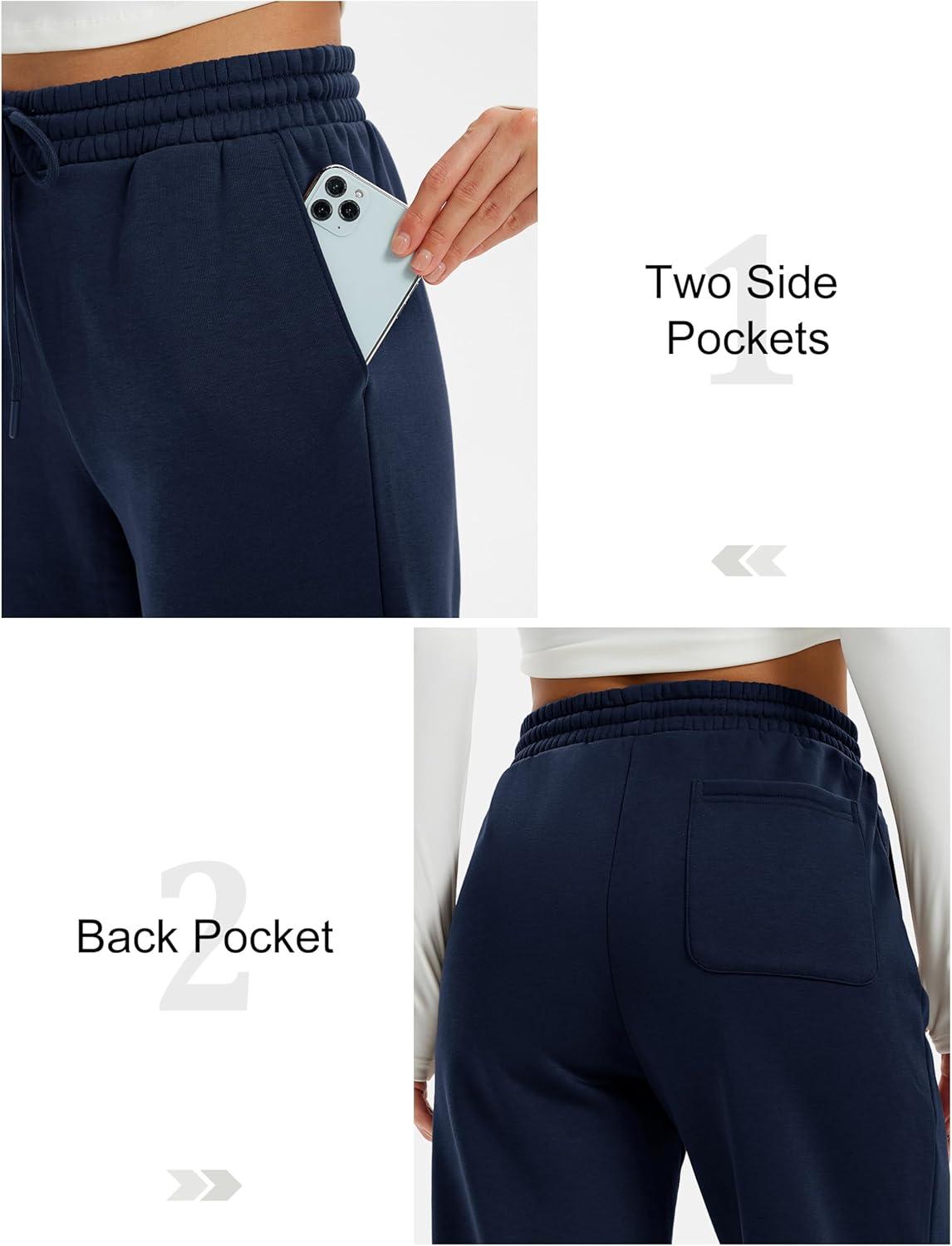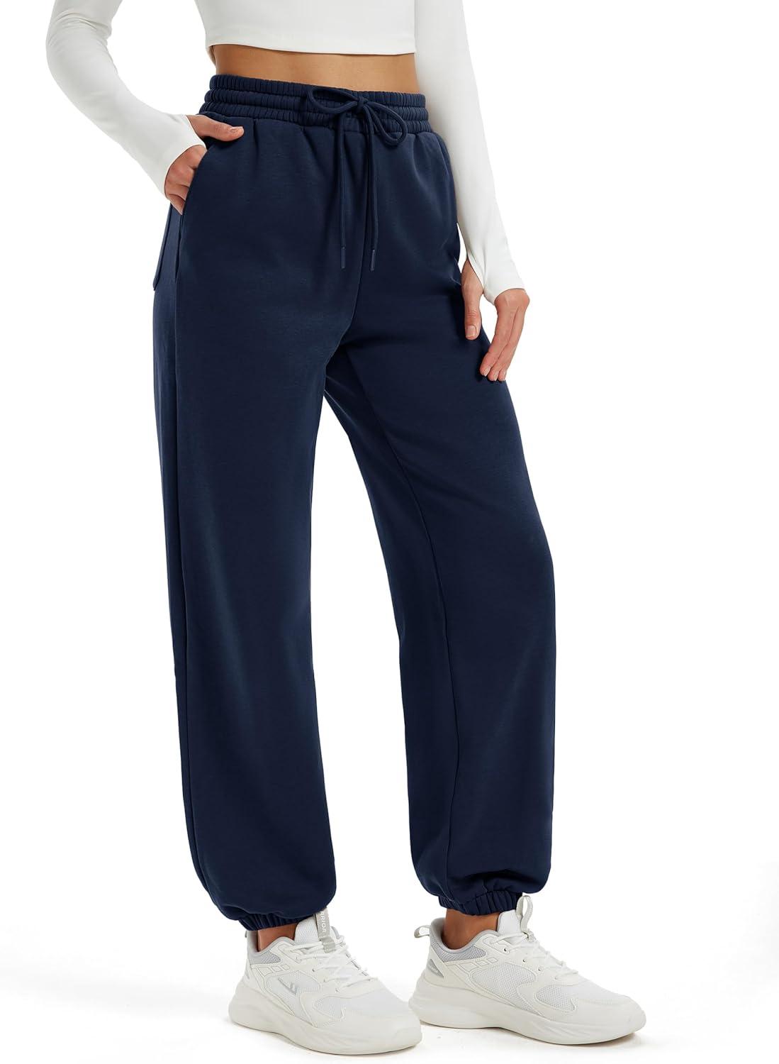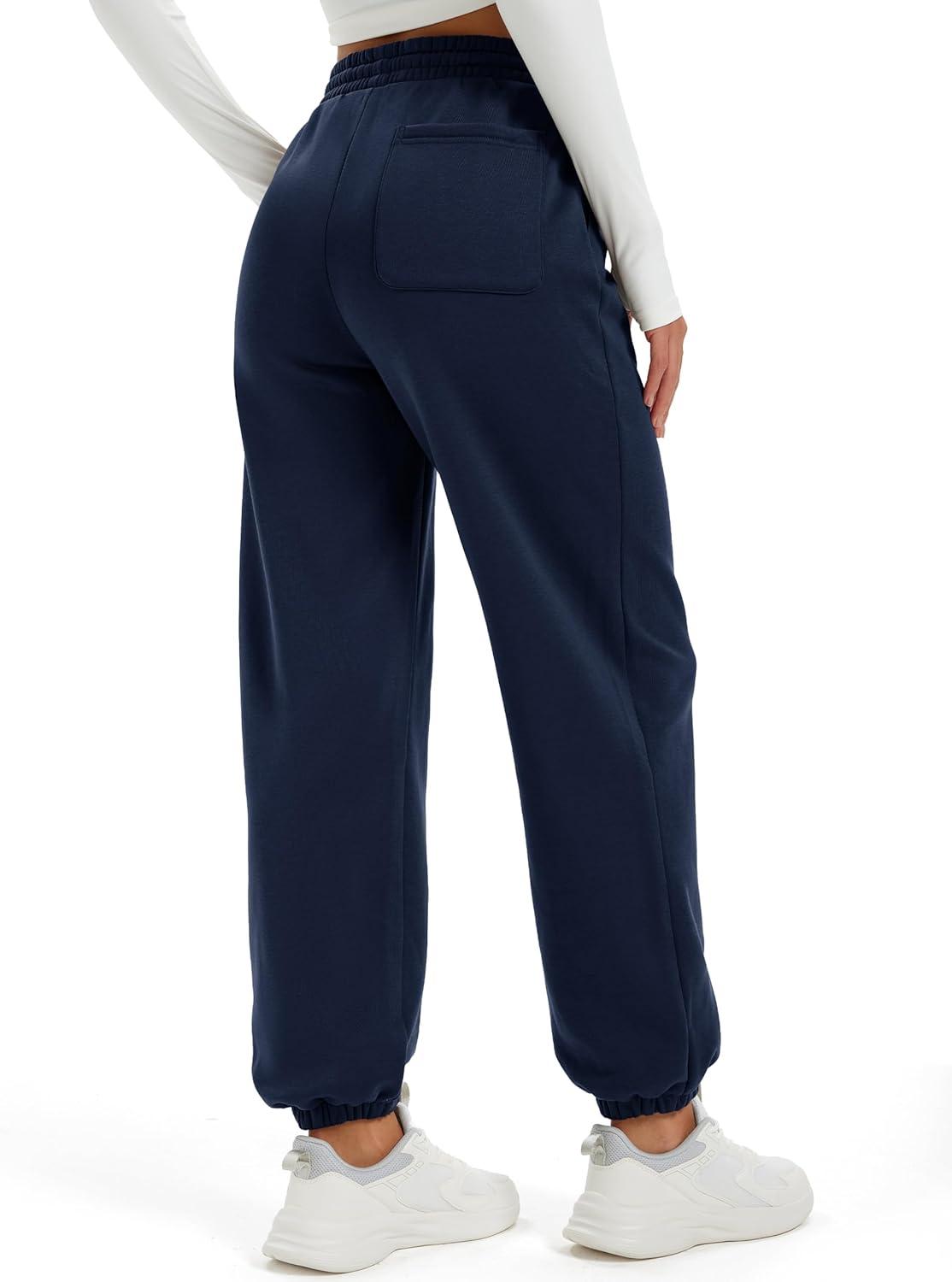 MAGCOMSEN Women’s Fleece Lined Joggers Winter Baggy Sweatpants with Pockets Thermal High Waisted Casual Athletic Pants(Navy)