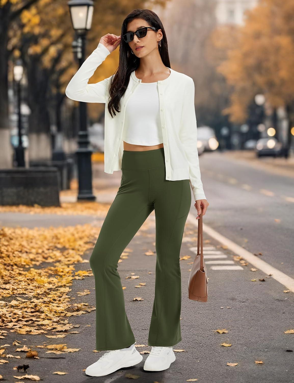 MAGCOMSEN Womens Fleece Lined Leggings Flare Pants High Waist Water Resistant Winter Thermal Casual Pants with Pockets(Army Green)