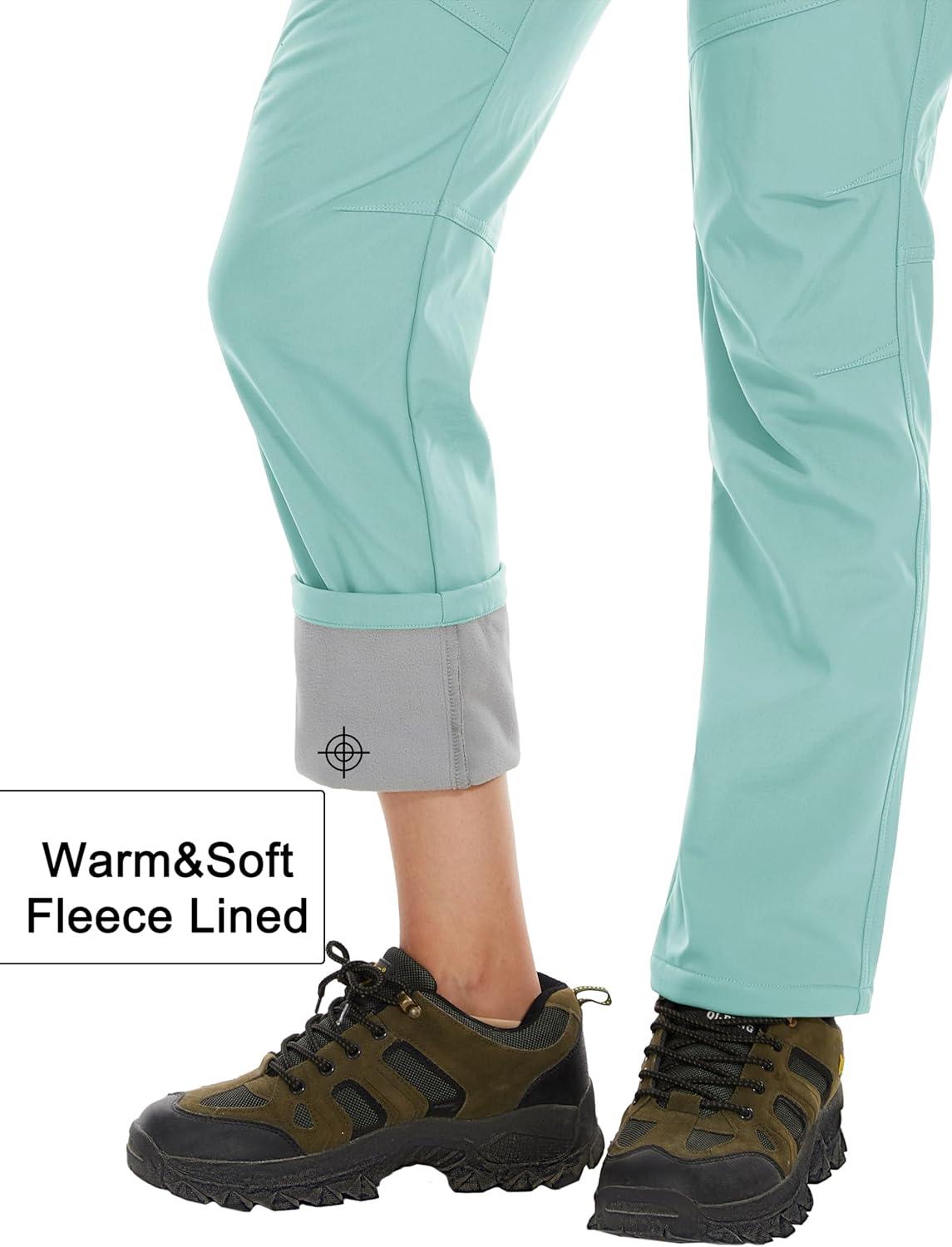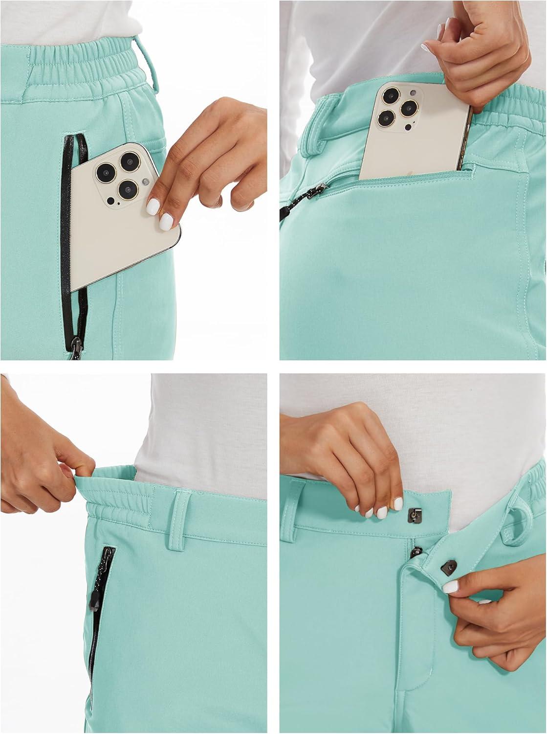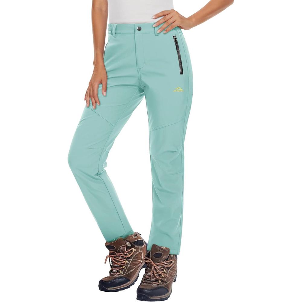 MAGCOMSEN Women’s Fleece Lined Waterproof Insulated Snow Ski Pants Winter Warm Hiking Pants Outdoor Softshell(Light Lake Blue)