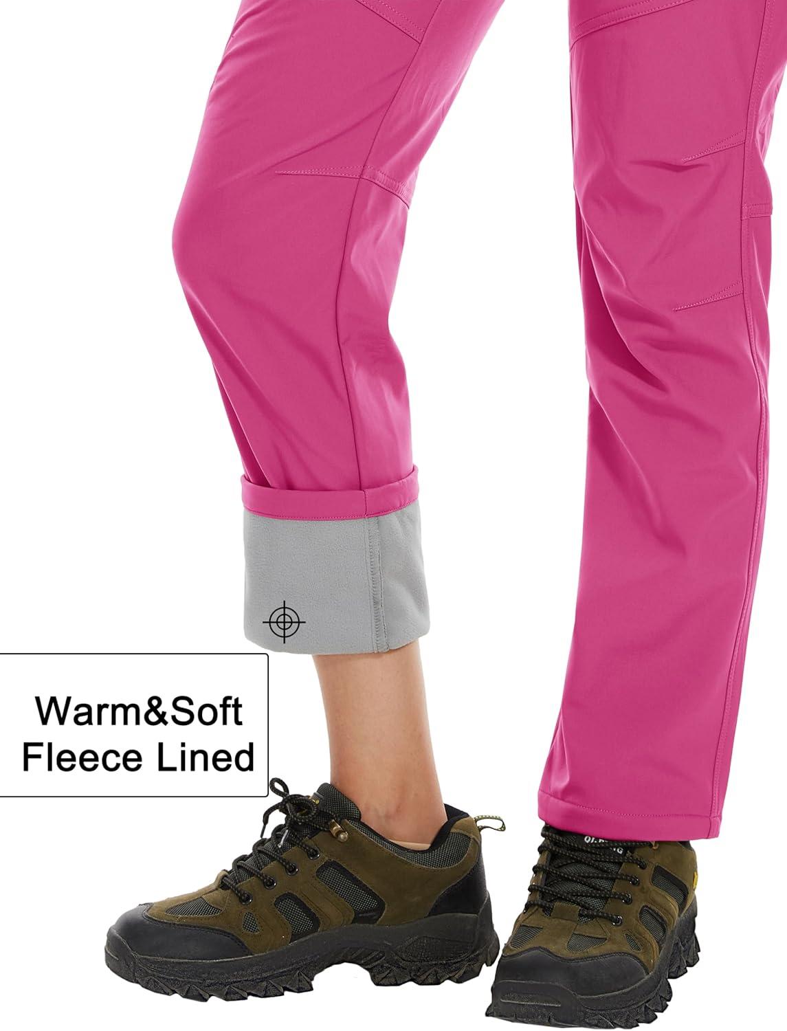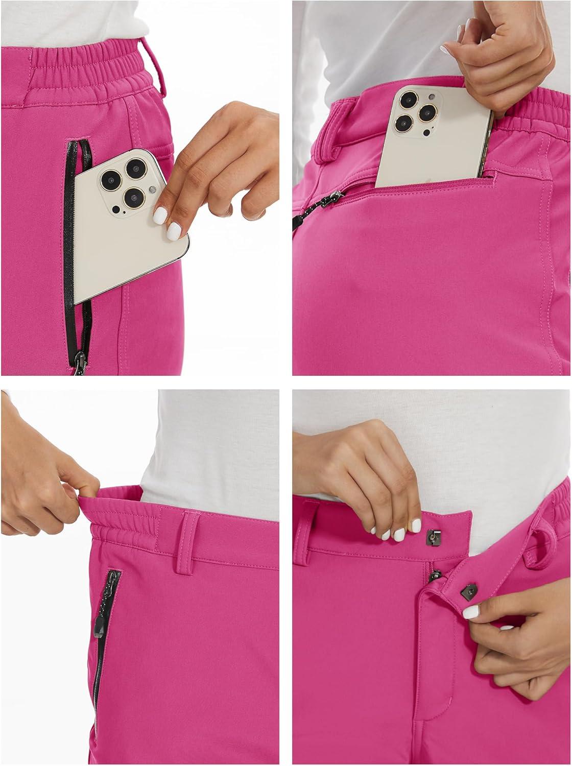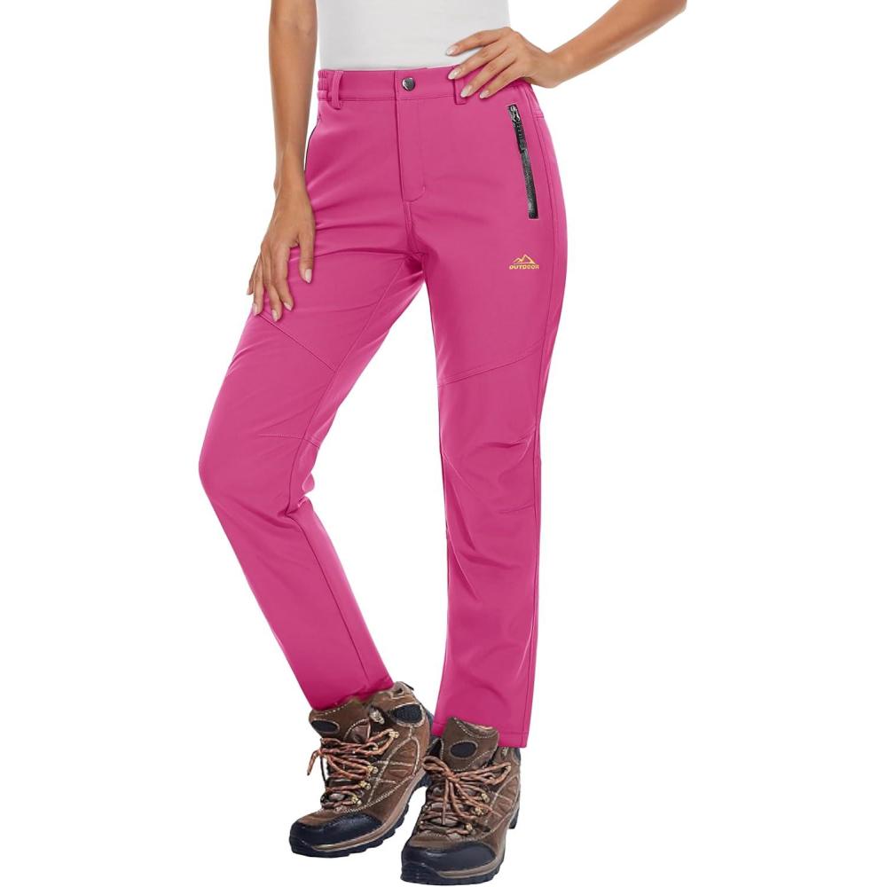 MAGCOMSEN Women’s Fleece Lined Waterproof Insulated Snow Ski Pants Winter Warm Hiking Pants Outdoor Softshell(Rose)