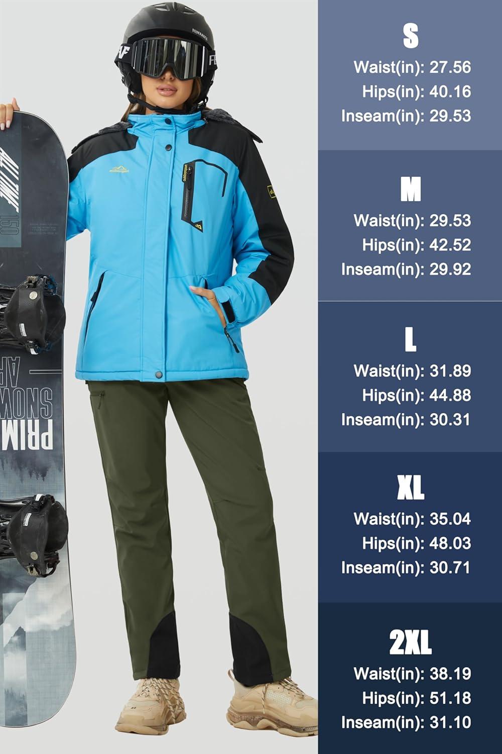 imageMAGCOMSEN Womens Fleece Lined Flare Pants Waterproof Insulated Snow Ski Pants Warm Outdoor Winter Hiking SoftshellWhite