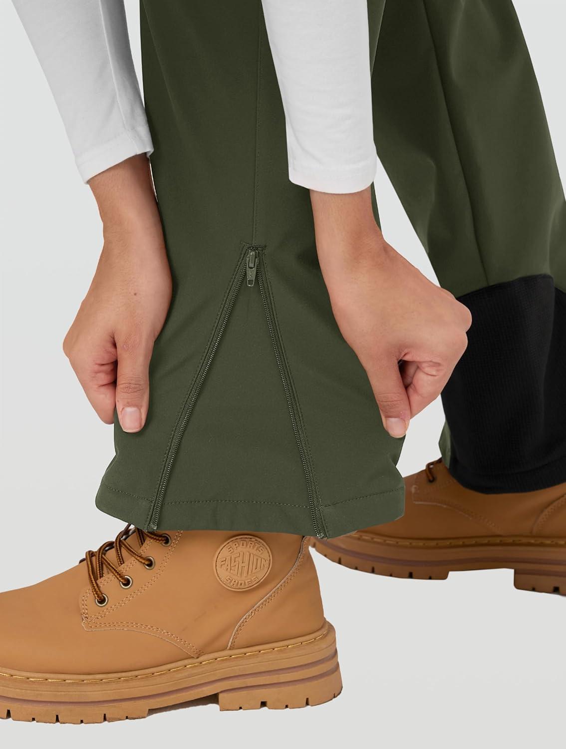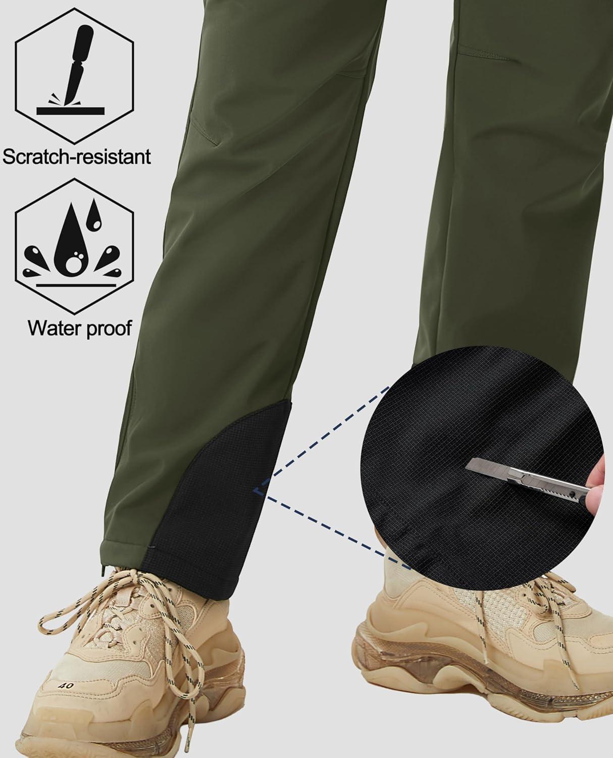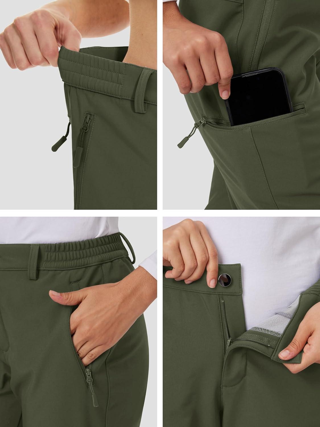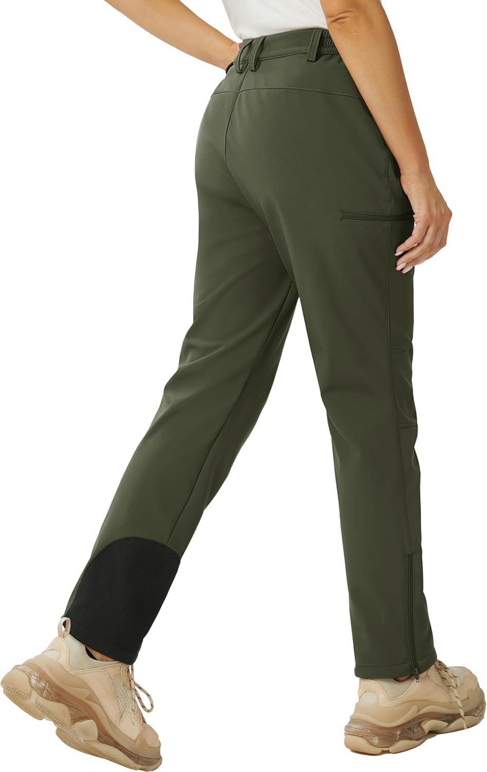 MAGCOMSEN Women’s Fleece Lined Winter Hiking Pants Waterproof Insulated Ski Snow Pants Outdoor Hunting Softshell Pants(Army Green)