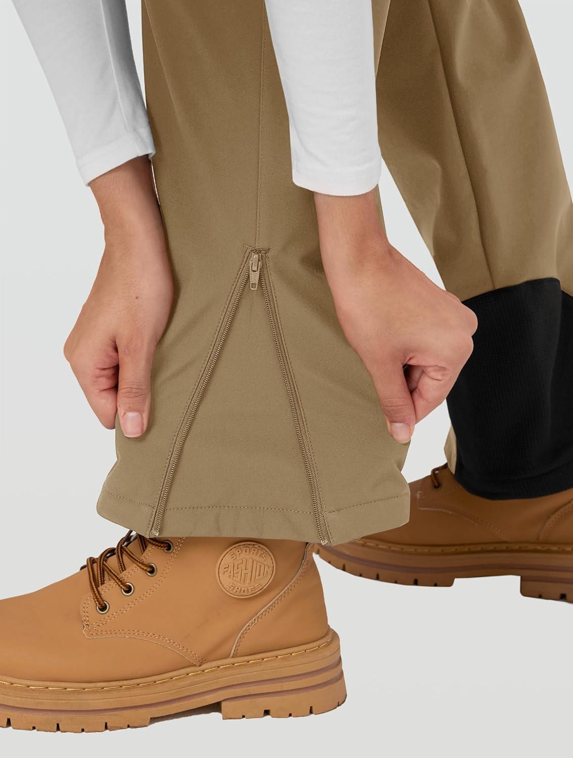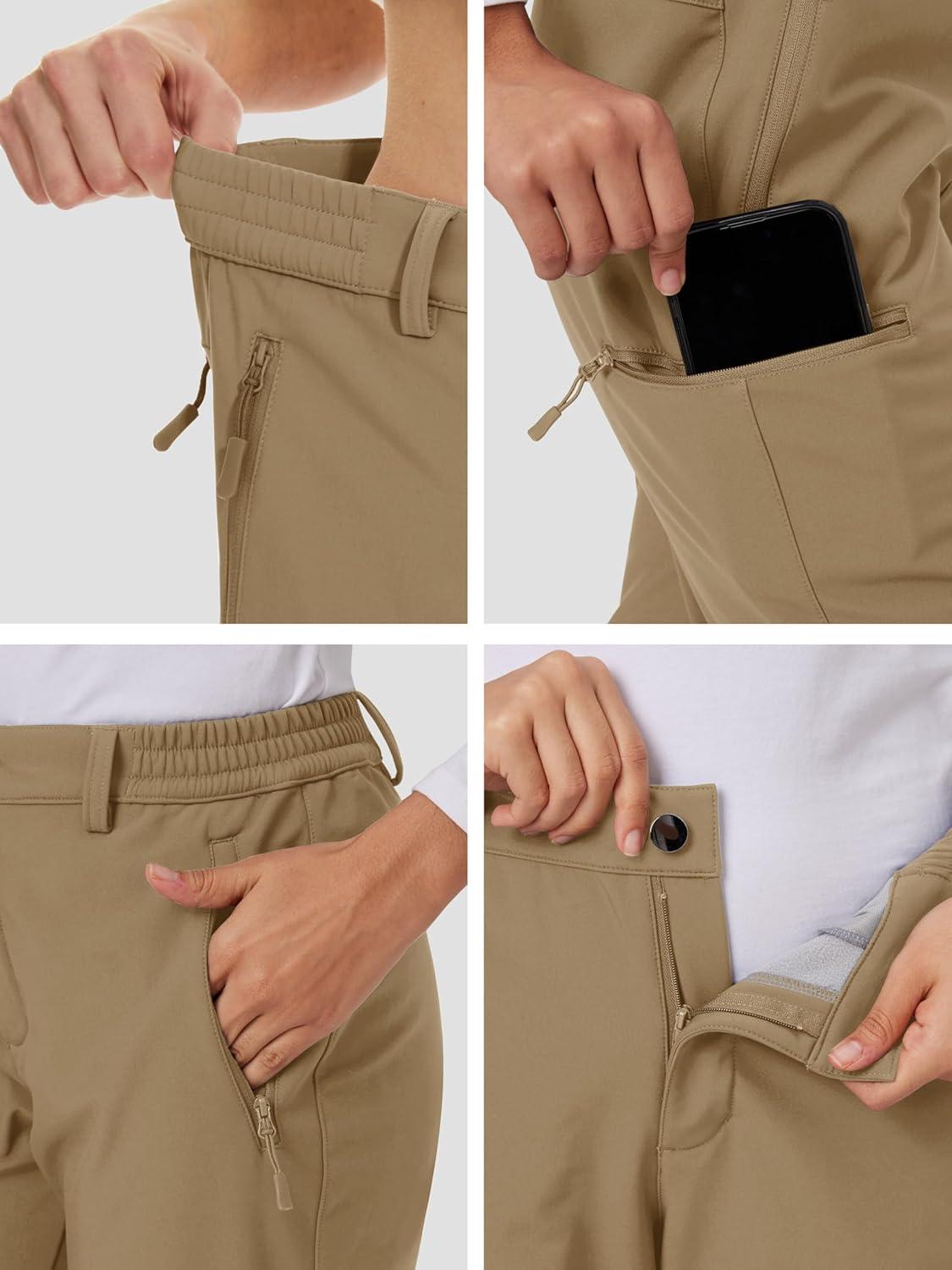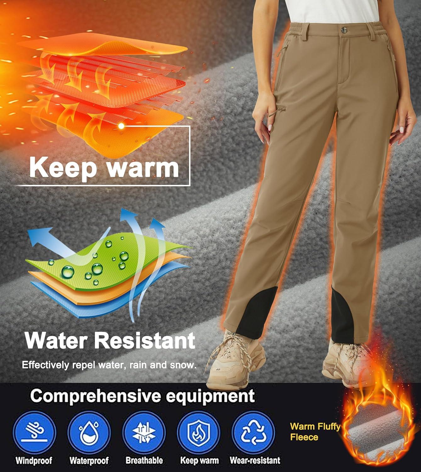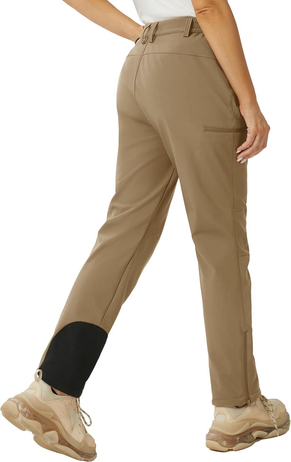 MAGCOMSEN Women’s Fleece Lined Winter Hiking Pants Waterproof Insulated Ski Snow Pants Outdoor Hunting Softshell Pants(Khaki)