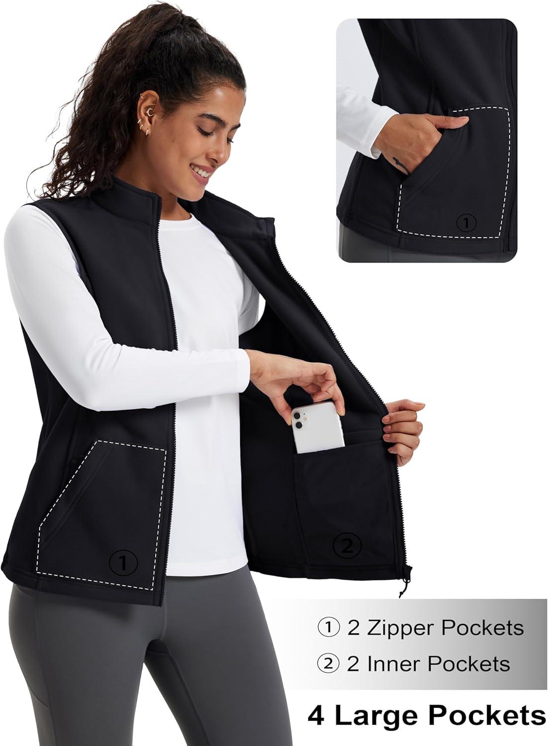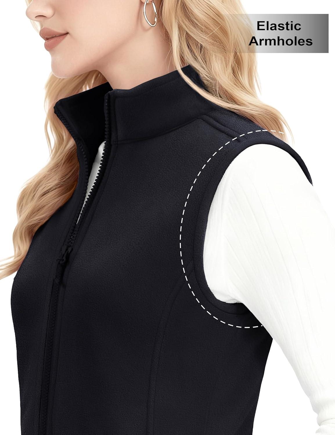 MAGCOMSEN Women’s Fleece Vest Outerwear Sleeveless Lightweight Zip Jacket Warm Soft Hiking Running Vest Zipper Pockets(Black)