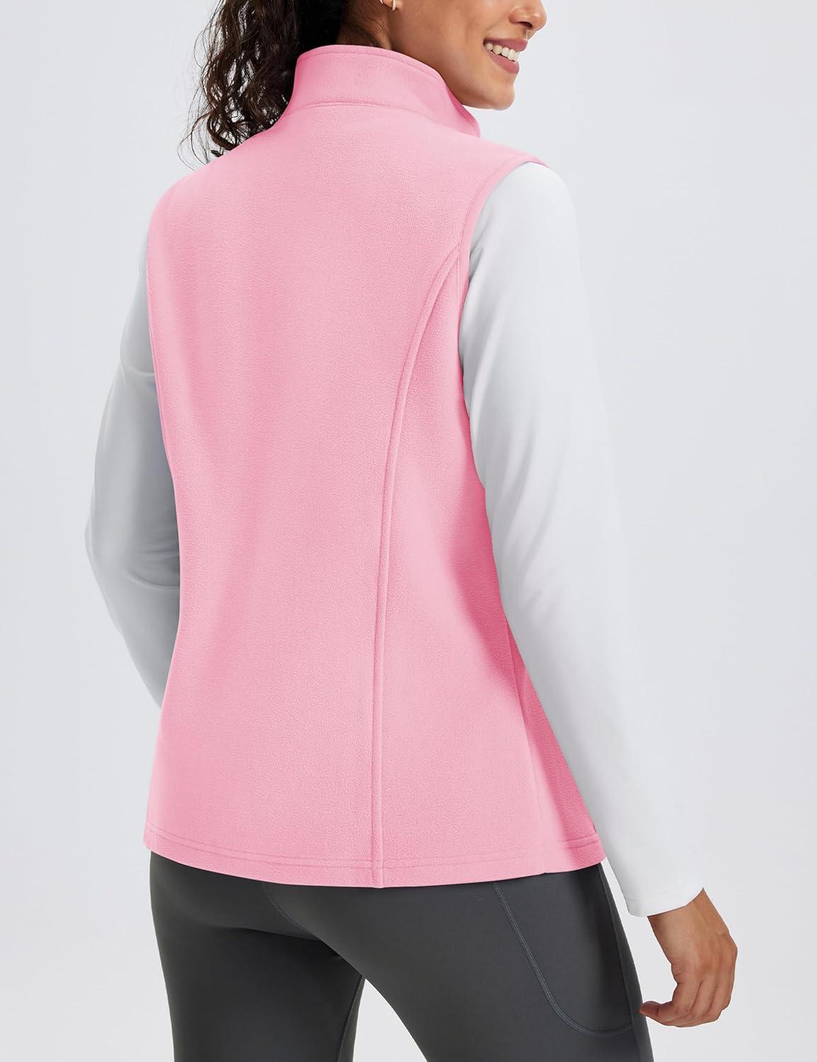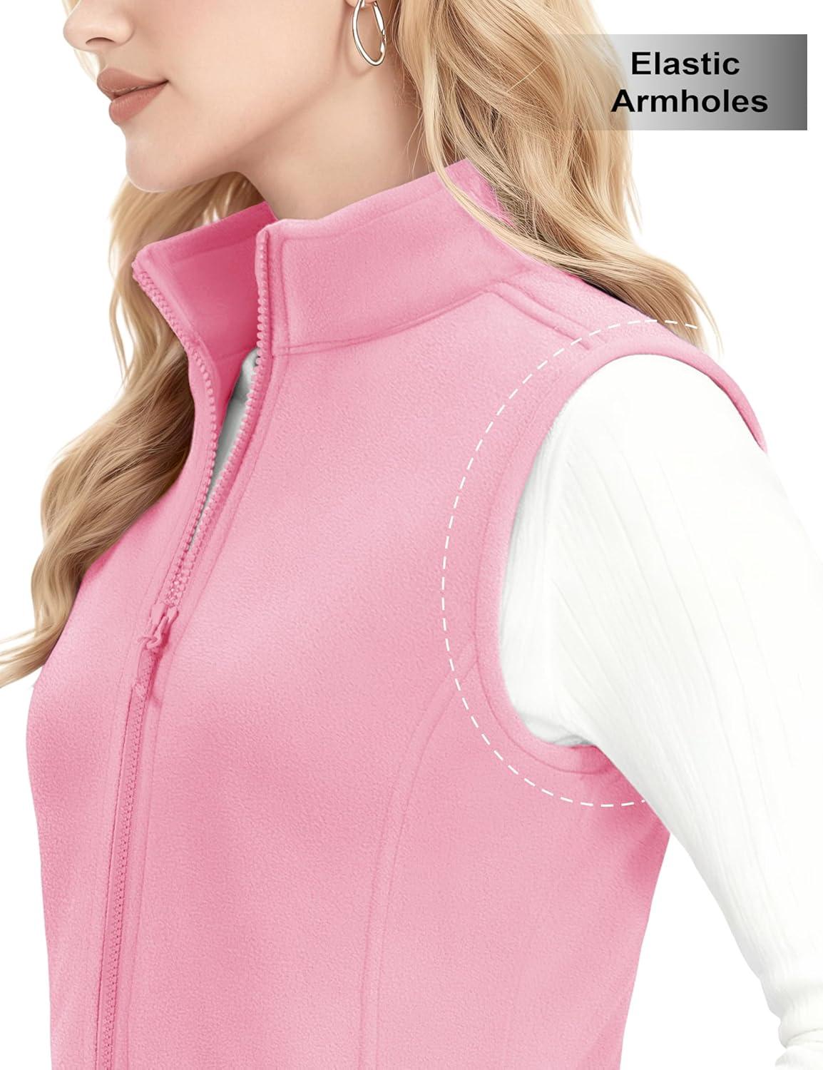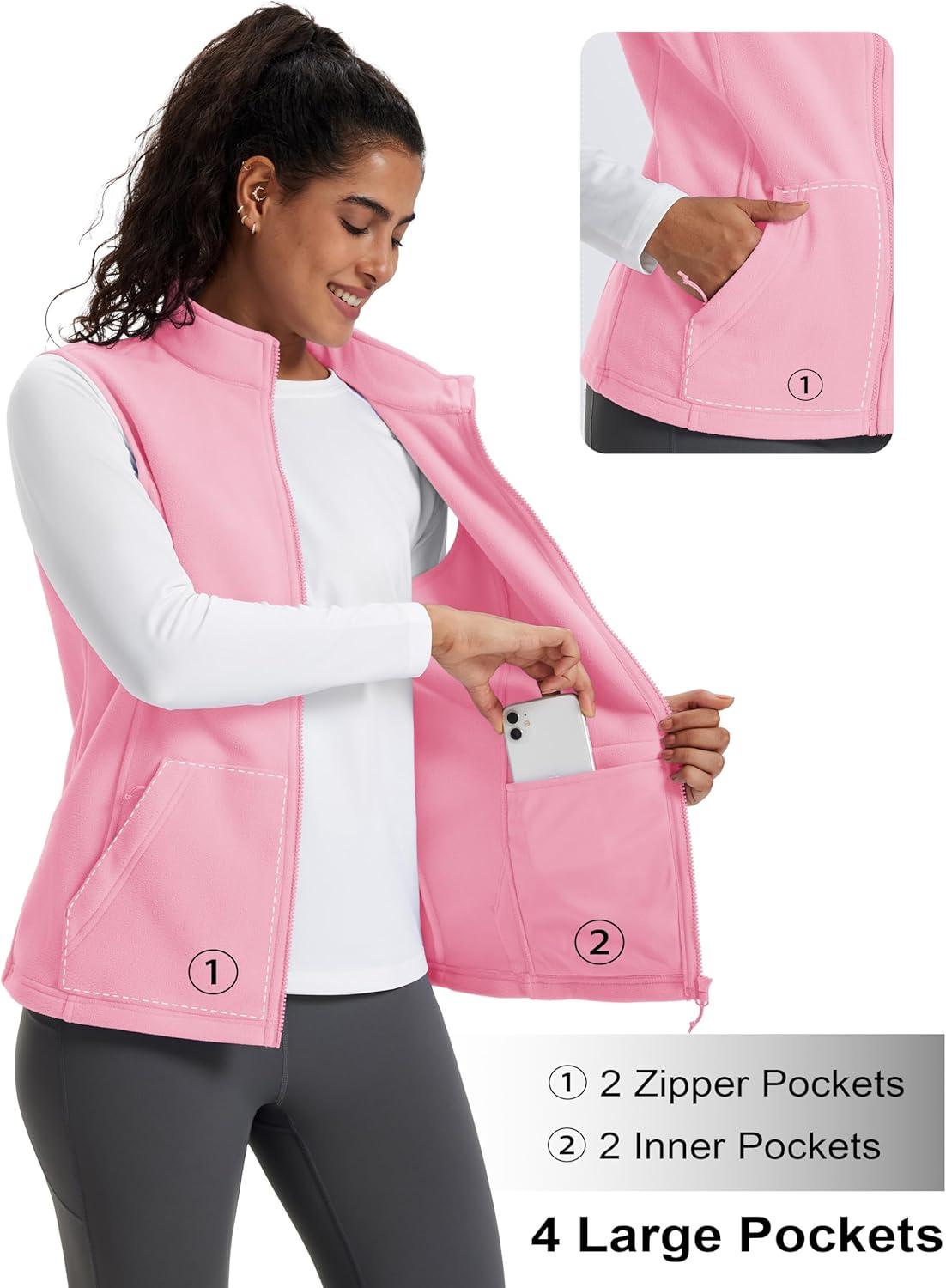 MAGCOMSEN Women’s Fleece Vest Outerwear Sleeveless Lightweight Zip Jacket Warm Soft Hiking Running Vest Zipper Pockets(Pink)