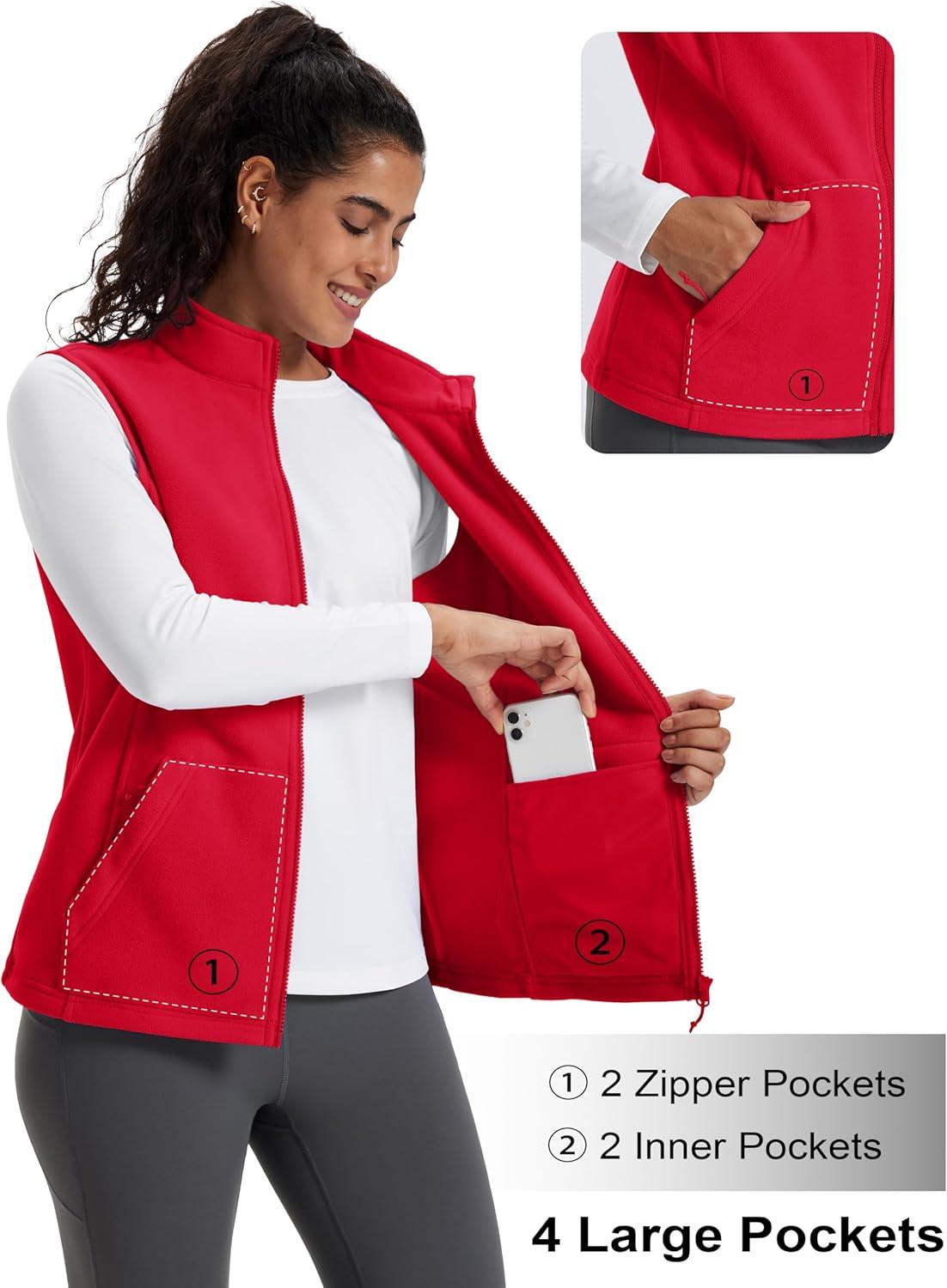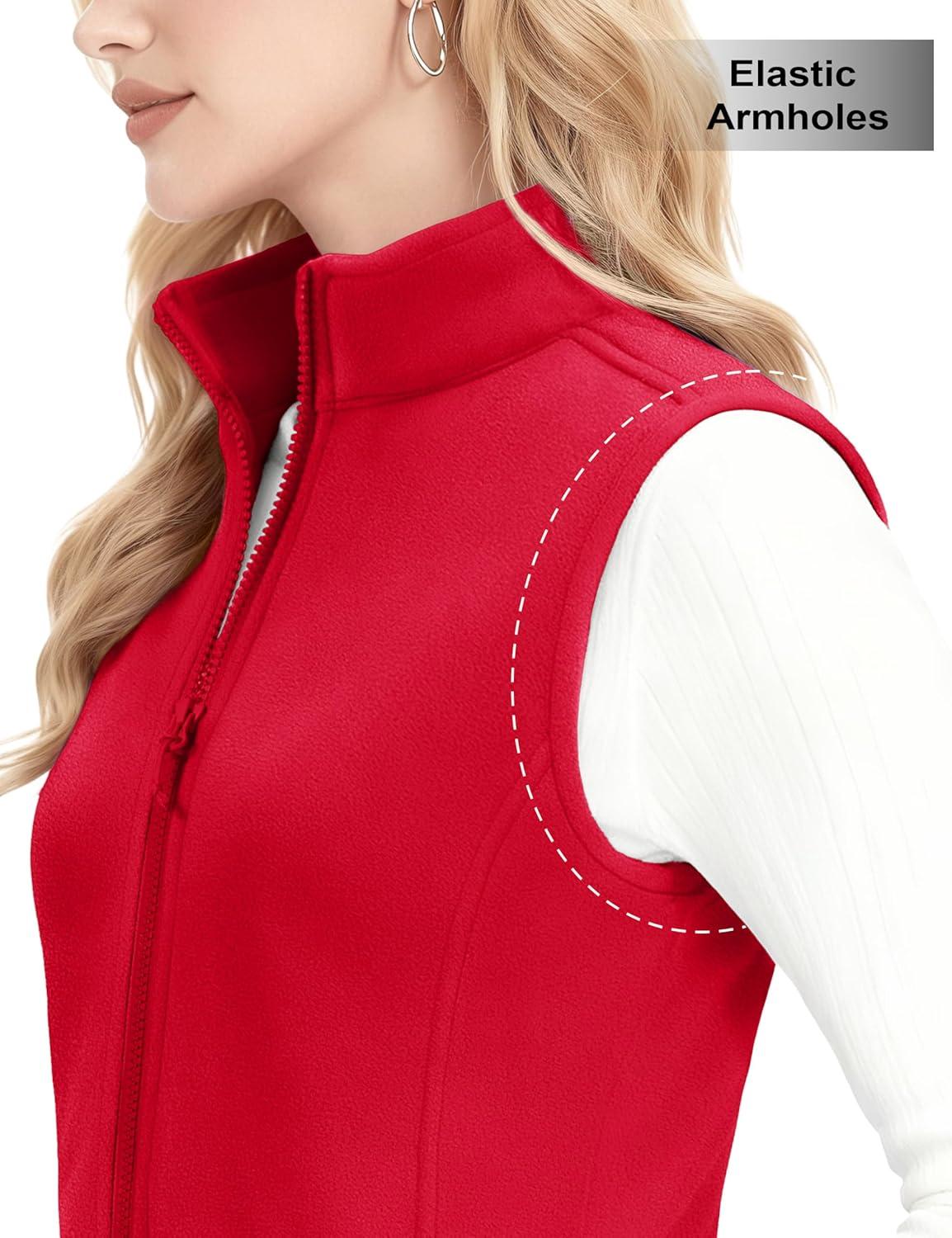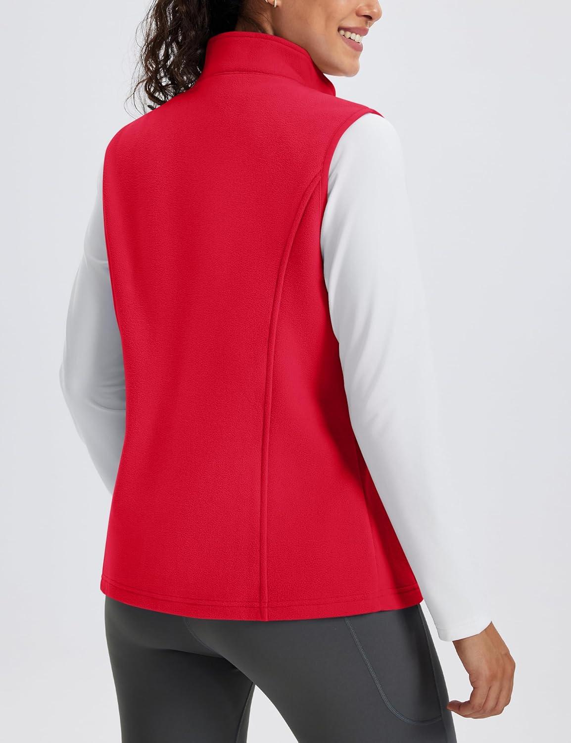 MAGCOMSEN Women’s Fleece Vest Outerwear Sleeveless Lightweight Zip Jacket Warm Soft Hiking Running Vest Zipper Pockets(Red)