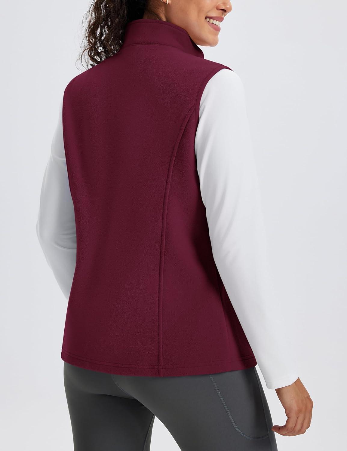 MAGCOMSEN Women’s Fleece Vest Outerwear Sleeveless Lightweight Zip Jacket Warm Soft Hiking Running Vest Zipper Pockets(Wine Red)