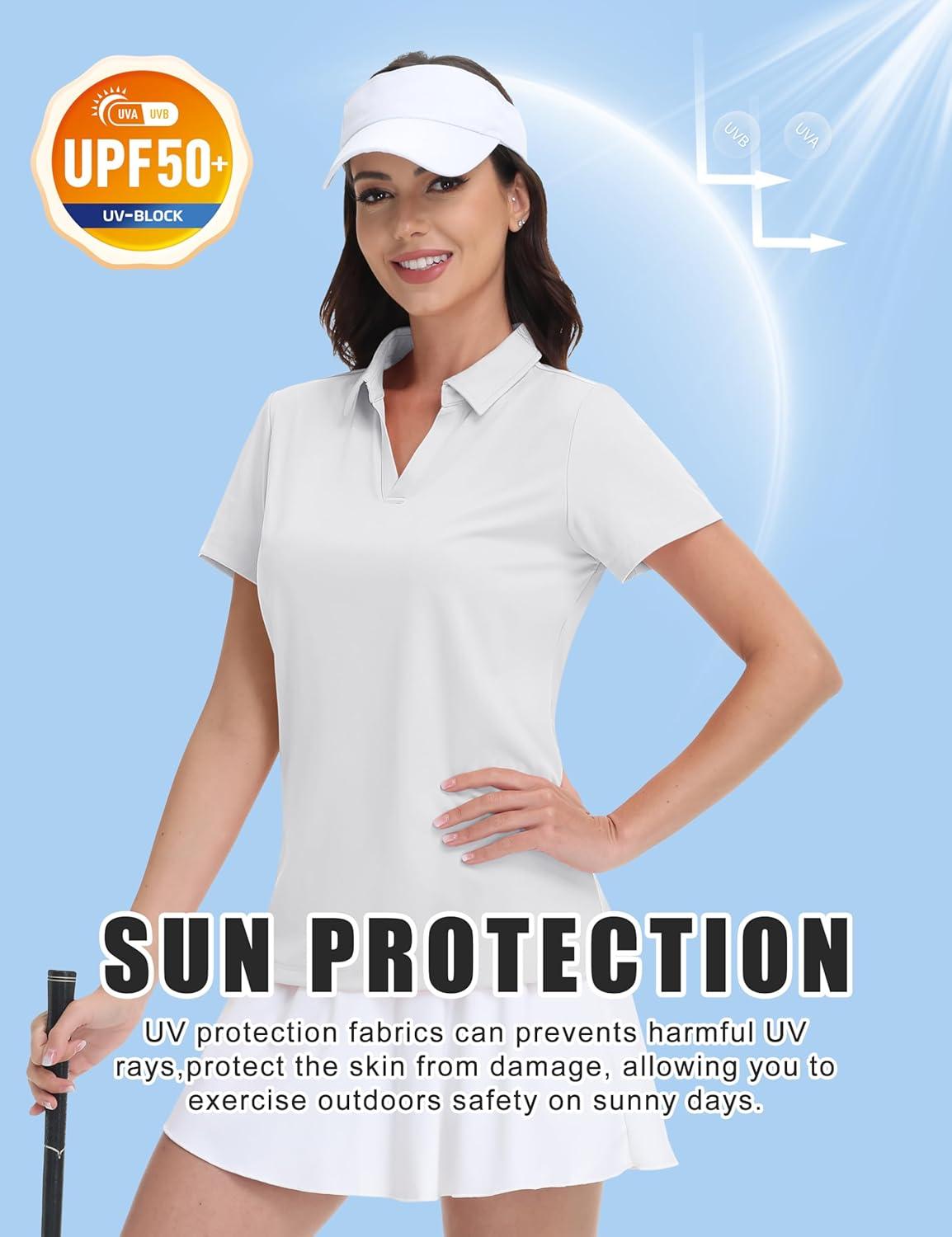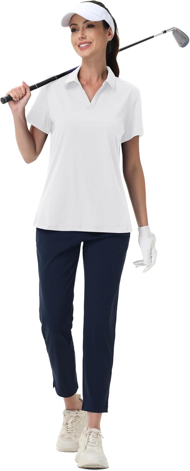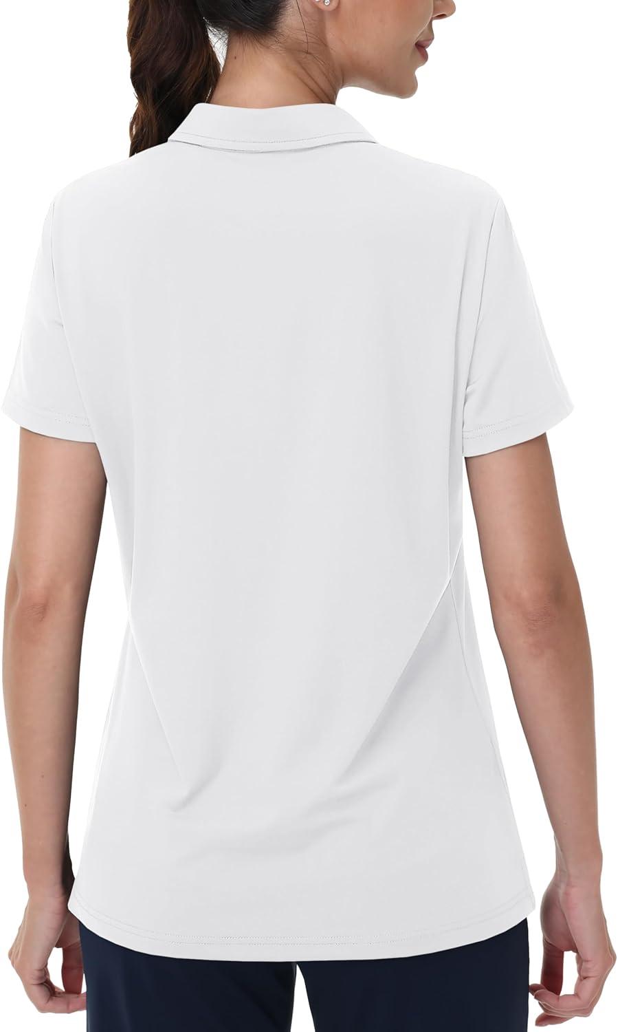 MAGCOMSEN Women’s Golf Shirts Short Sleeve Polo Collared Tennis Shirt V Neck Quick Dry Sun Protection UPF 50+(White)