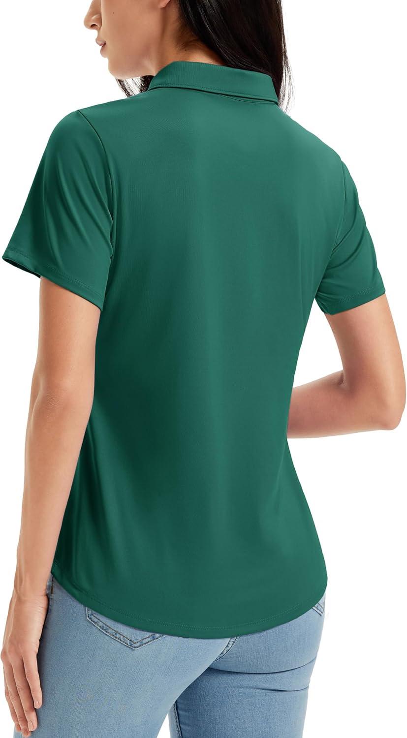 MAGCOMSEN Women’s Golf Shirts Short Sleeve Polo UPF 50+ V Neck Collared Tops Quick Dry Tennis Athletic T Shirts(Emerald Green)