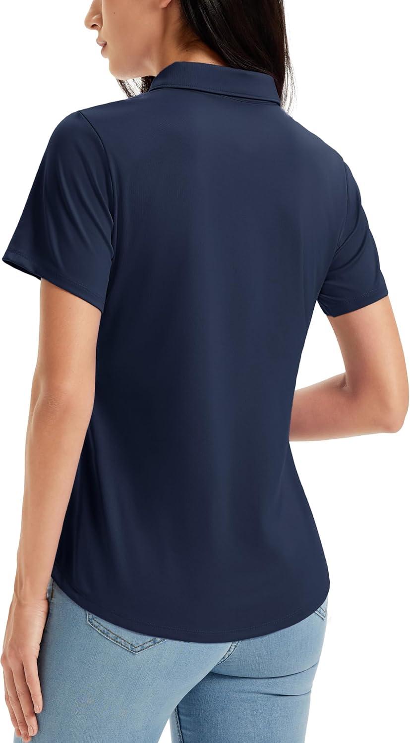 MAGCOMSEN Women’s Golf Shirts Short Sleeve Polo UPF 50+ V Neck Collared Tops Quick Dry Tennis Athletic T Shirts(Navy)