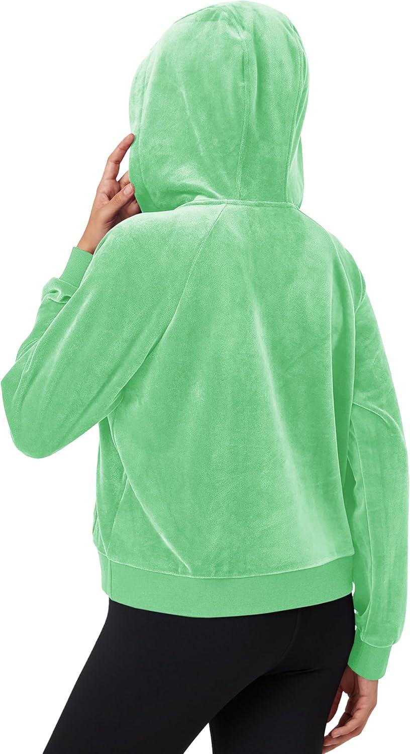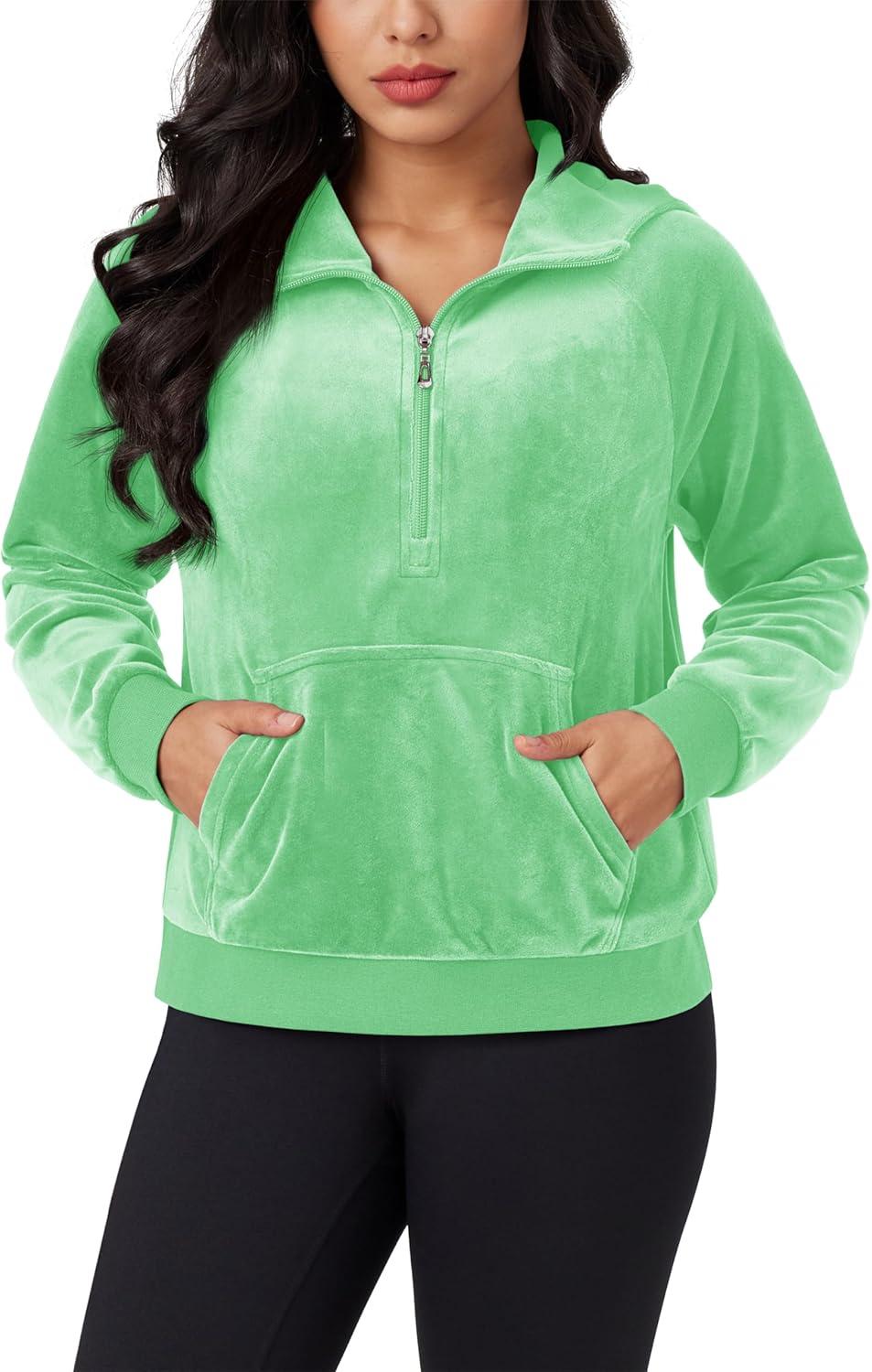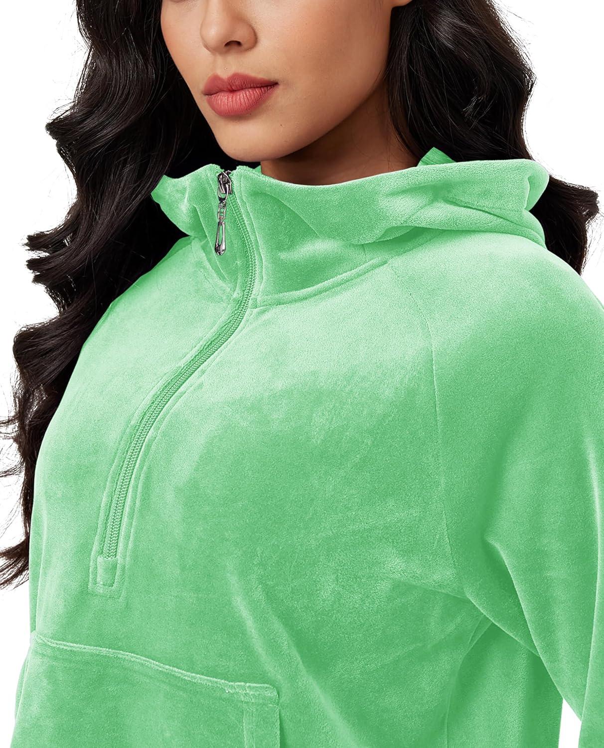 MAGCOMSEN Womens Hoodies Half-Zip Cropped Velour Sweatshirts Long Sleeve Fleece Pullover with Pocket Casual Outfits(Mint Green)